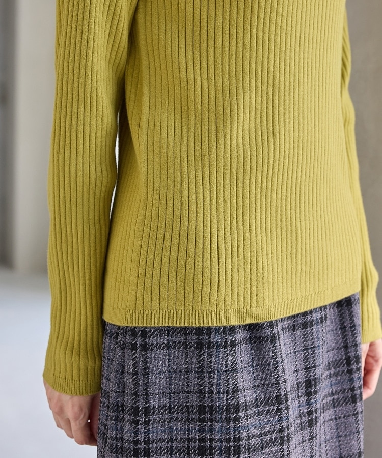 もちもちとして軽く滑らかなレーヨン混のリブ素材。