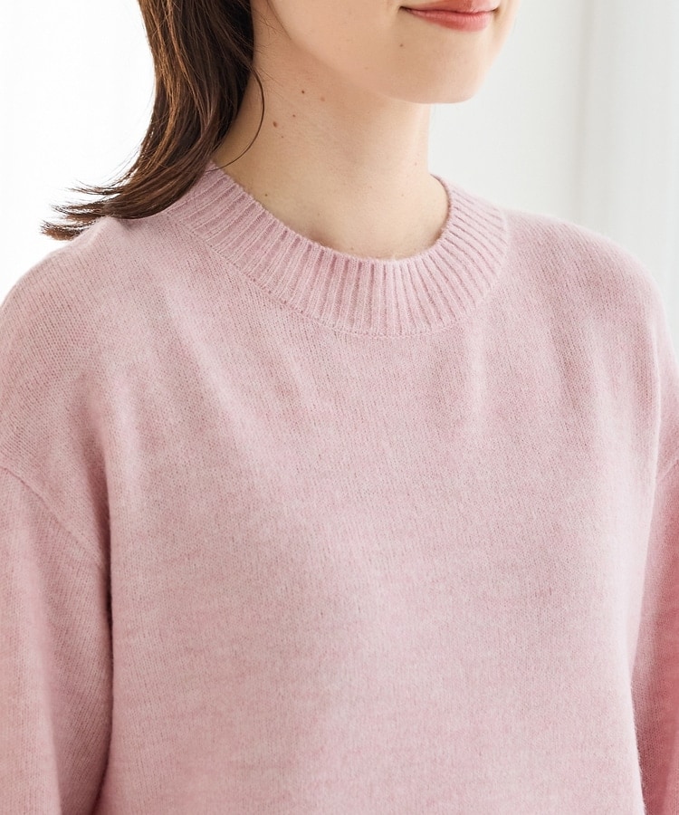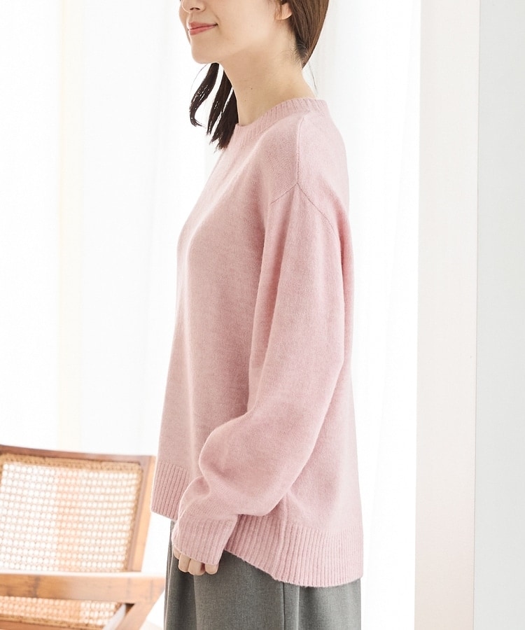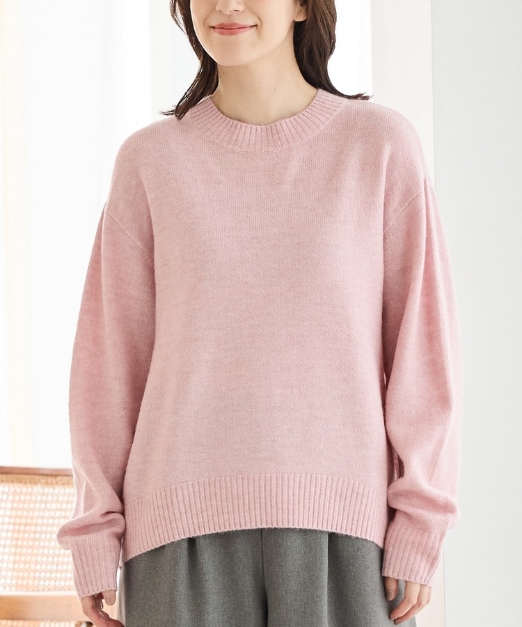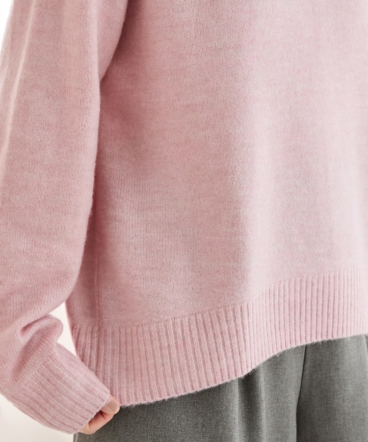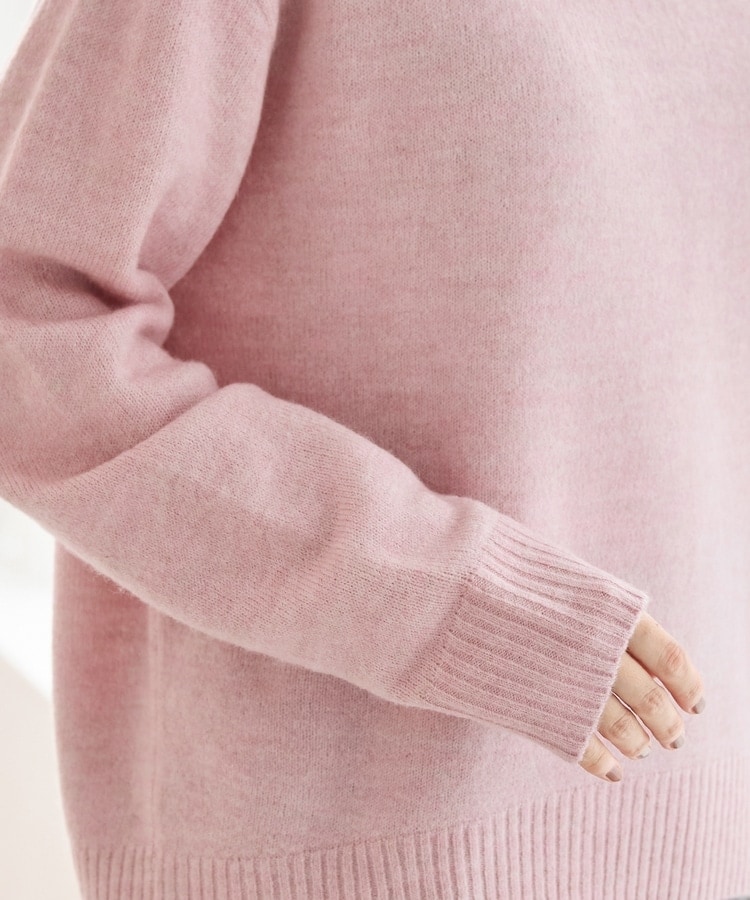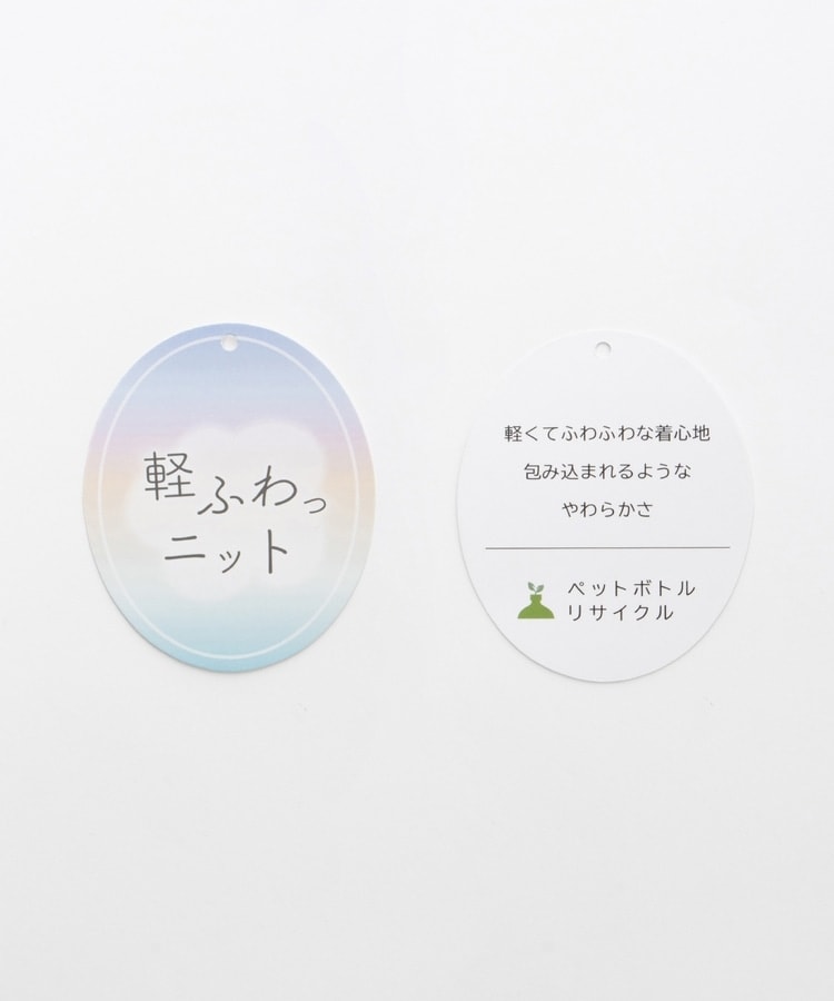 環境に優しい再生ポリエステルを使用した、ふわふわで軽く包み込まれるようなやわらかさのウール混『軽ふわっニット』素材。