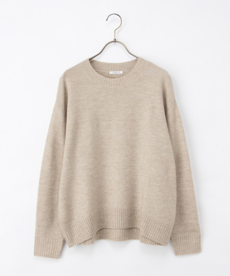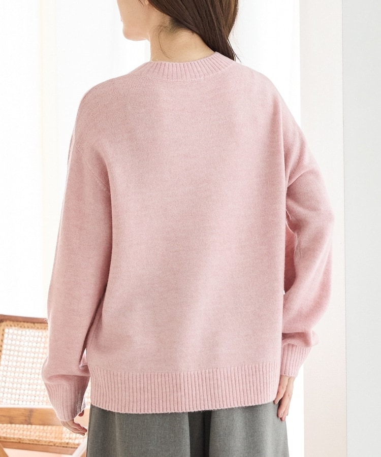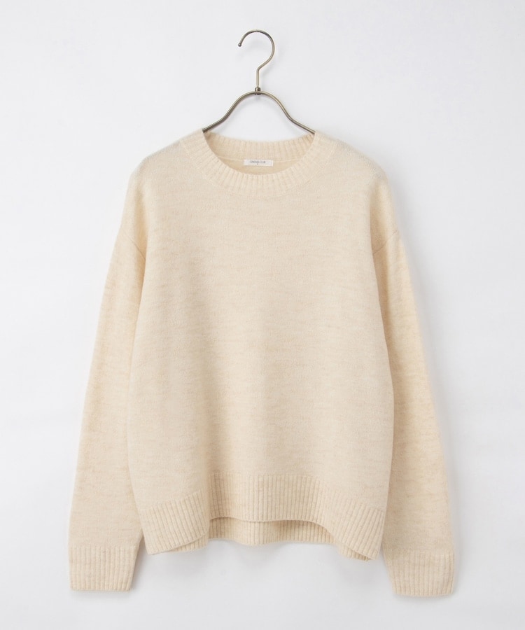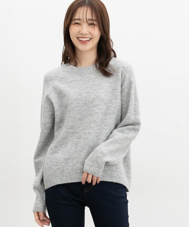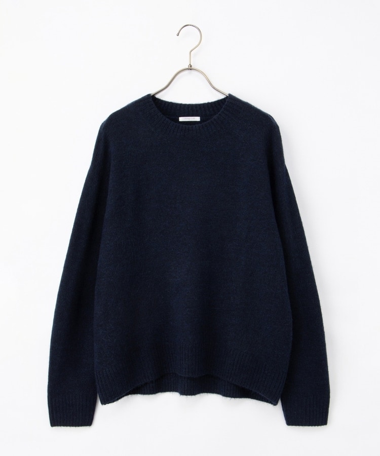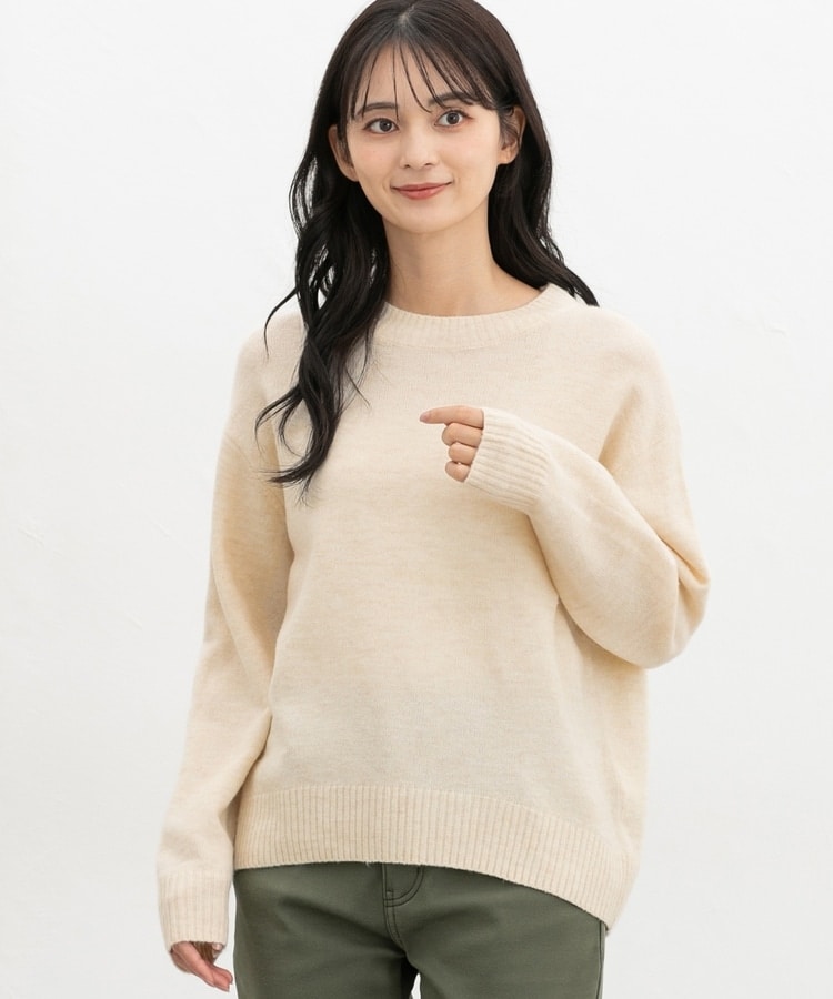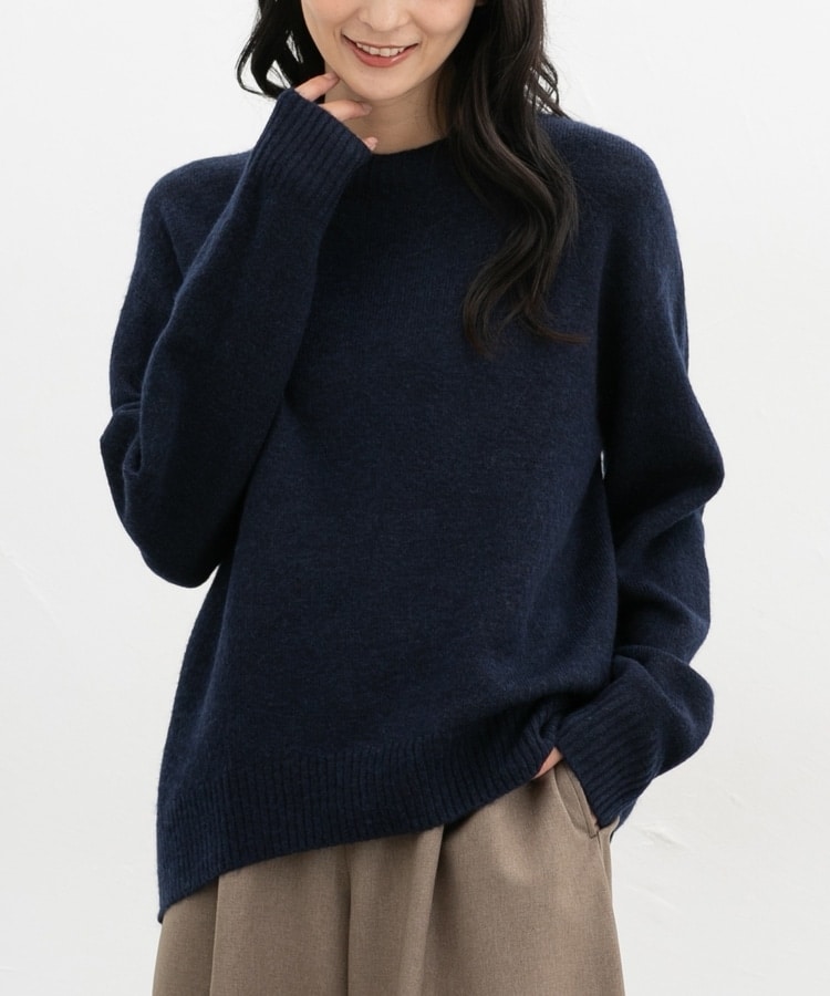 環境に優しい再生ポリエステルを使用した、ふわふわで軽く包み込まれるようなやわらかさのウール混『軽ふわっニット』素材。