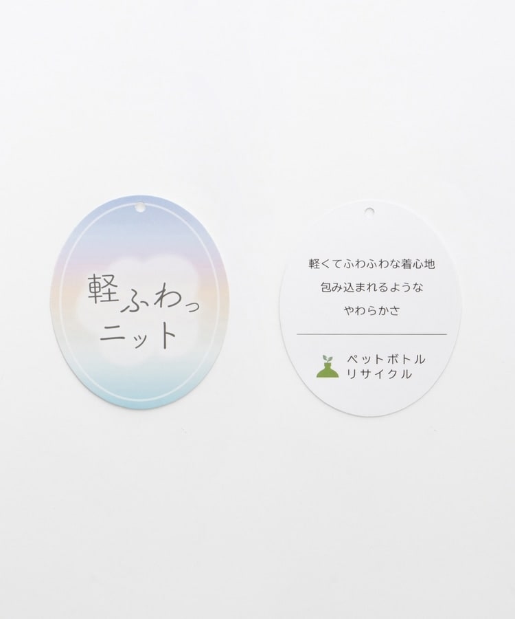 環境に優しい再生ポリエステルを使用した、ふわふわで軽く包み込まれるようなやわらかさのウール混『軽ふわっニット』素材。
