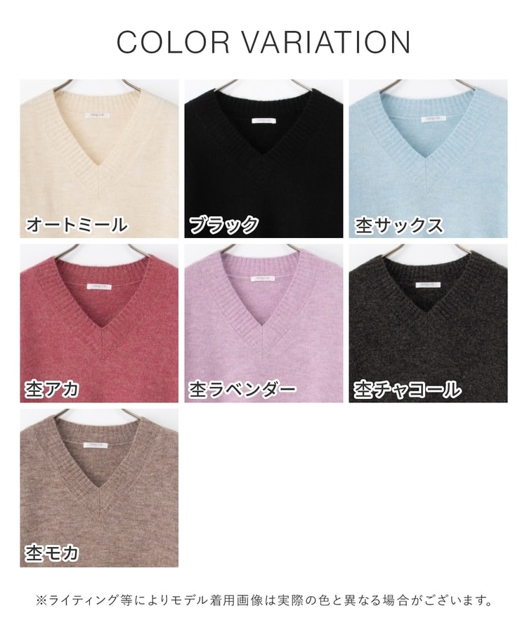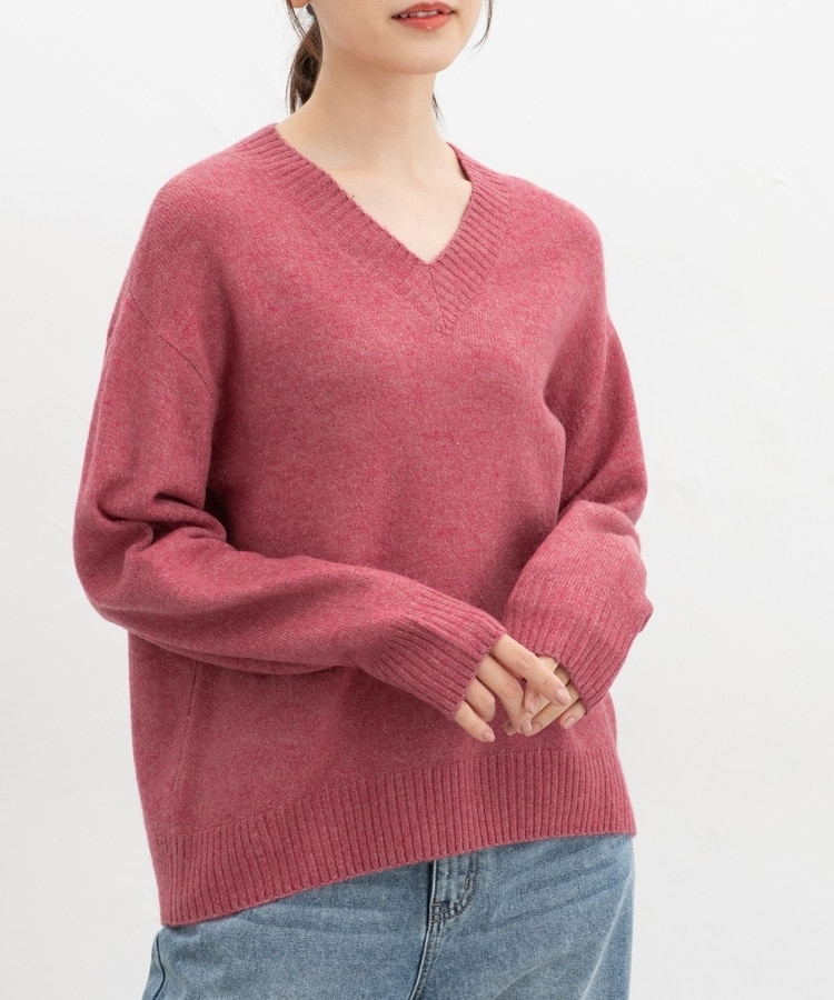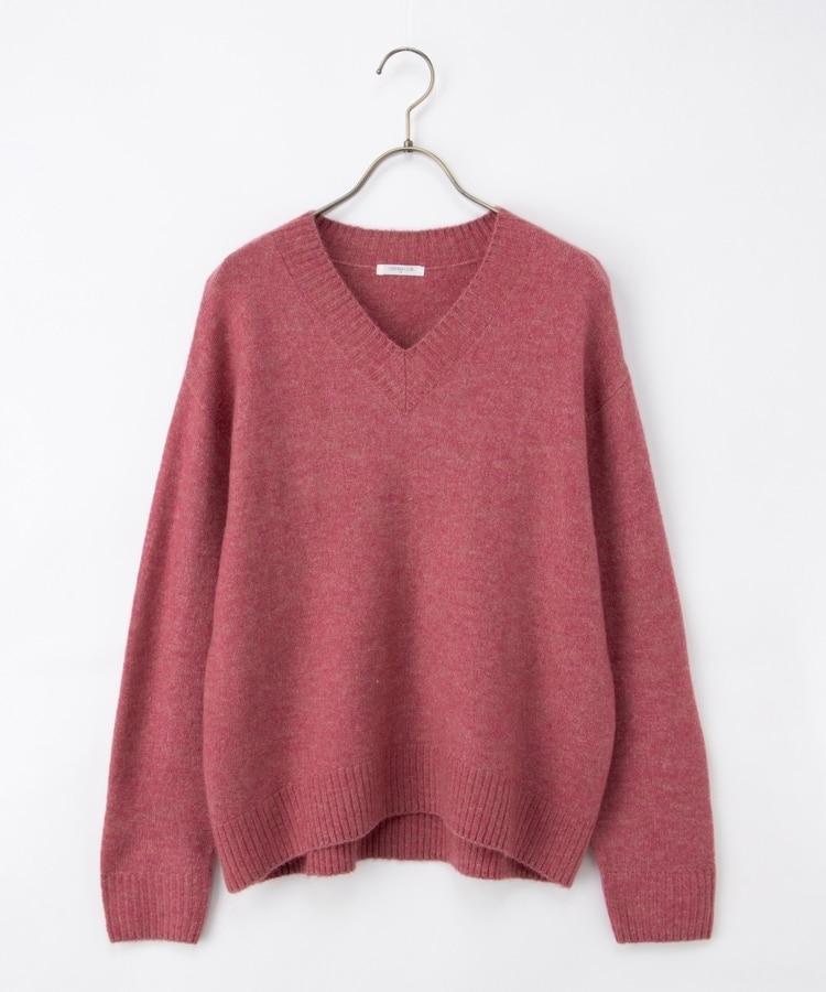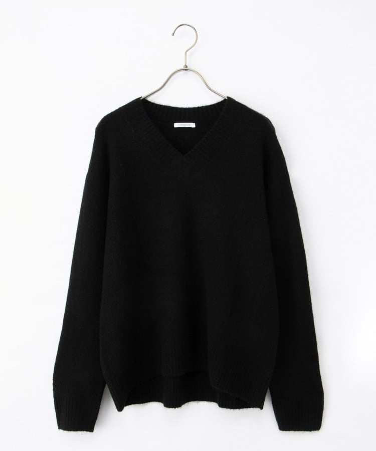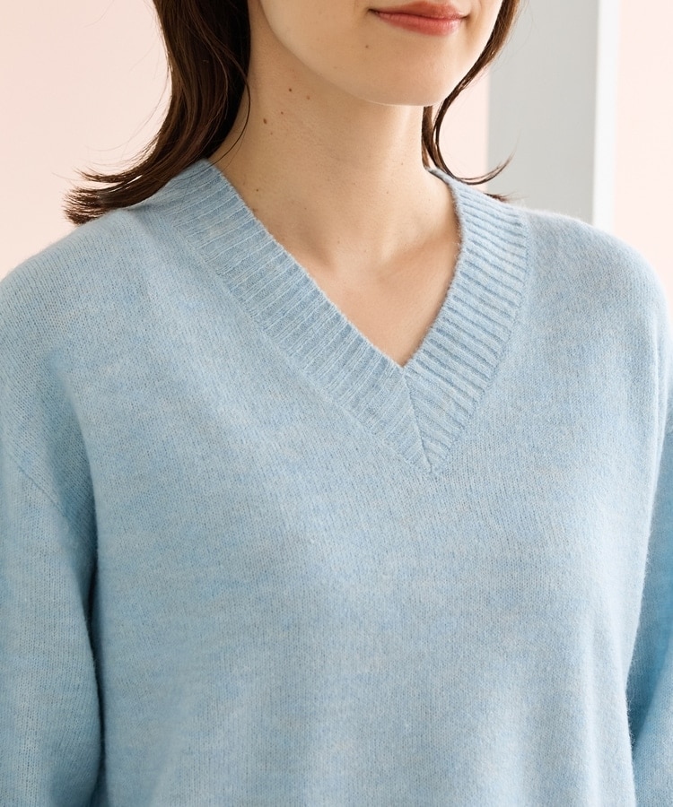 首元がすっきりきれいに見えるVネックのシンプルデザイン。