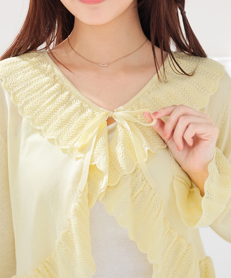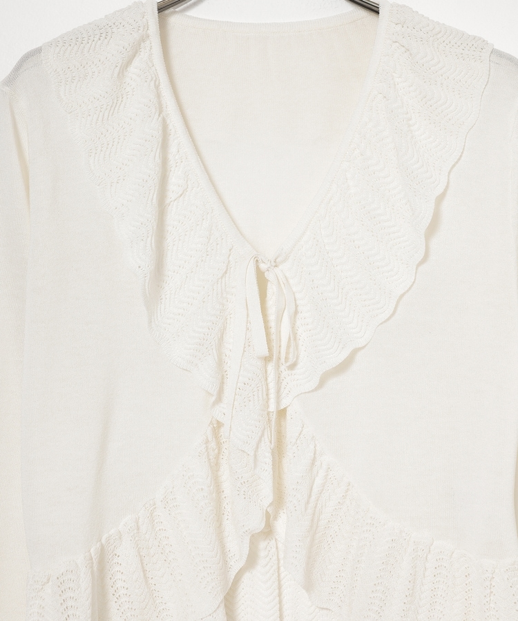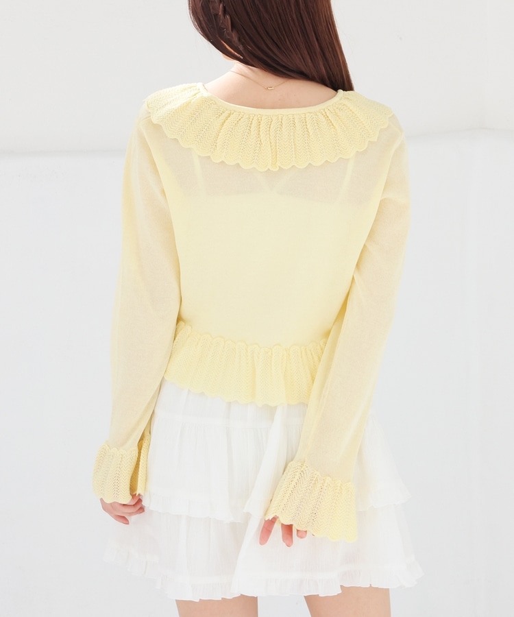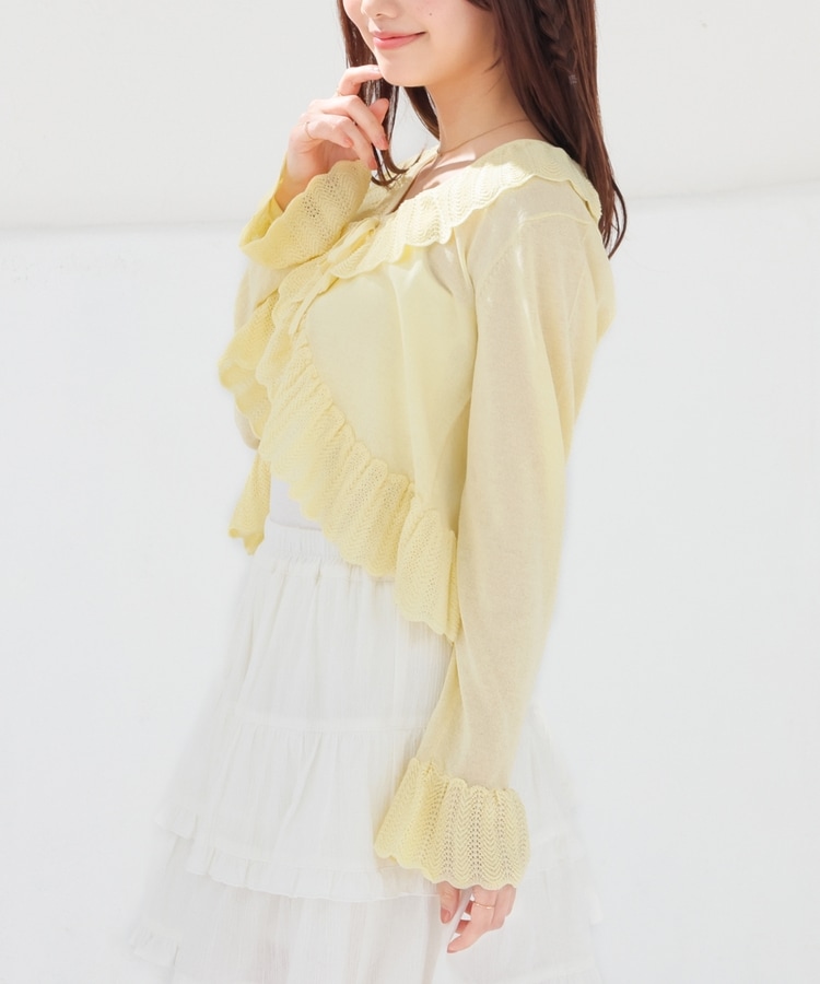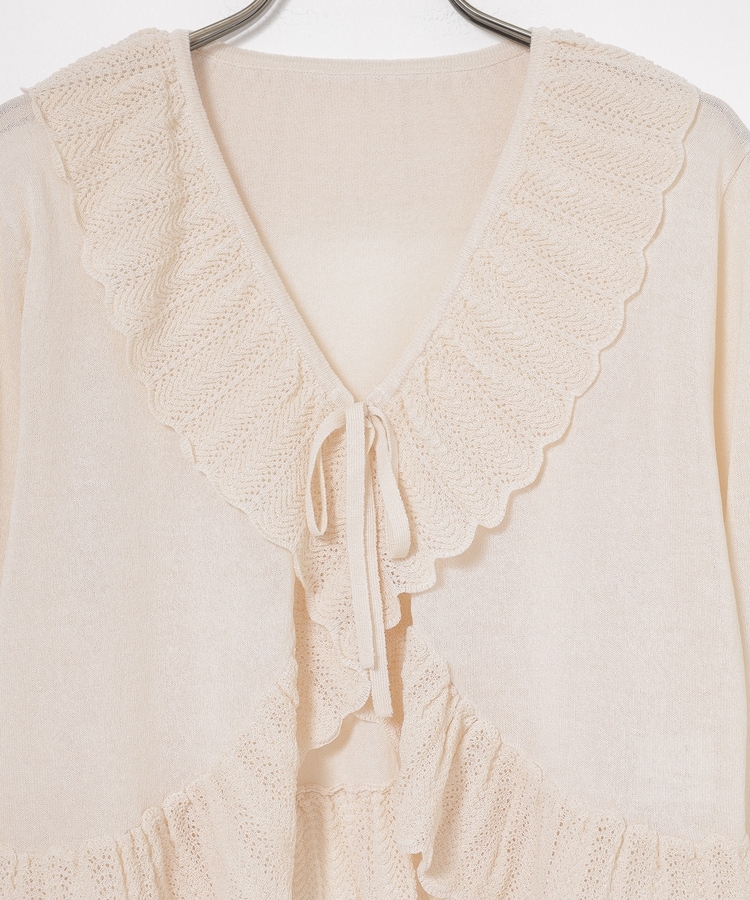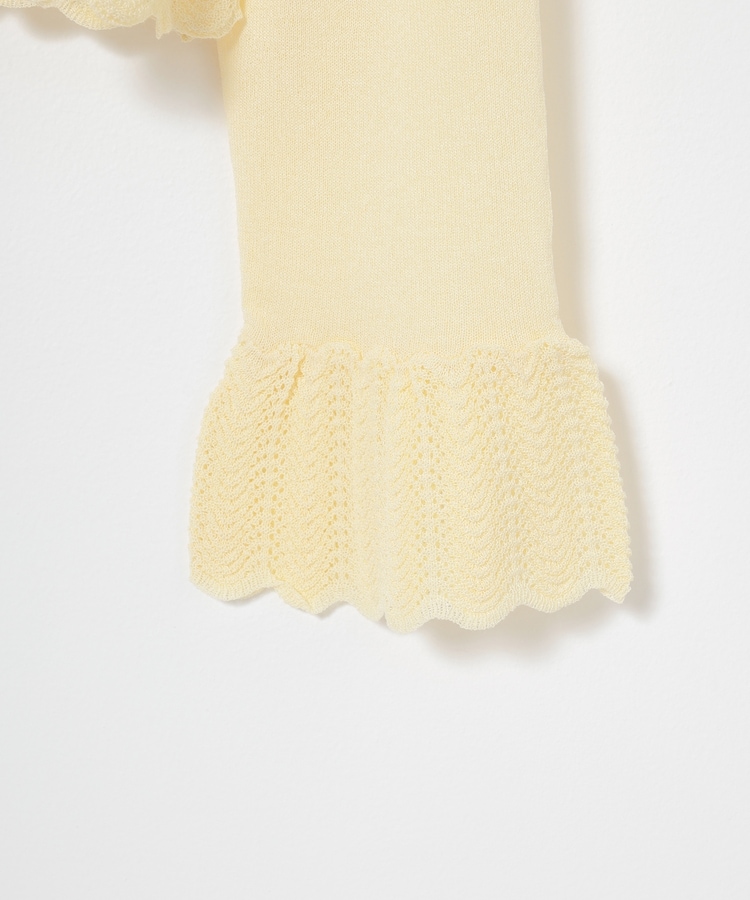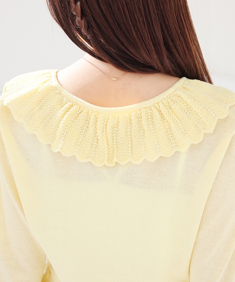 柔らかな肌触りのレーヨン混シアーニット素材。