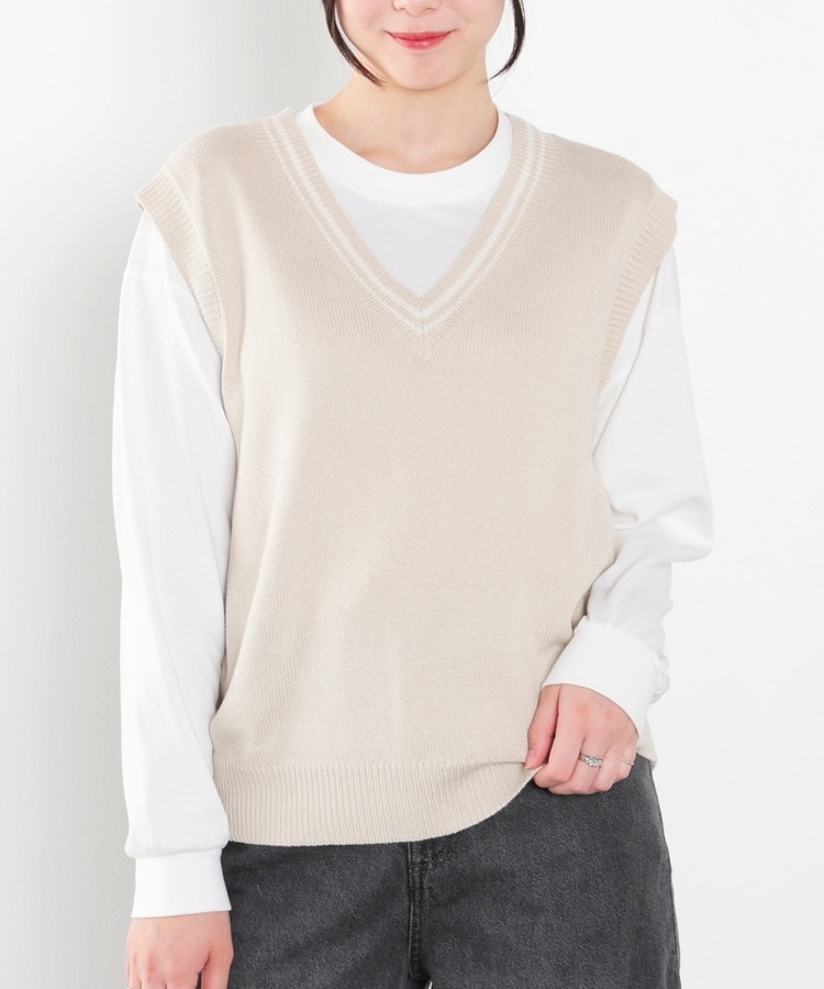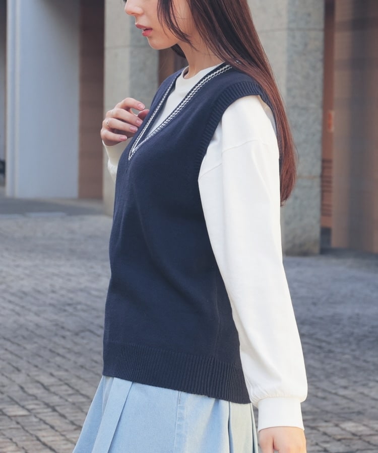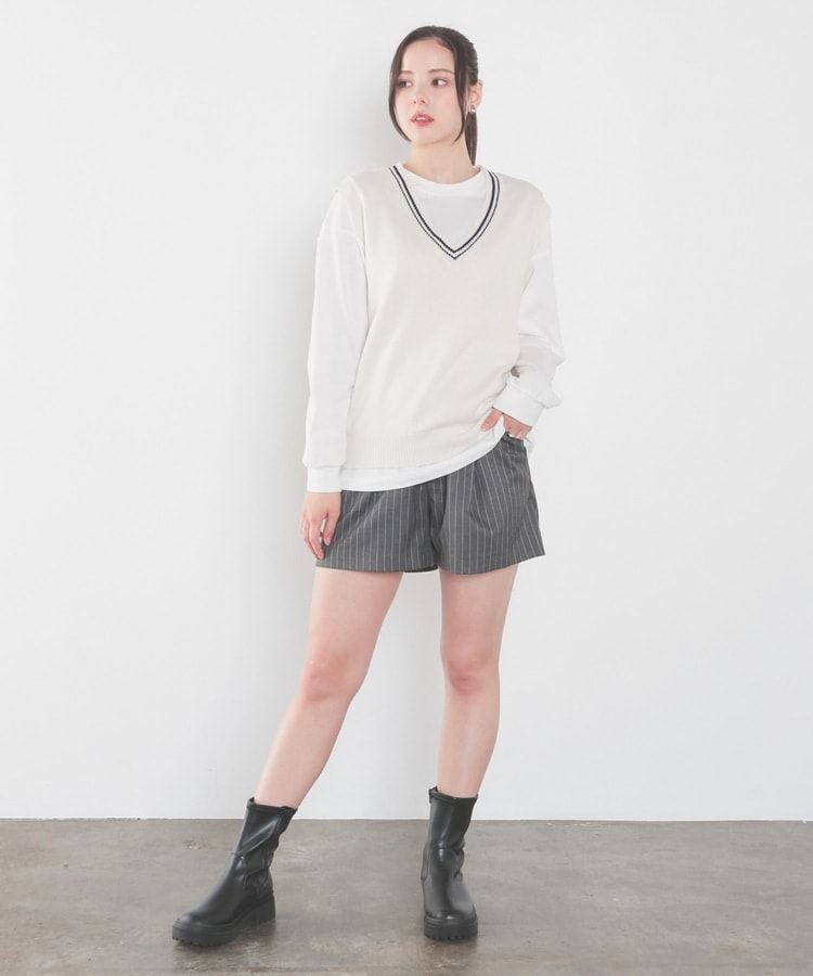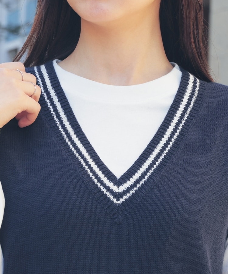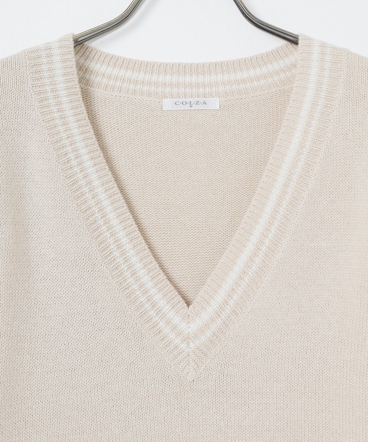 どんなテイストにもマッチする、深めVネックのシンプルデザイン。