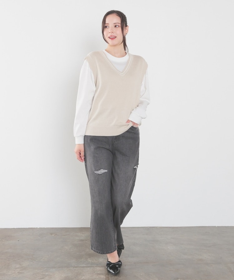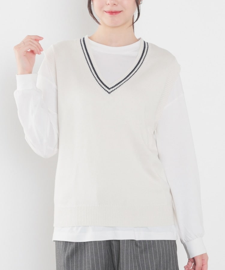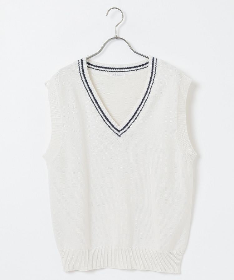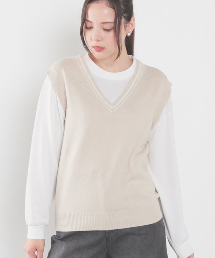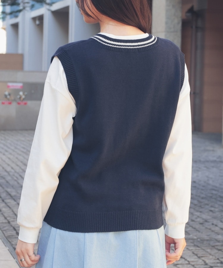 どんなテイストにもマッチする、深めVネックのシンプルデザイン。
