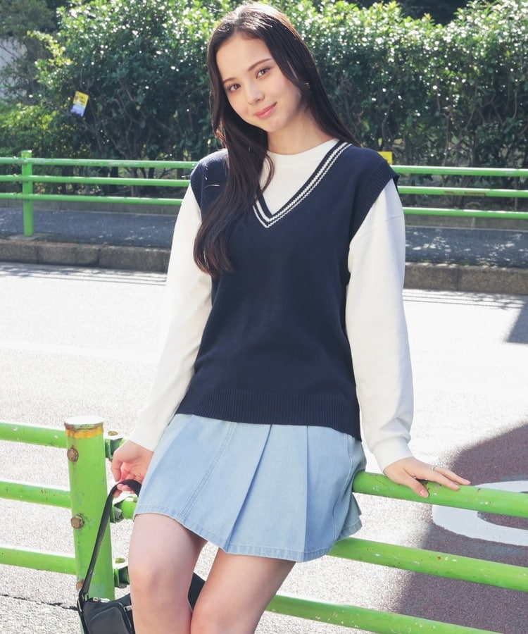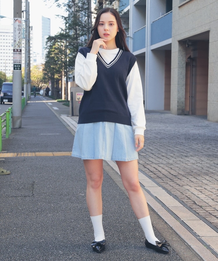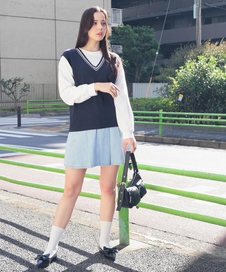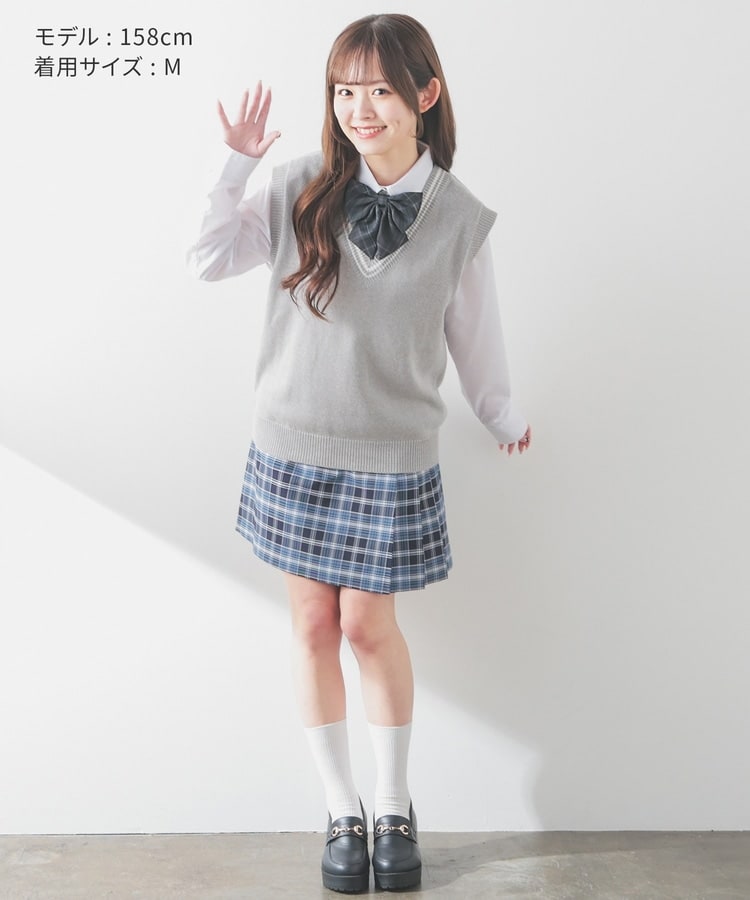 スクール使いはもちろん、ボウタイブラウスを合わせてガーリーに着こなすのも◎
