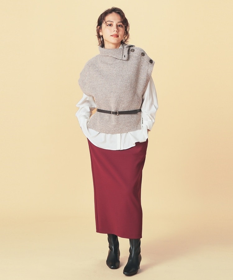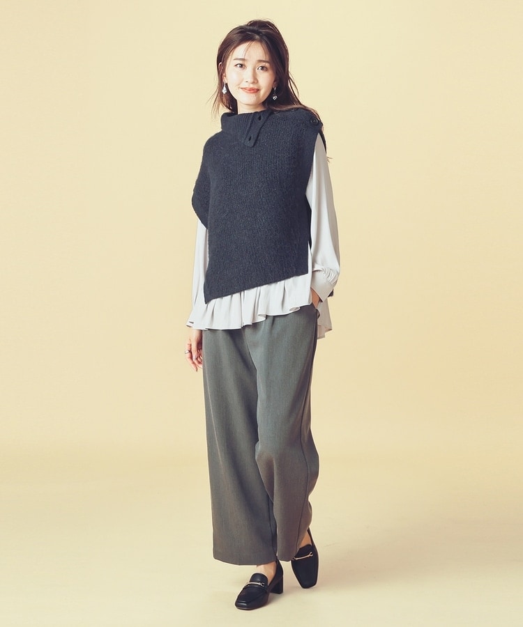 シャツやロンT、ワンピースなど、どんなアイテムとも合い、さっとレイヤードするだけで一気にこなれ感のあるスタイリングが完成。