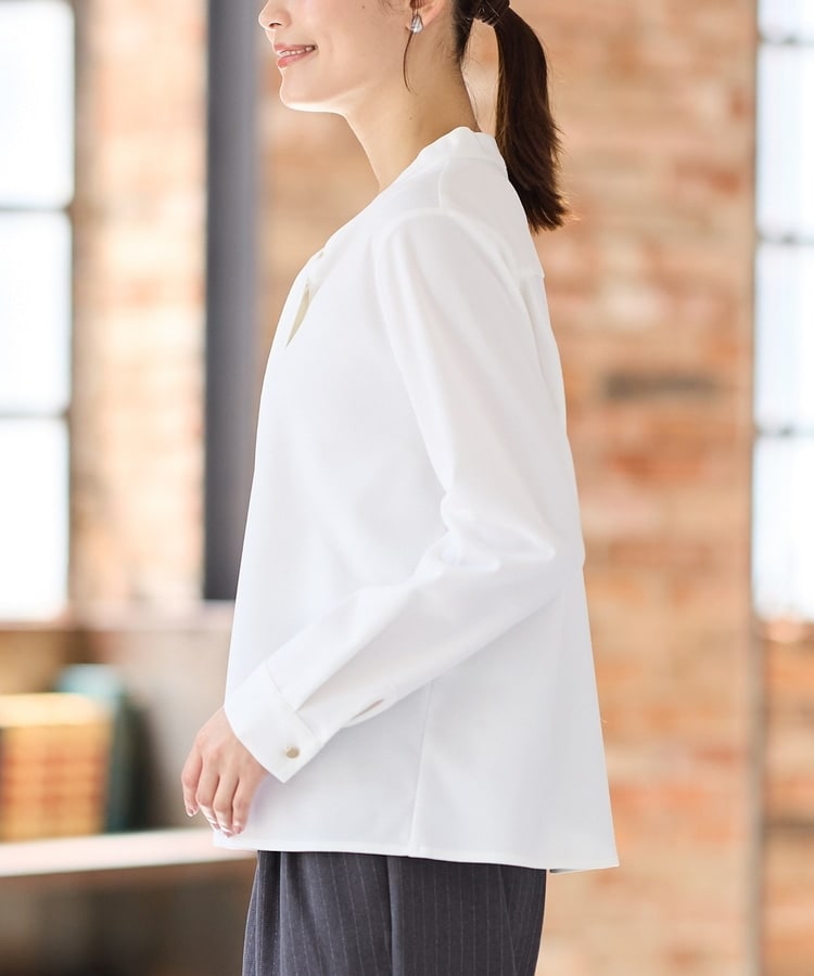 ジャケットにも合うサイズ感で、フレアスカートやストレートパンツと合わせたきれいめスタイルにぴったり。