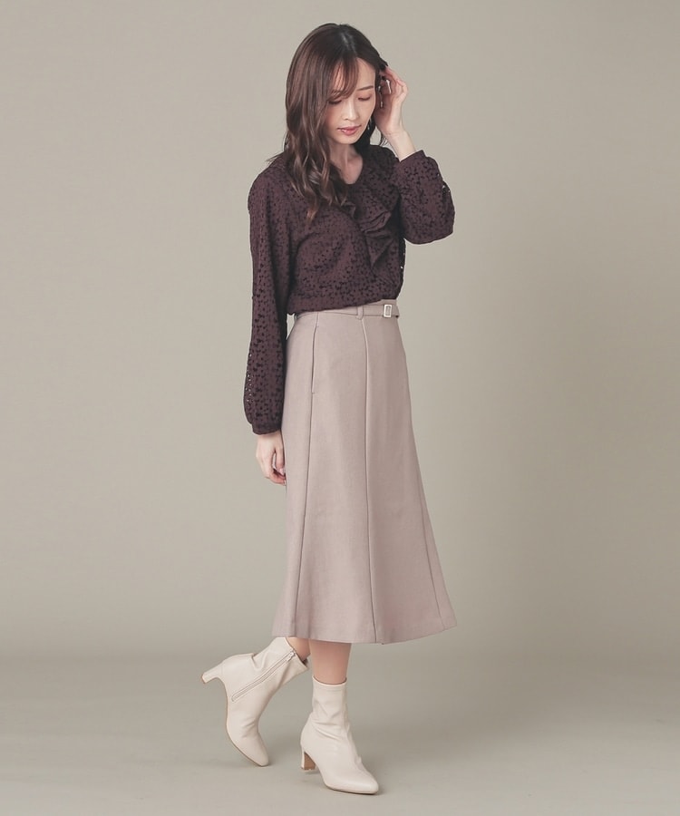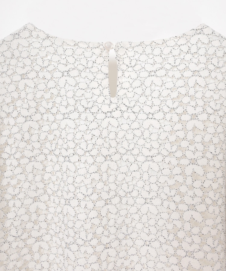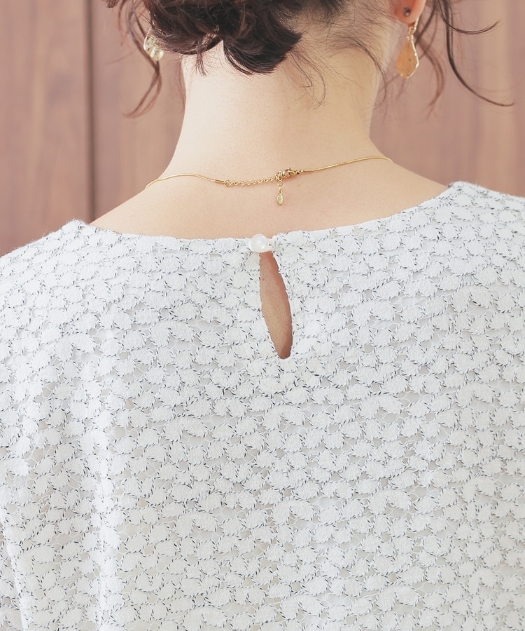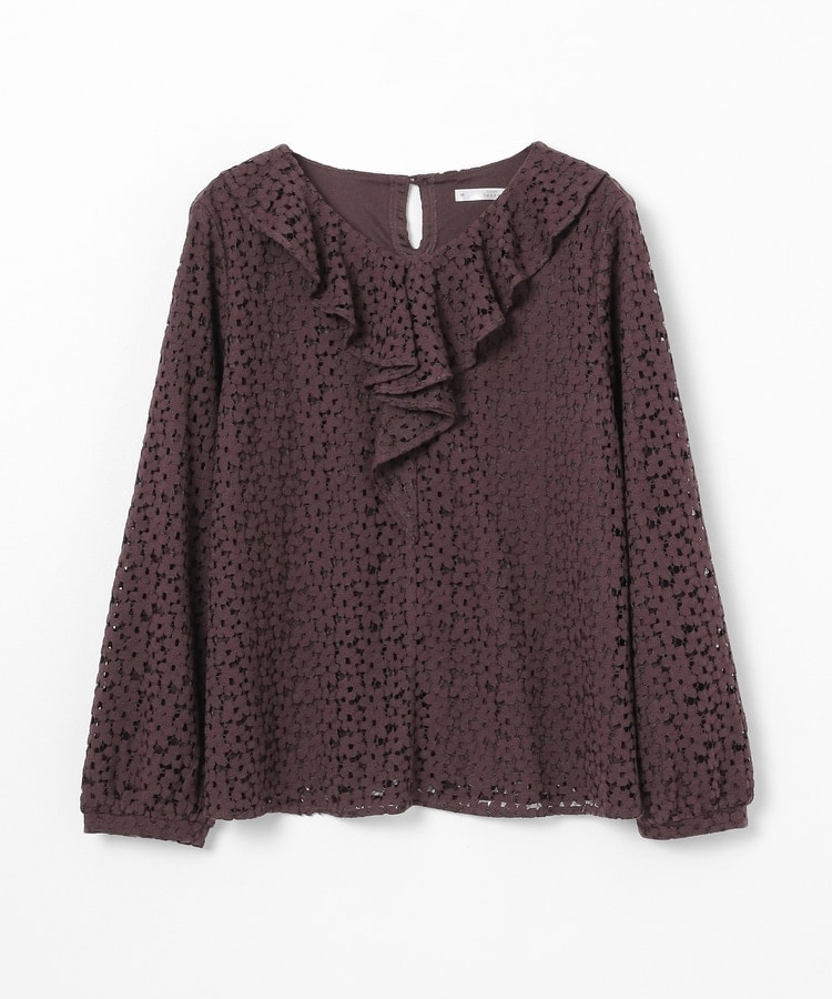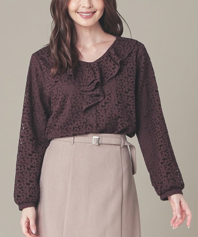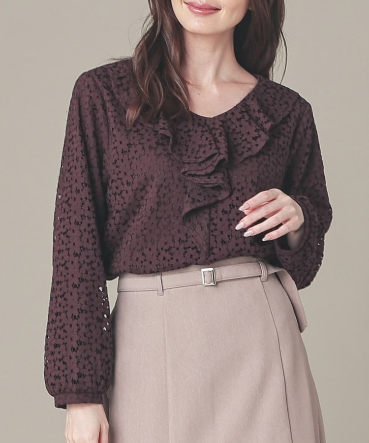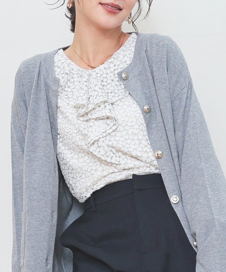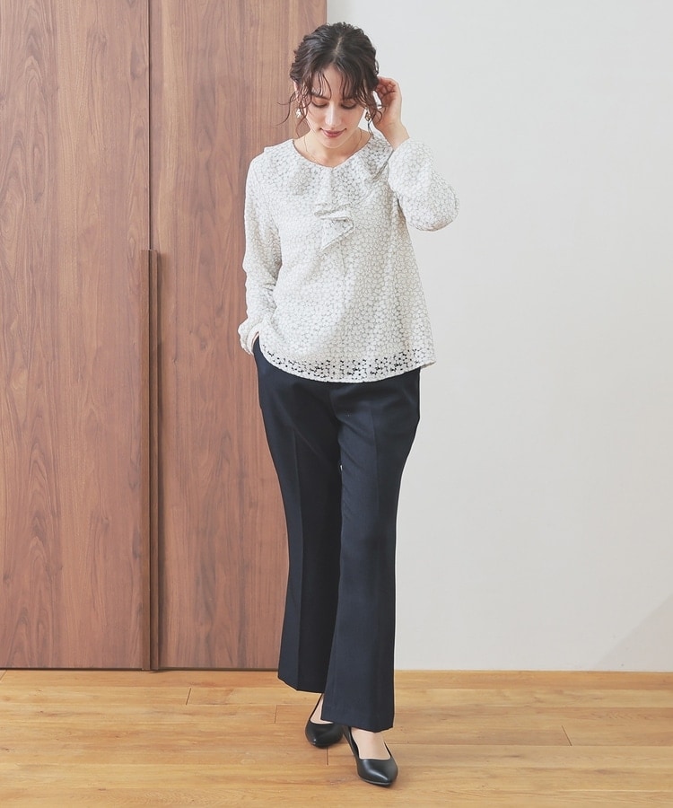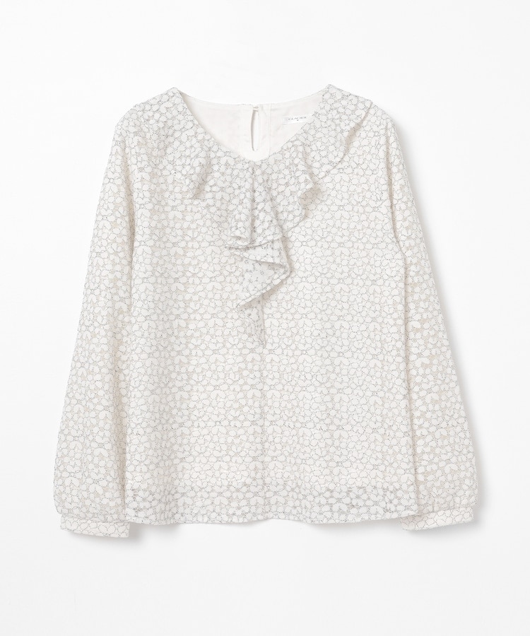 1枚で華やかな印象になるラッフルとレース素材で、レディーな装いが叶うデザイン。