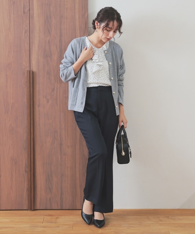 ジャケットにも合うサイズ感で、テーパードパンツと合わせた、お仕事やお出かけのきれいめスタイルから、デニムと合わせたMIXスタイルまで、幅広い着回しに活躍。