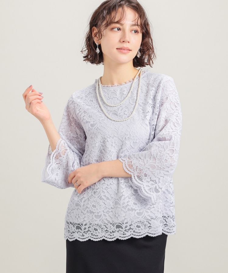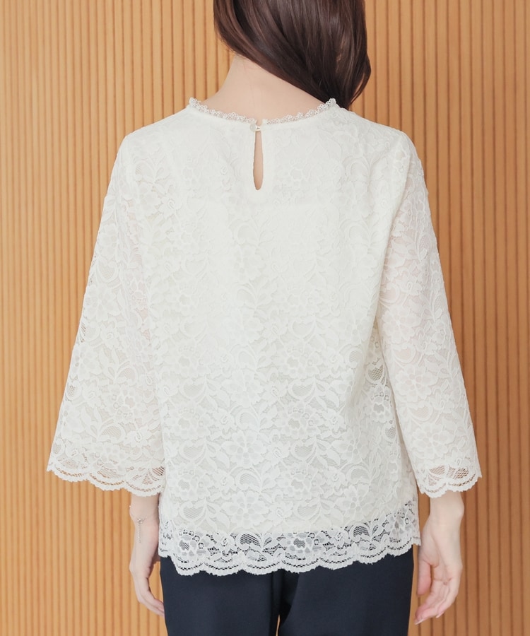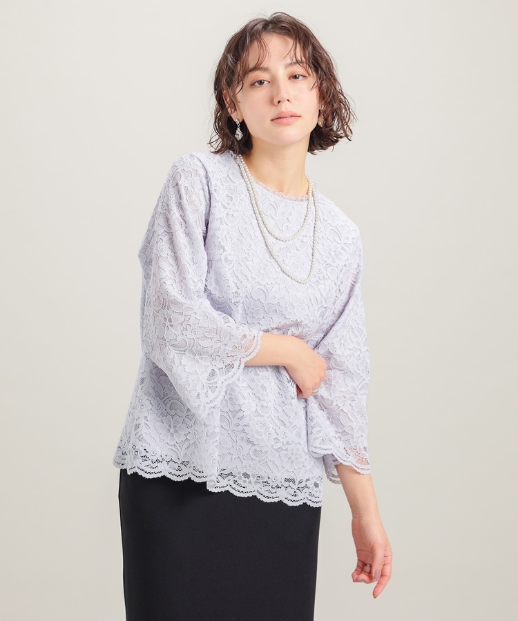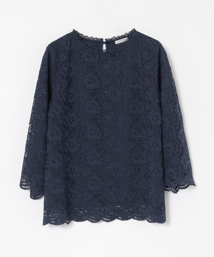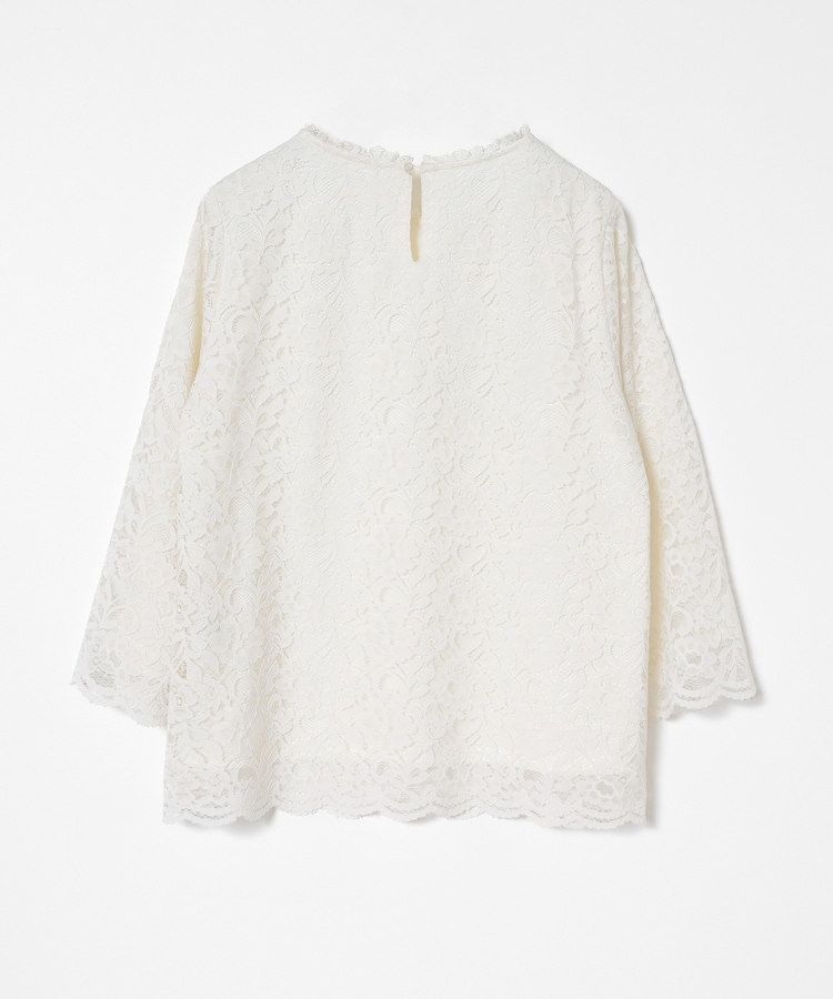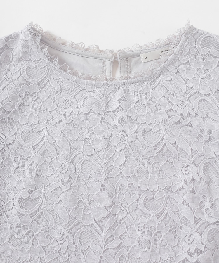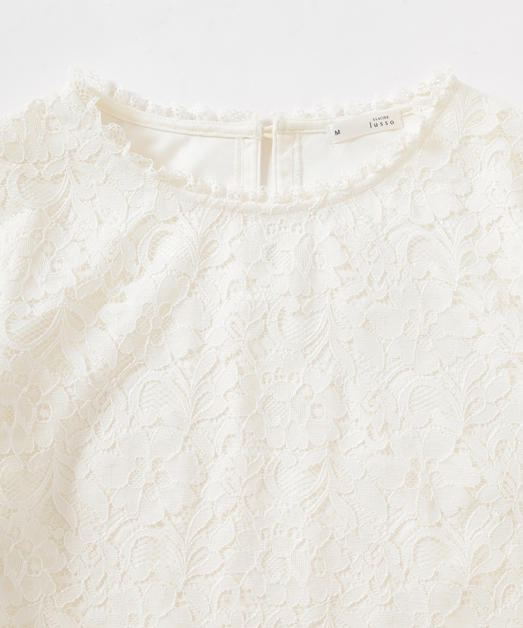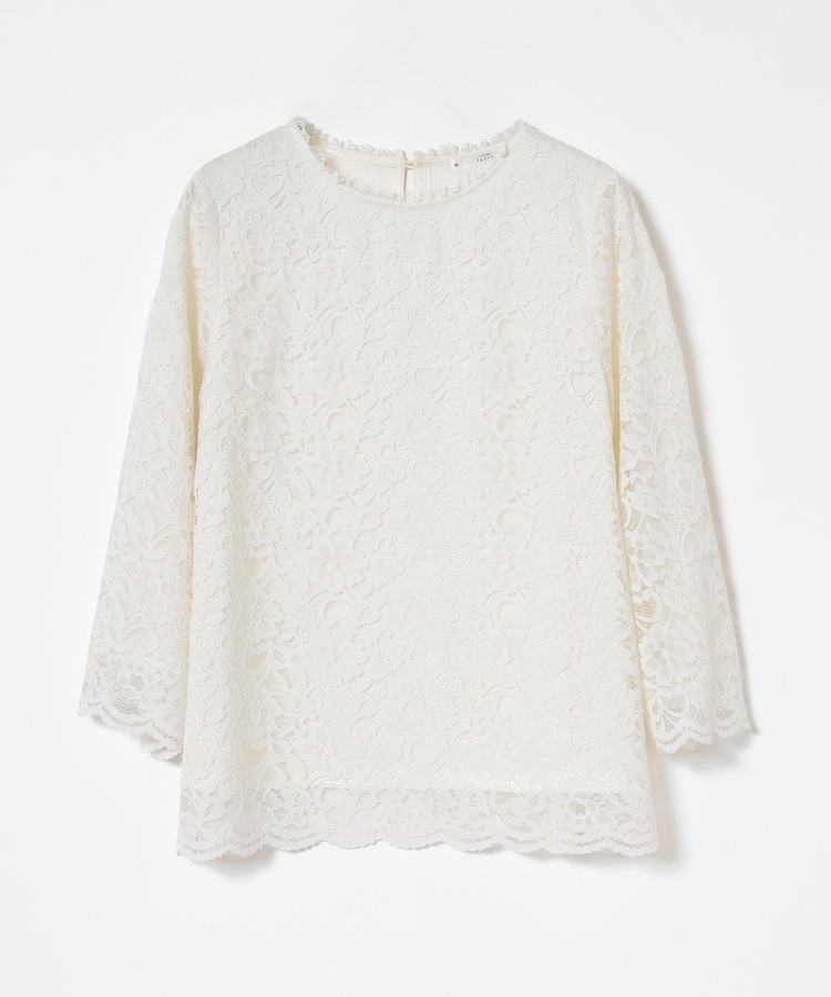 タックアウトでもサマになる、袖口・裾のスカラップと、衿ぐりのストレッチレースで華やかさアップ。