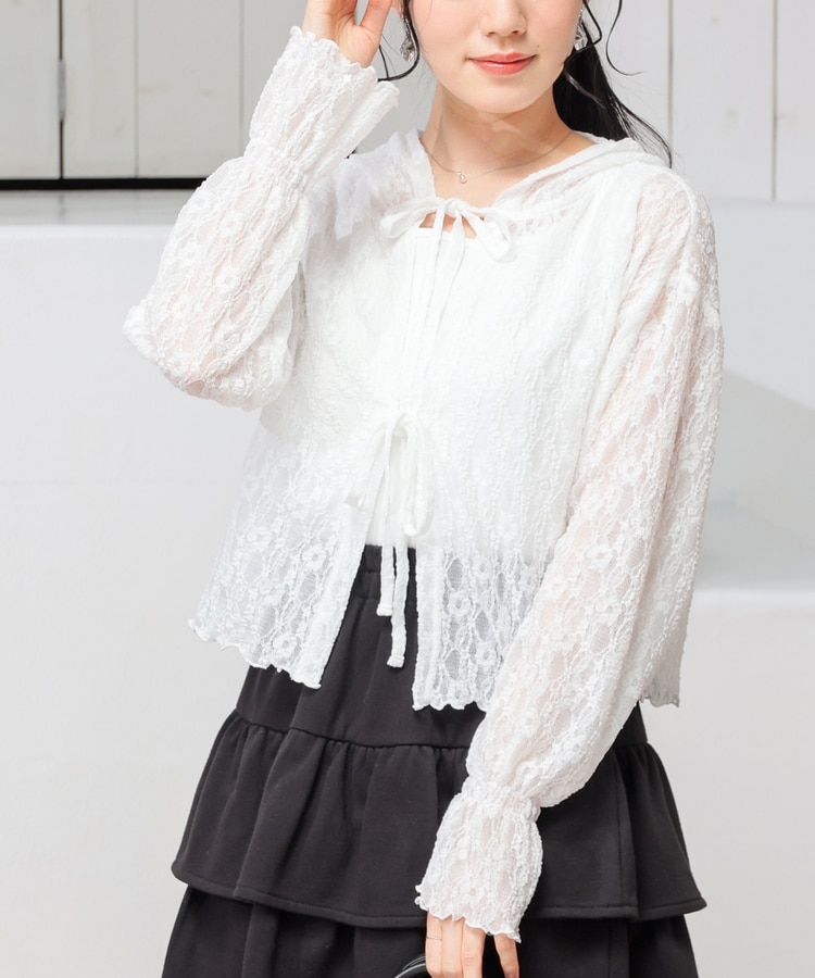 リボン付レースパーカー