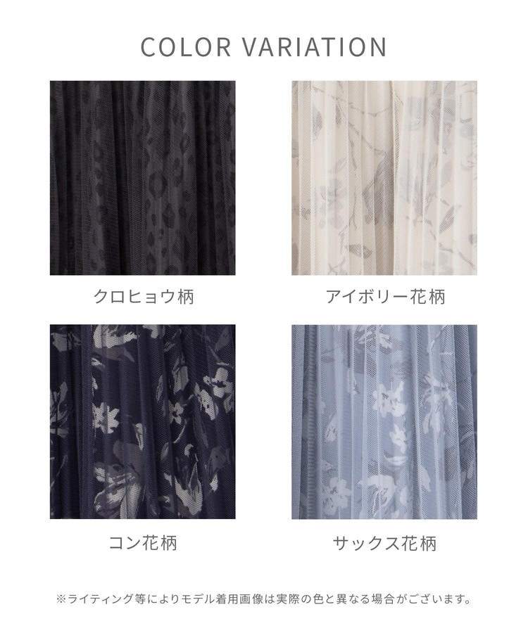 人気のヒョウ柄・花柄入りの裏地に、シアーなプリーツを重ねて優しい印象に仕上げたデザイン。