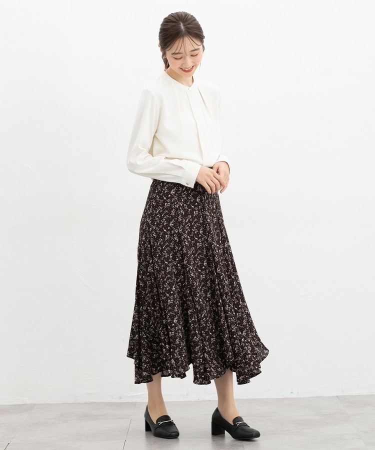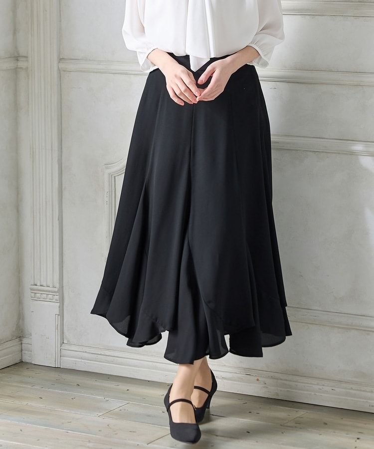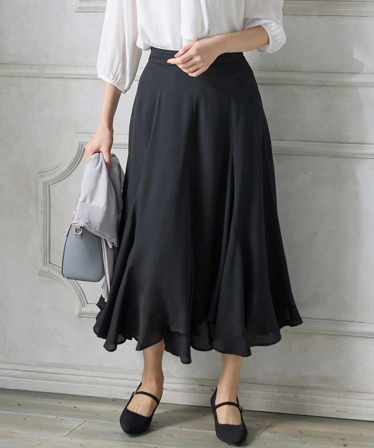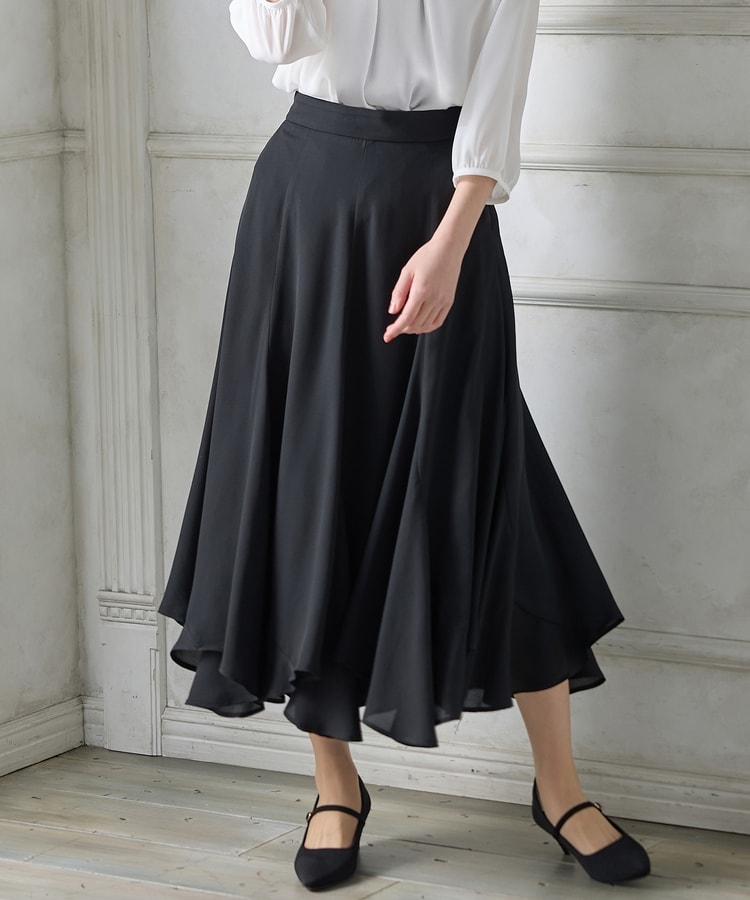 動くたびに裾にかけてひらひらと揺れるフィット&フレアシルエットがエレガントなデザイン。