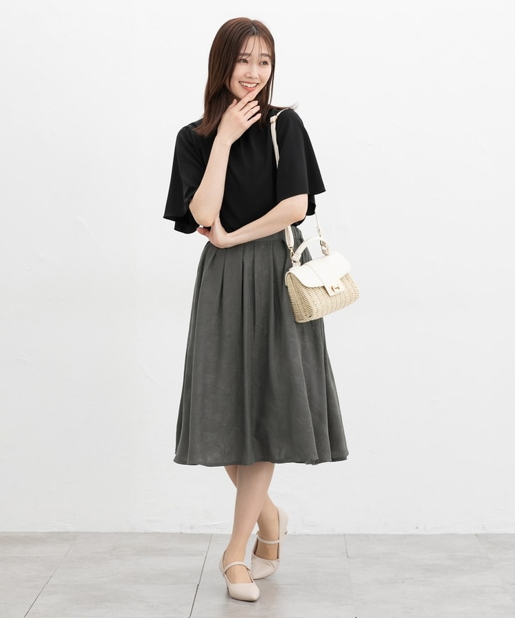 タックを入れた、ふんわりと広がるシルエットがフェミニンなデザイン。