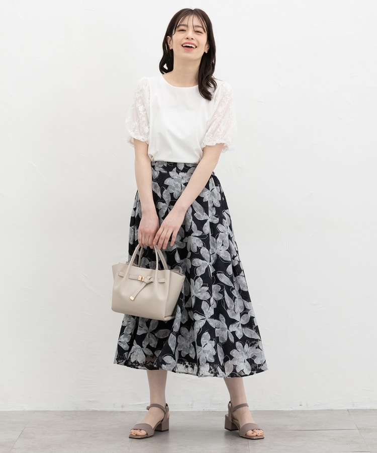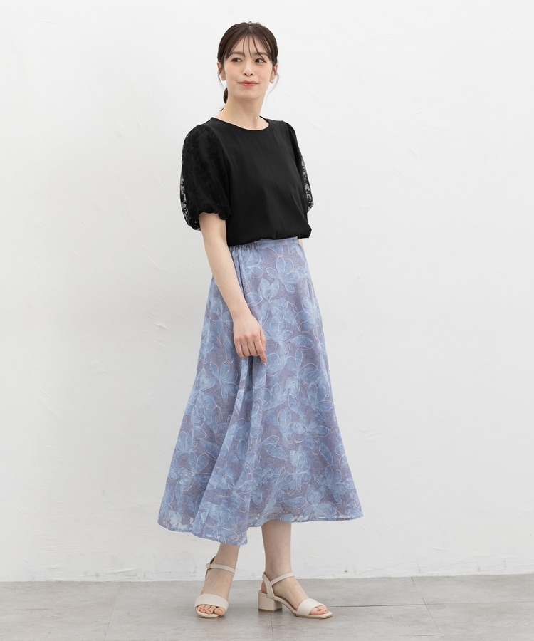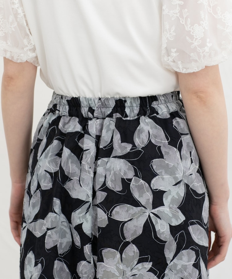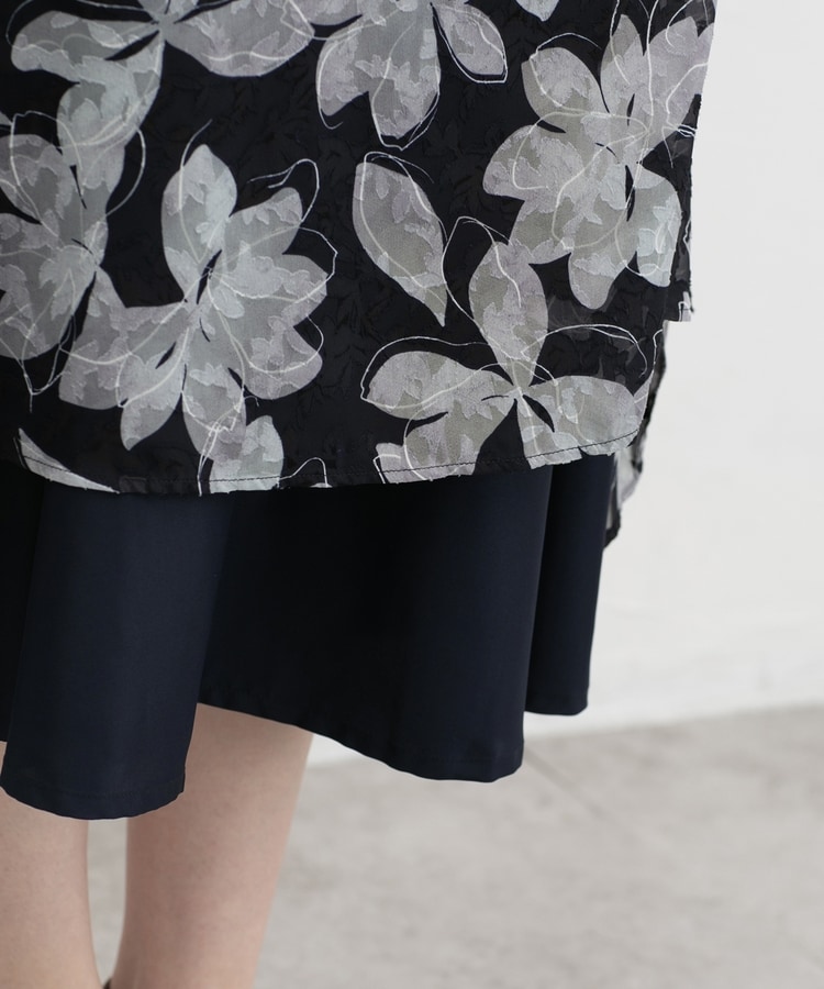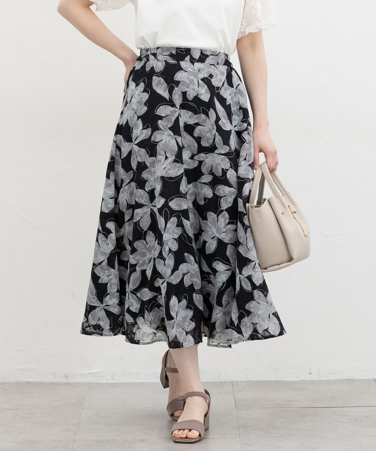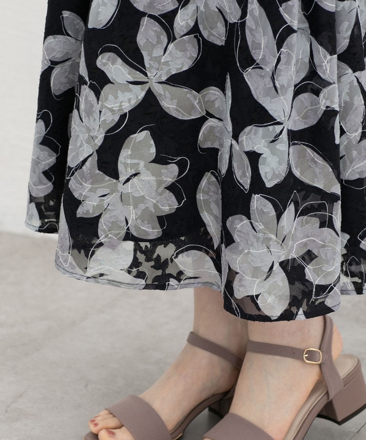 動くたびにふわりと揺れるフレアシルエットと、華やかな花柄の上品なデザイン。