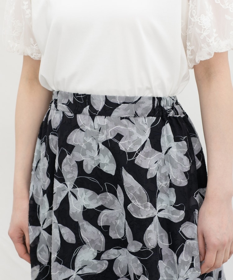 透け感のあるシフォンに、立体感のあるカットジャカードを飾った、軽やかで上品な素材。