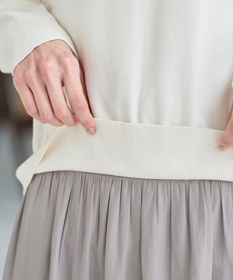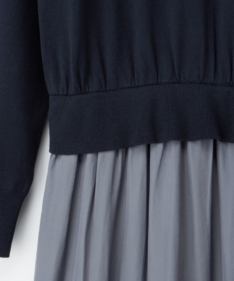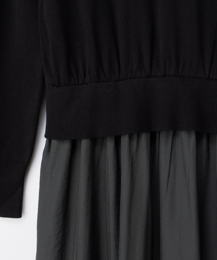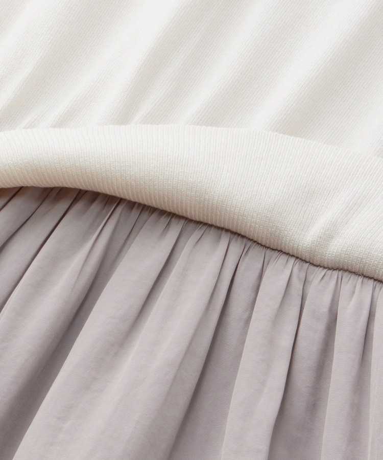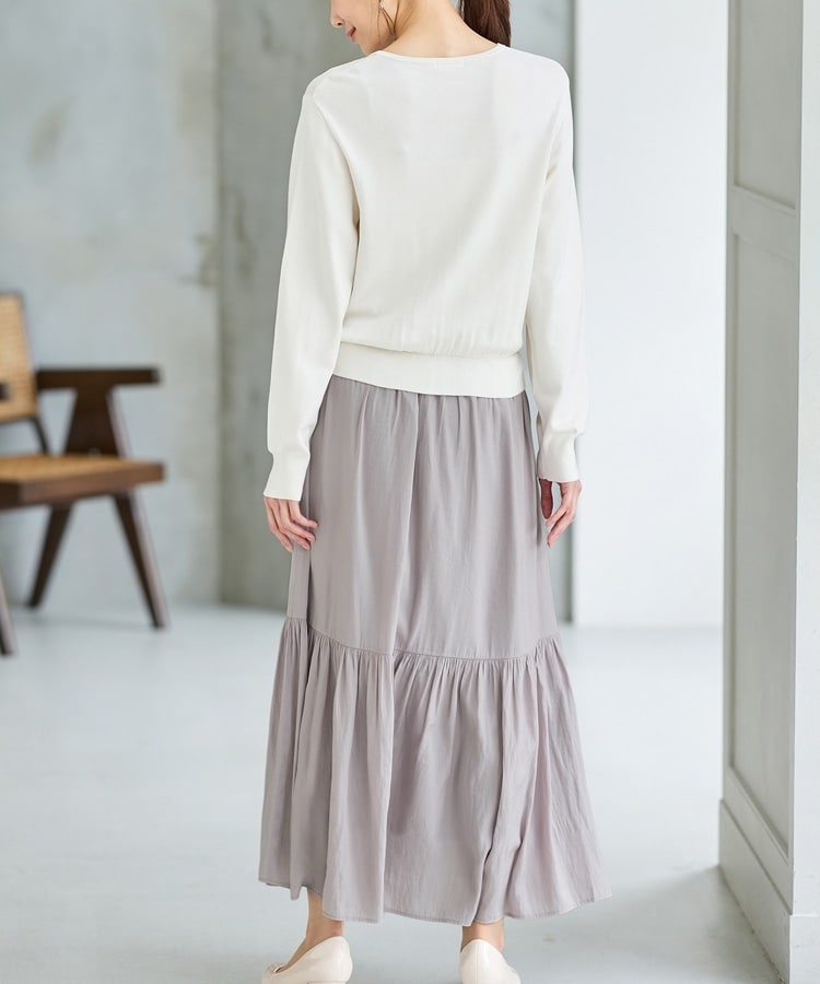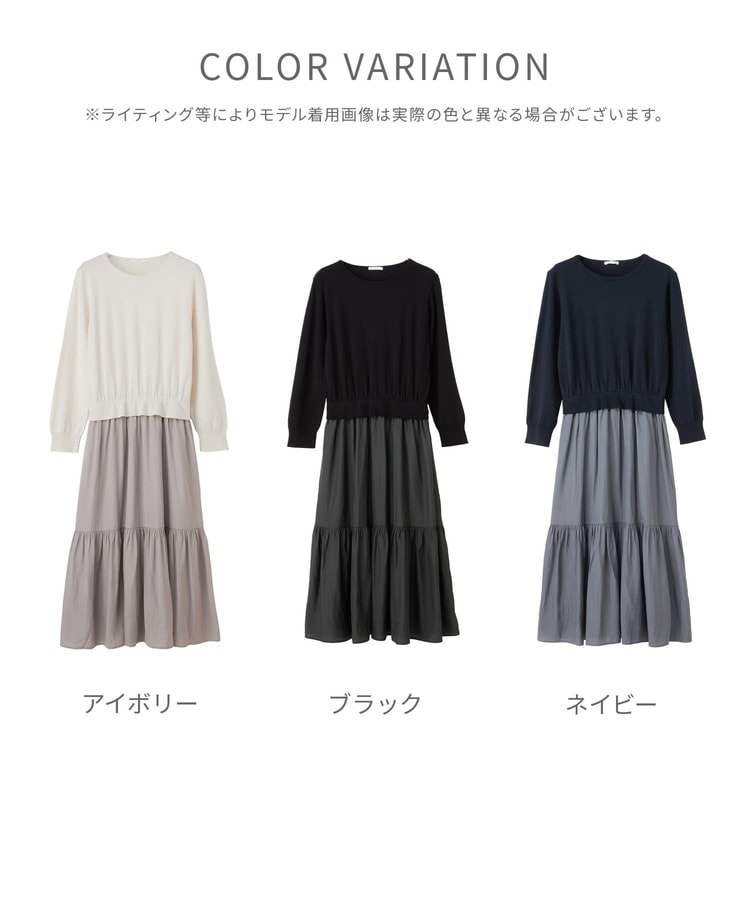シンプルなニット×大人可愛いティアードスカートのドッキングデザイン。
