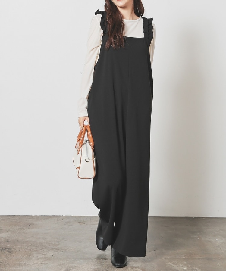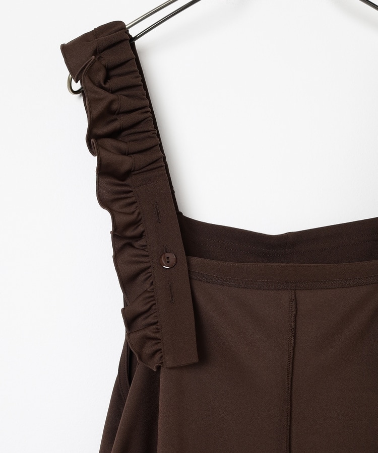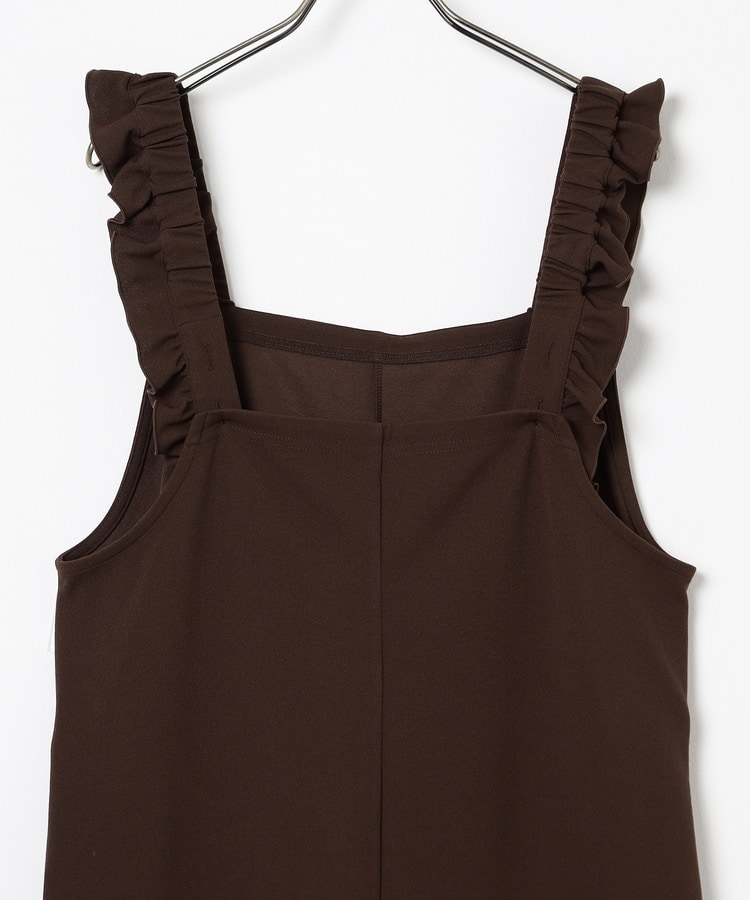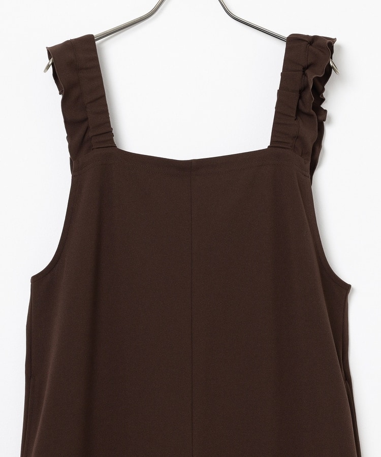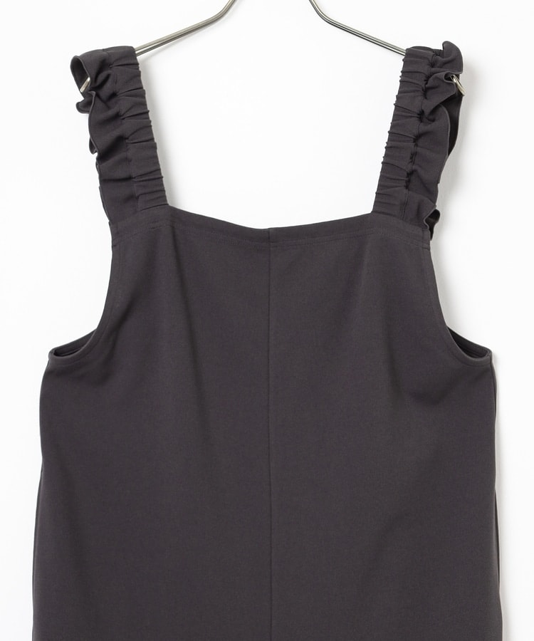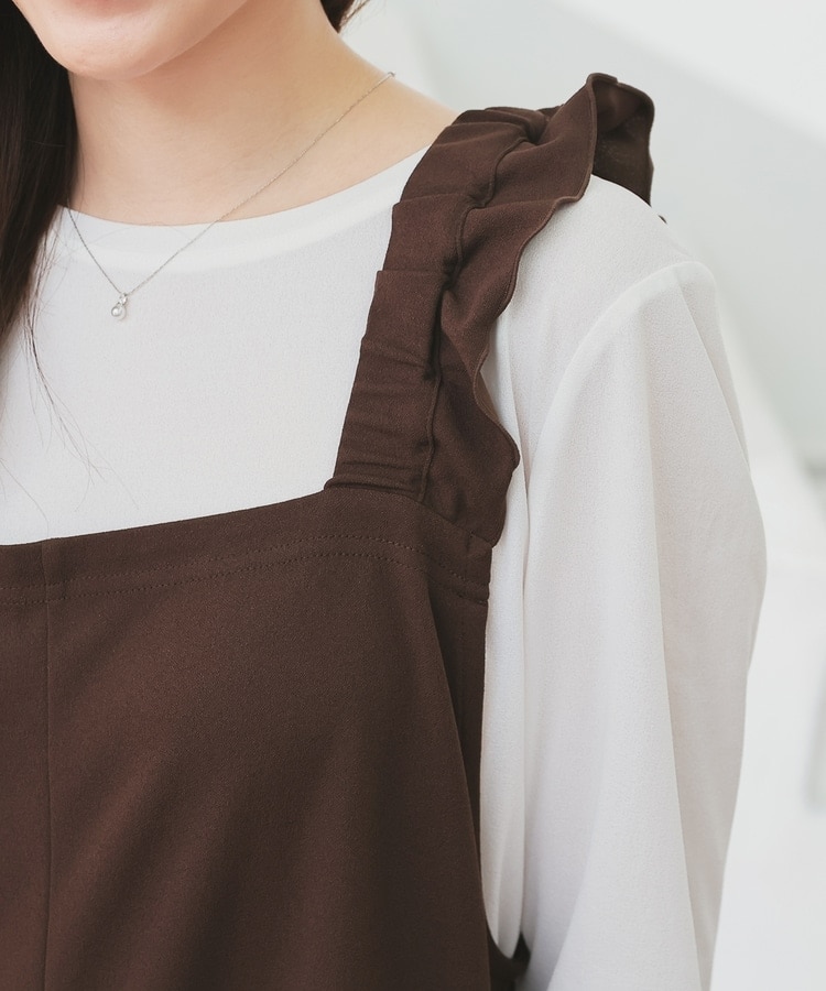 シンプルなシルエットながら、肩のフリルがガーリーなデザイン。