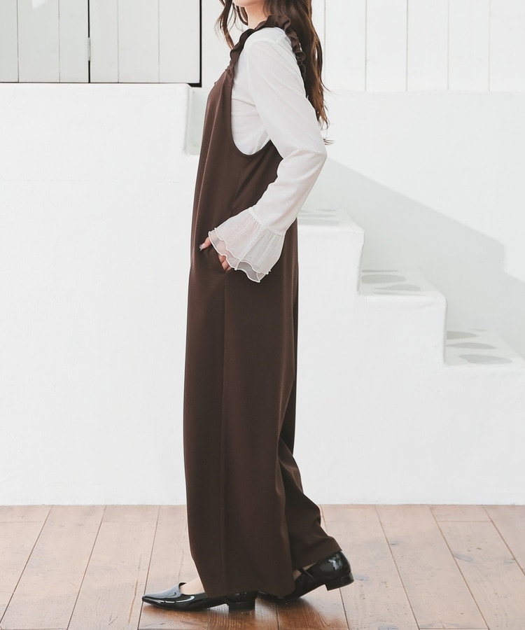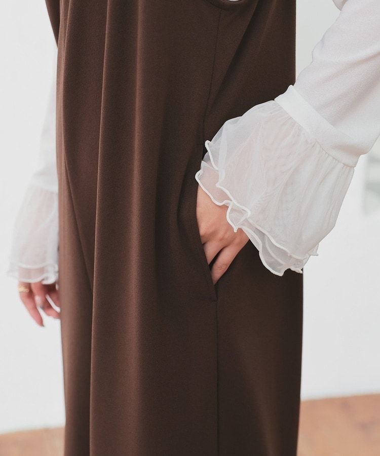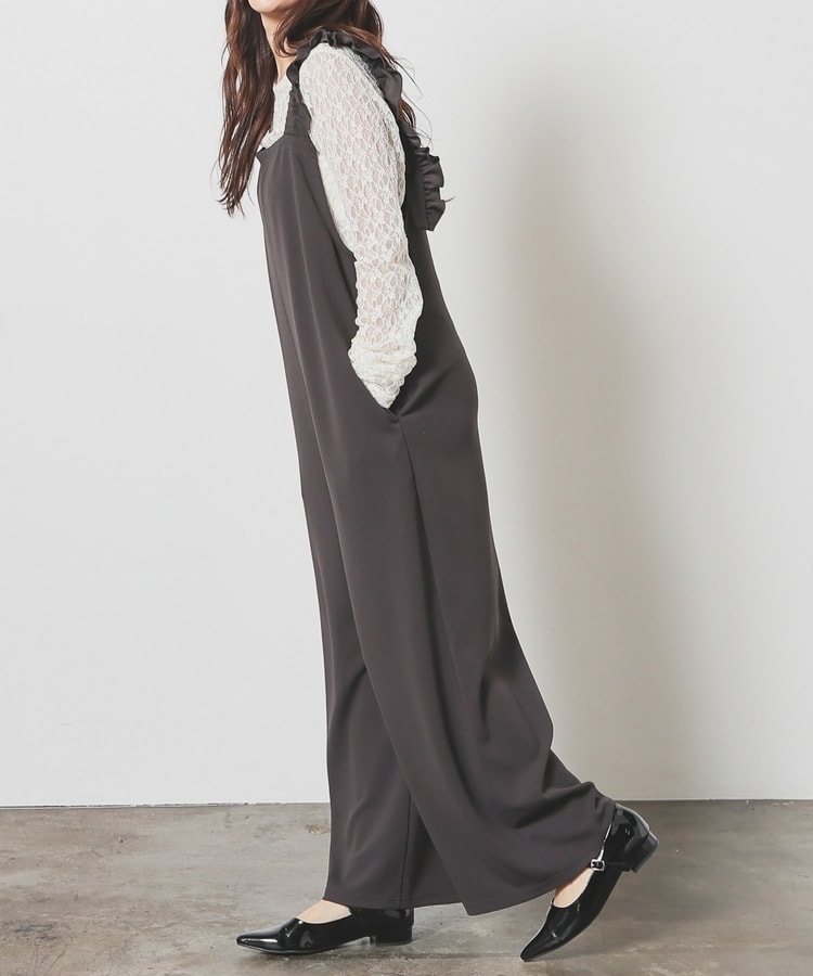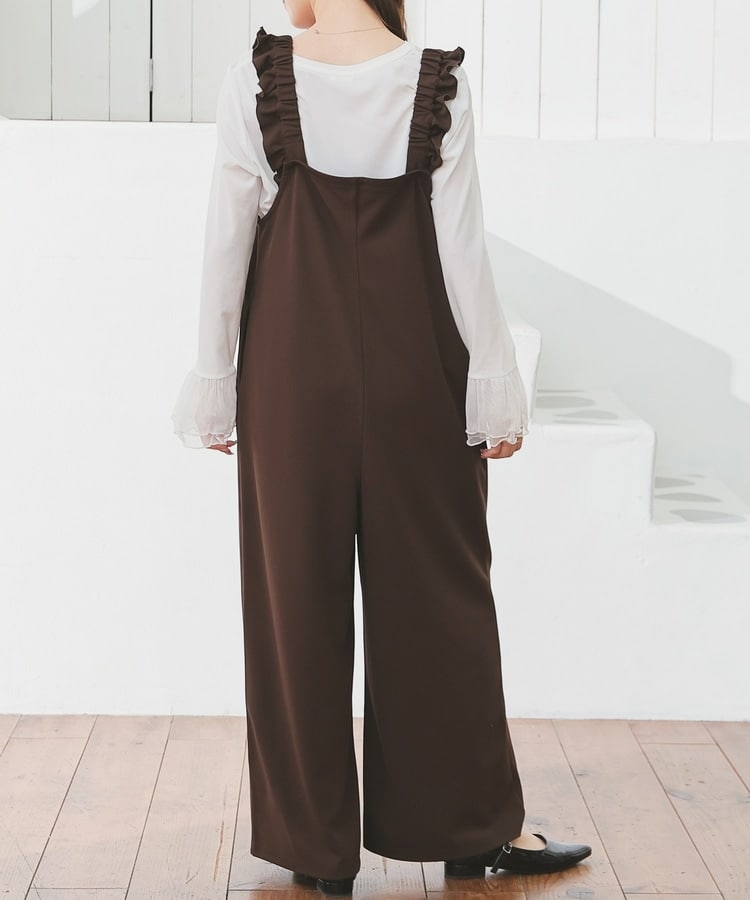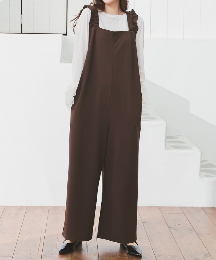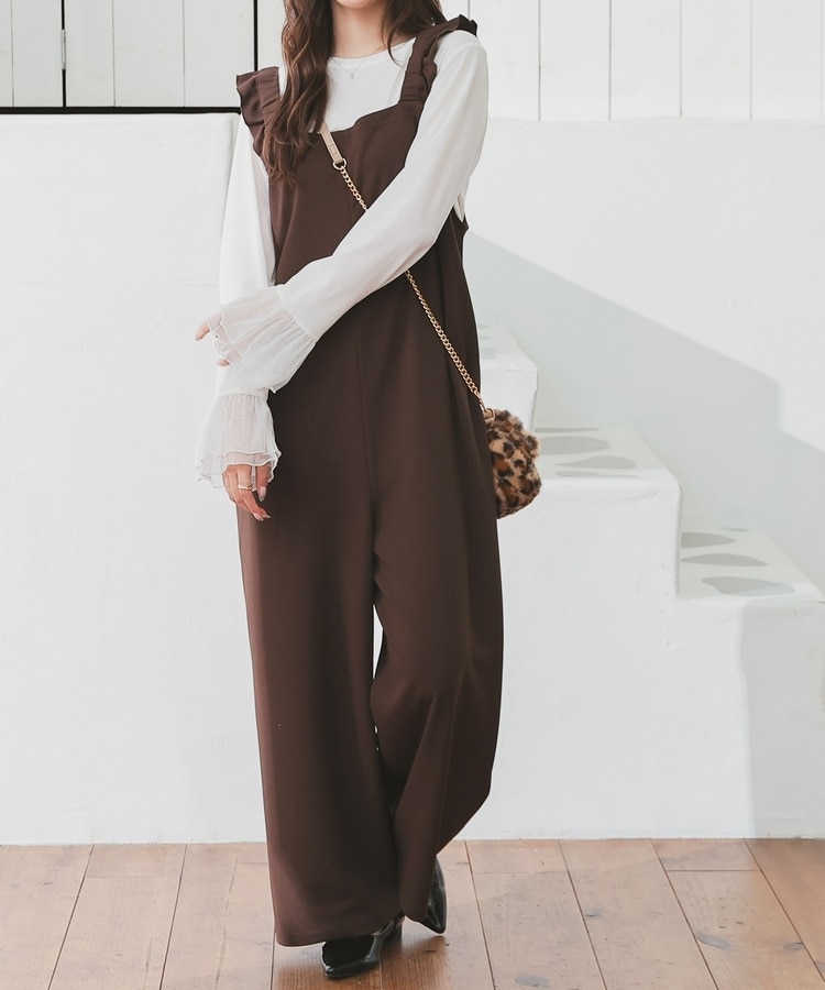 シンプルなシルエットながら、肩のフリルがガーリーなデザイン。
