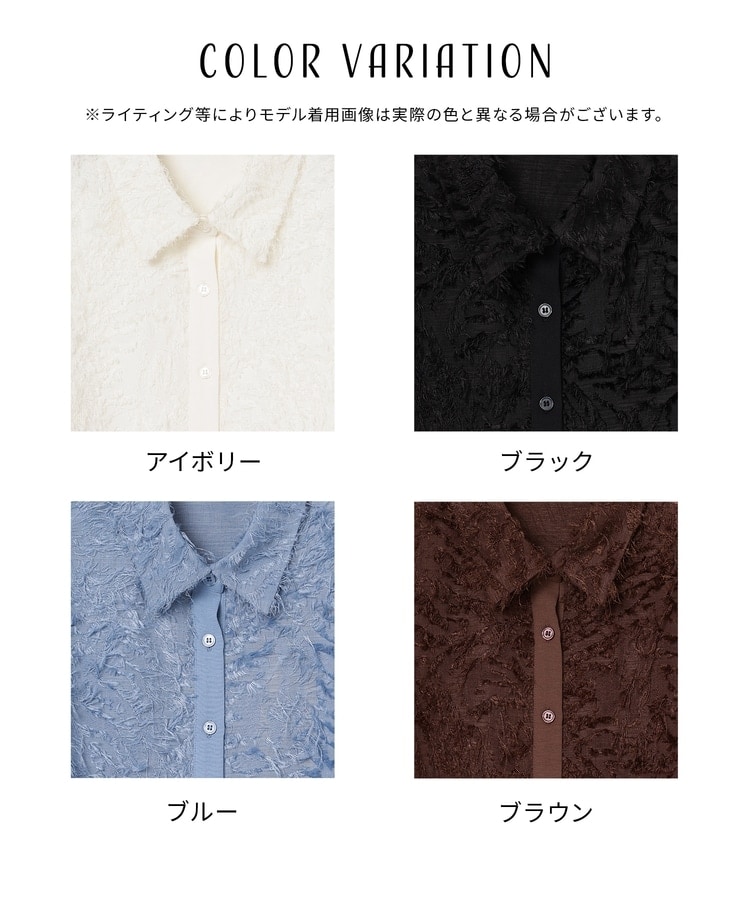ベーシックなレギュラーカラーに、立体感のあるフリンジで洒落感をプラス。