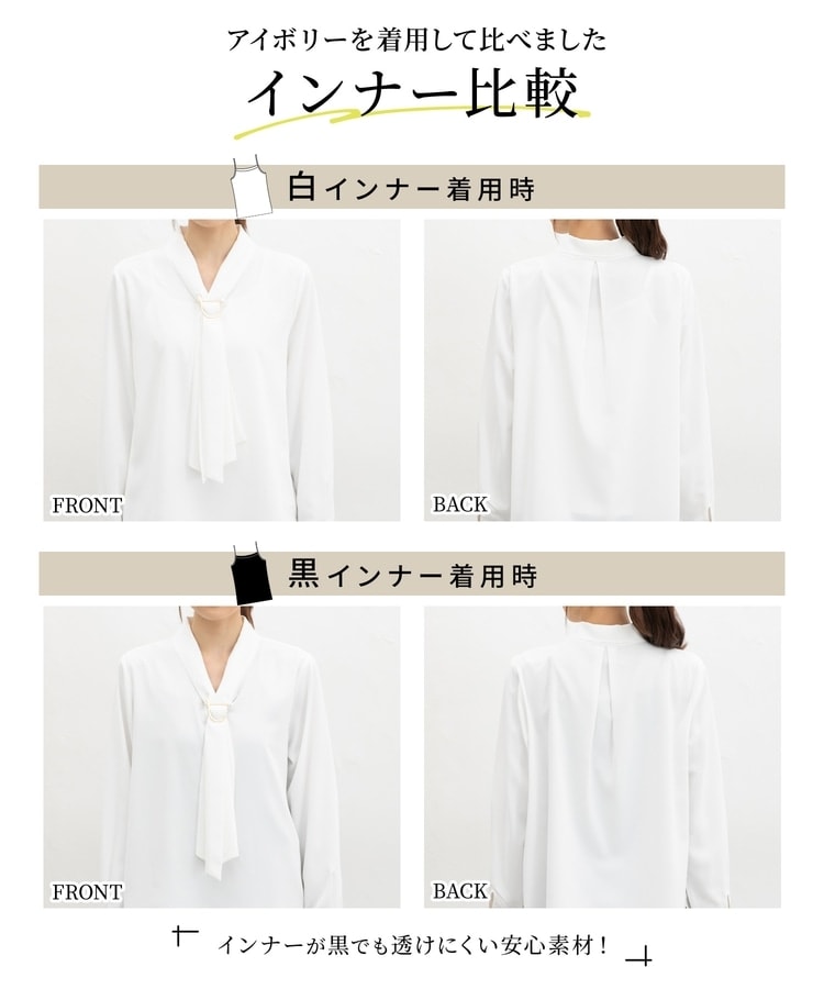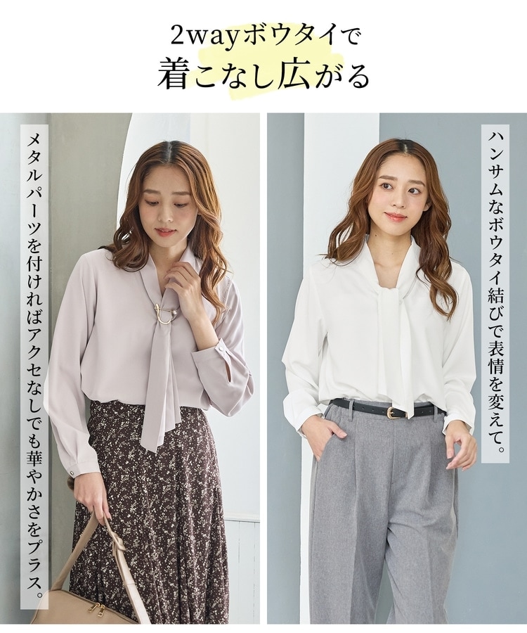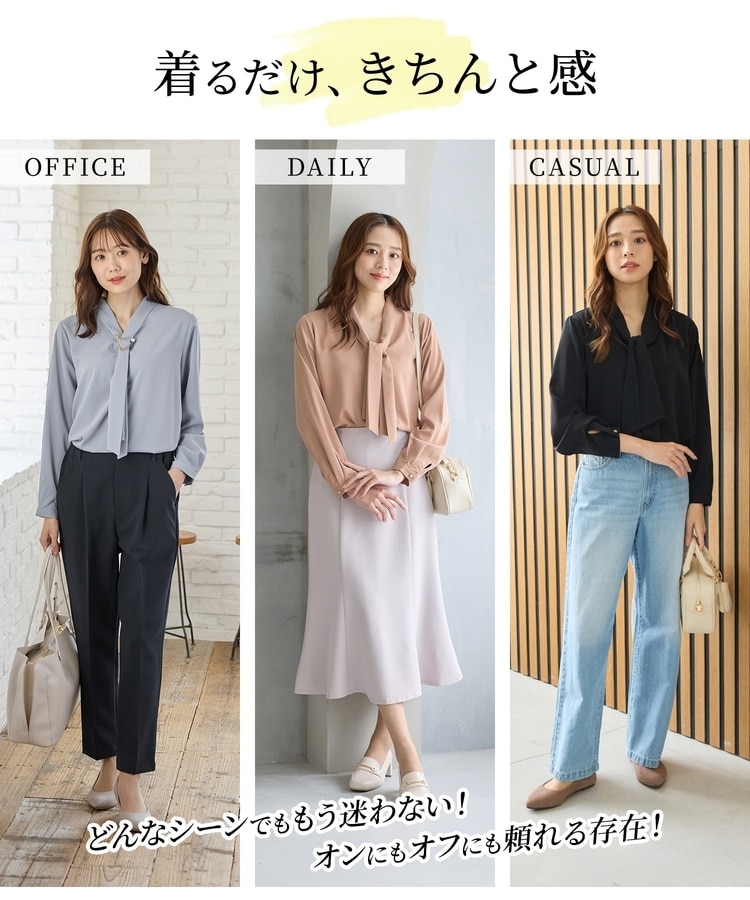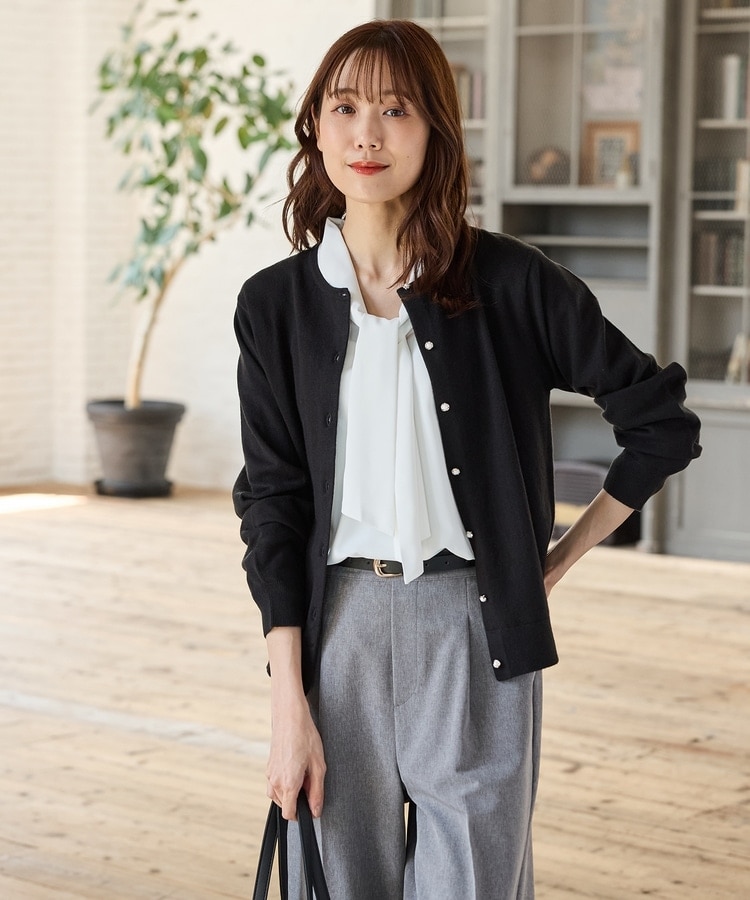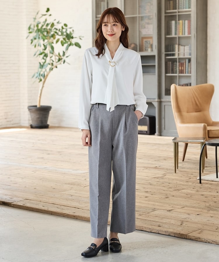 ジャケットにも合うサイズ感で、テーパードパンツやフレアスカートと合わせた、お仕事やフォーマルのきれいめスタイルに活躍。