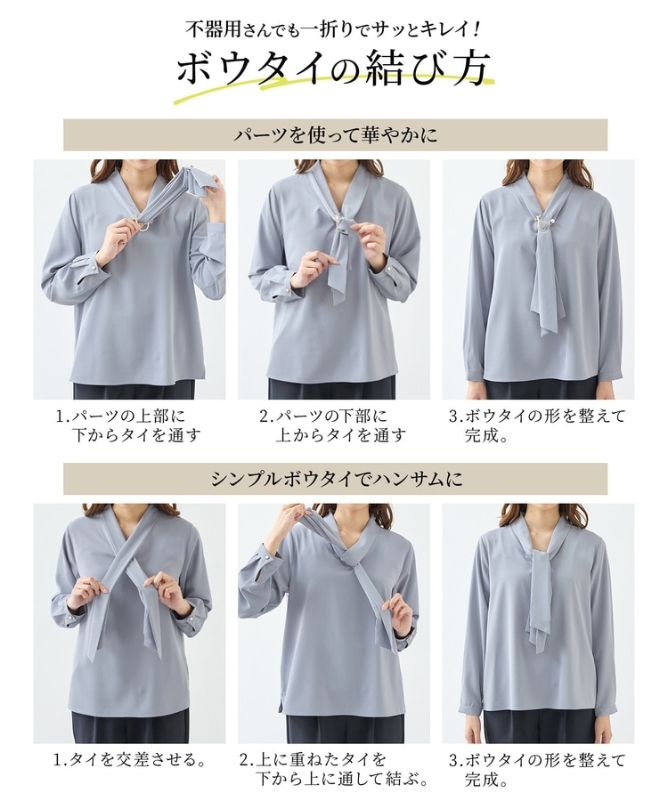 アクセサリーを外してシンプルなボウタイにもでき、印象チェンジが楽しめる♪