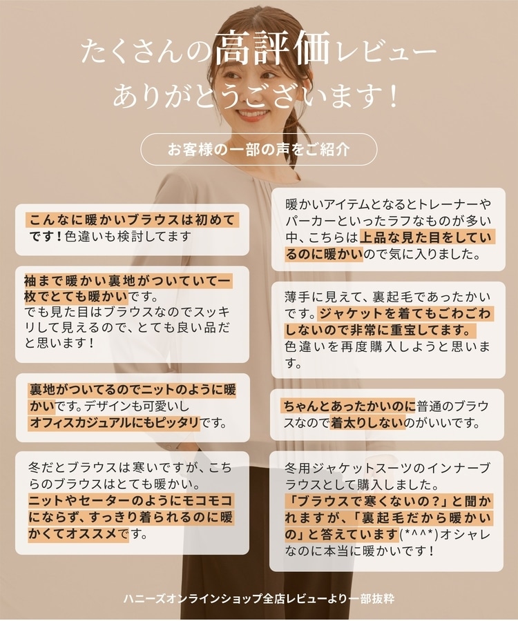柔らかなジョーゼット素材に、裏起毛であたたかくソフトな肌触りの裏地が付いた『ハニぽか』アイテム。