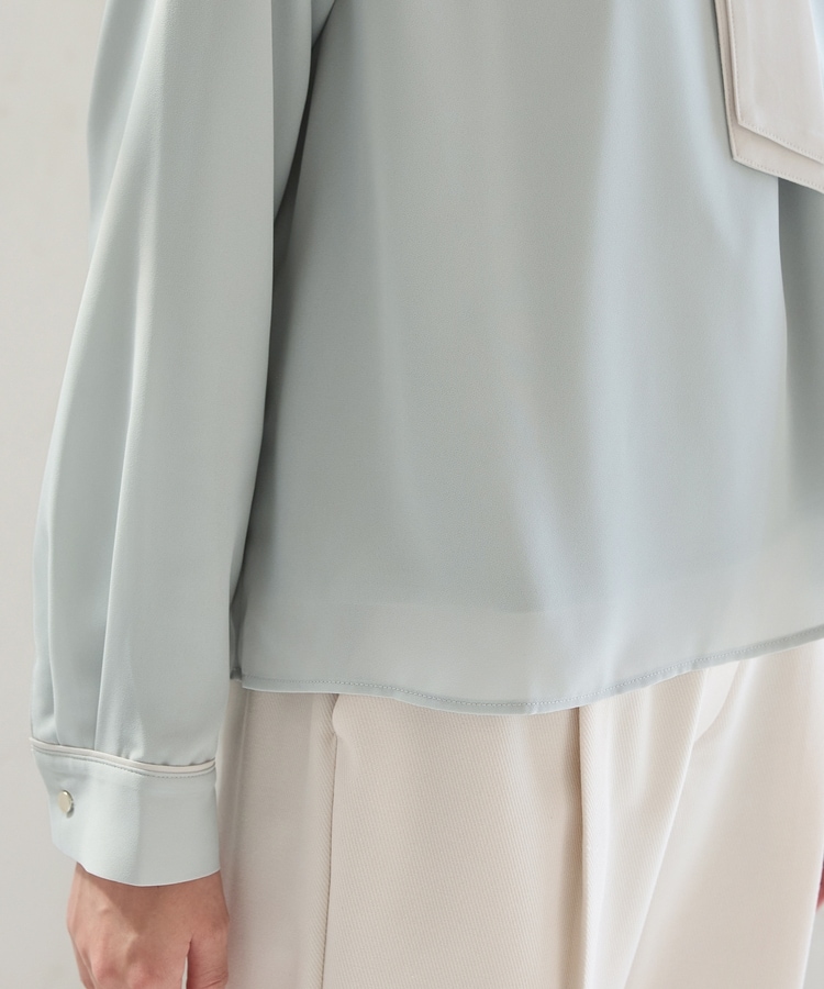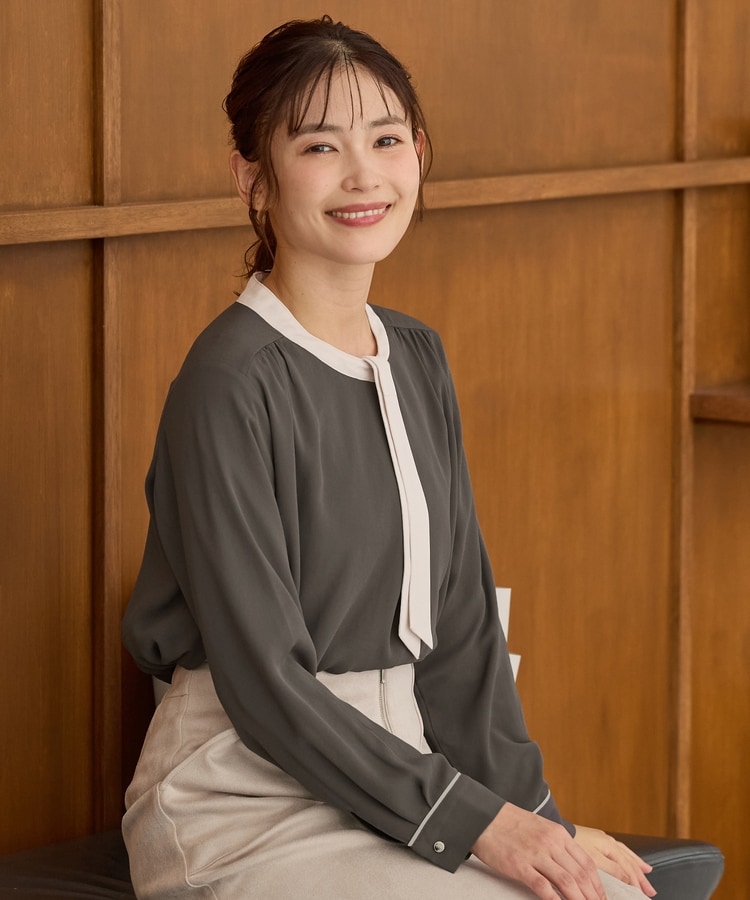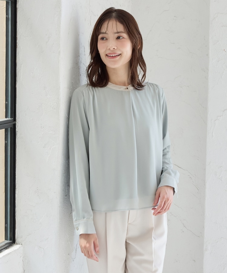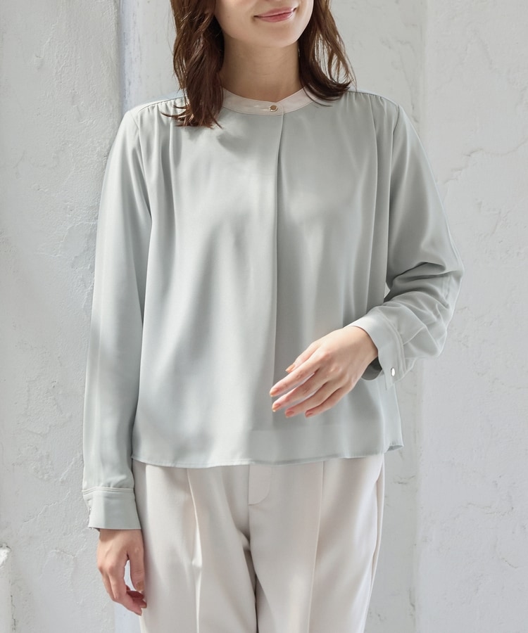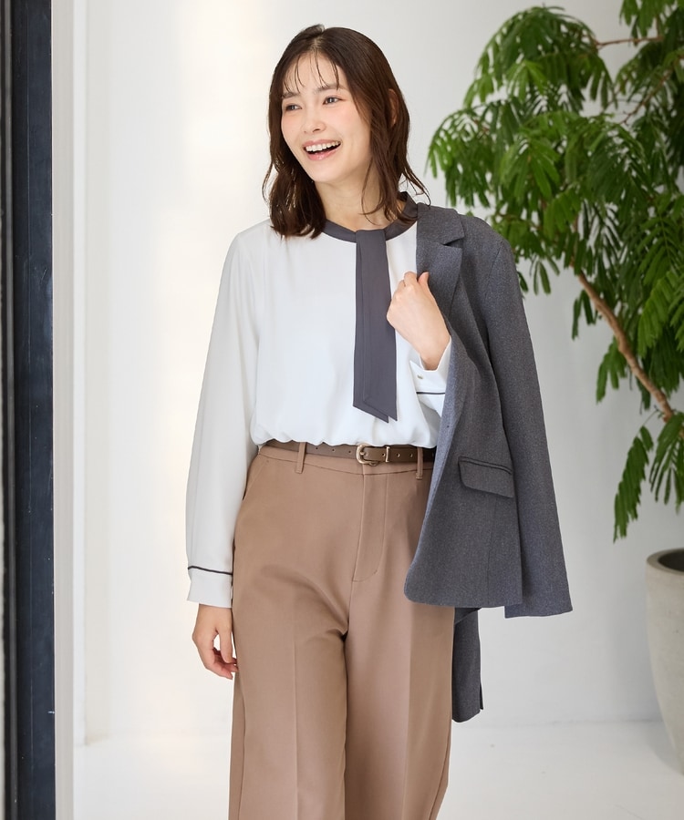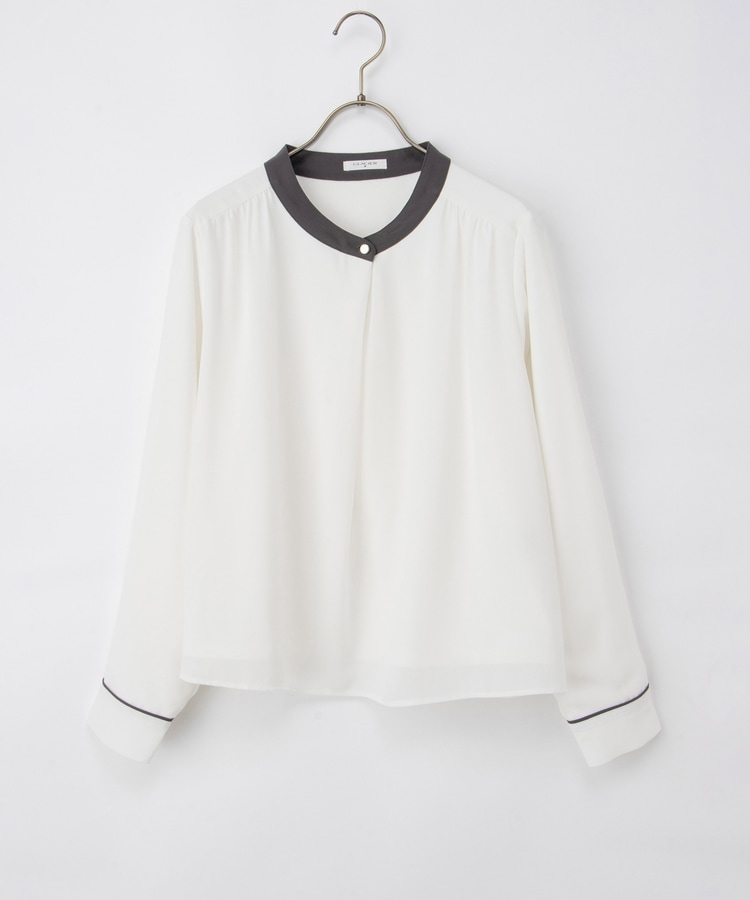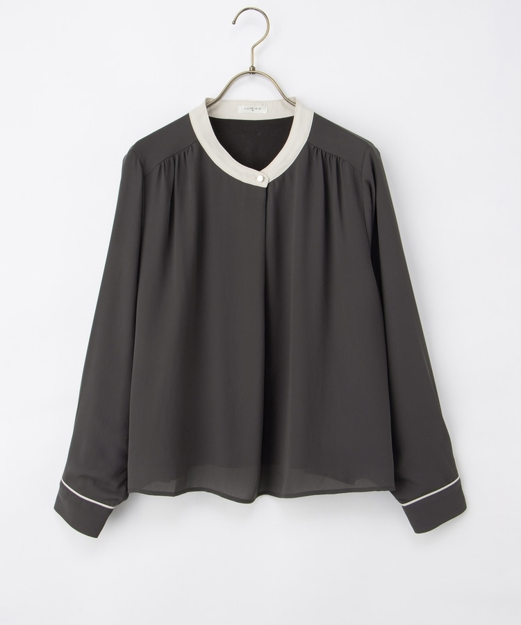 バンドカラーの衿と袖口も配色使いで、シンプルになりすぎないのも嬉しいポイント。
