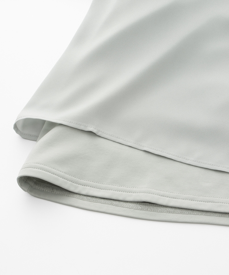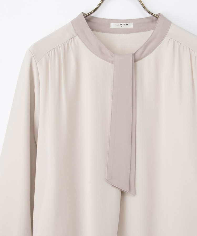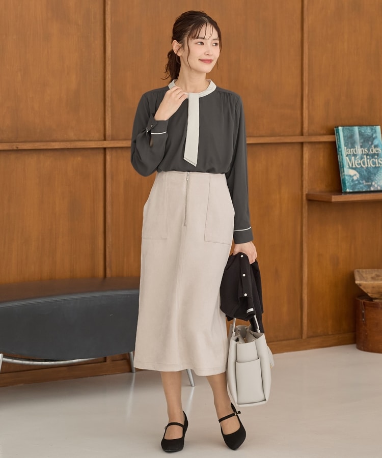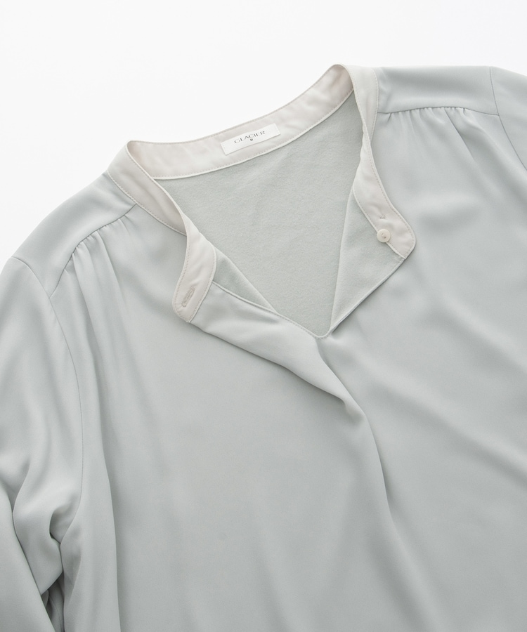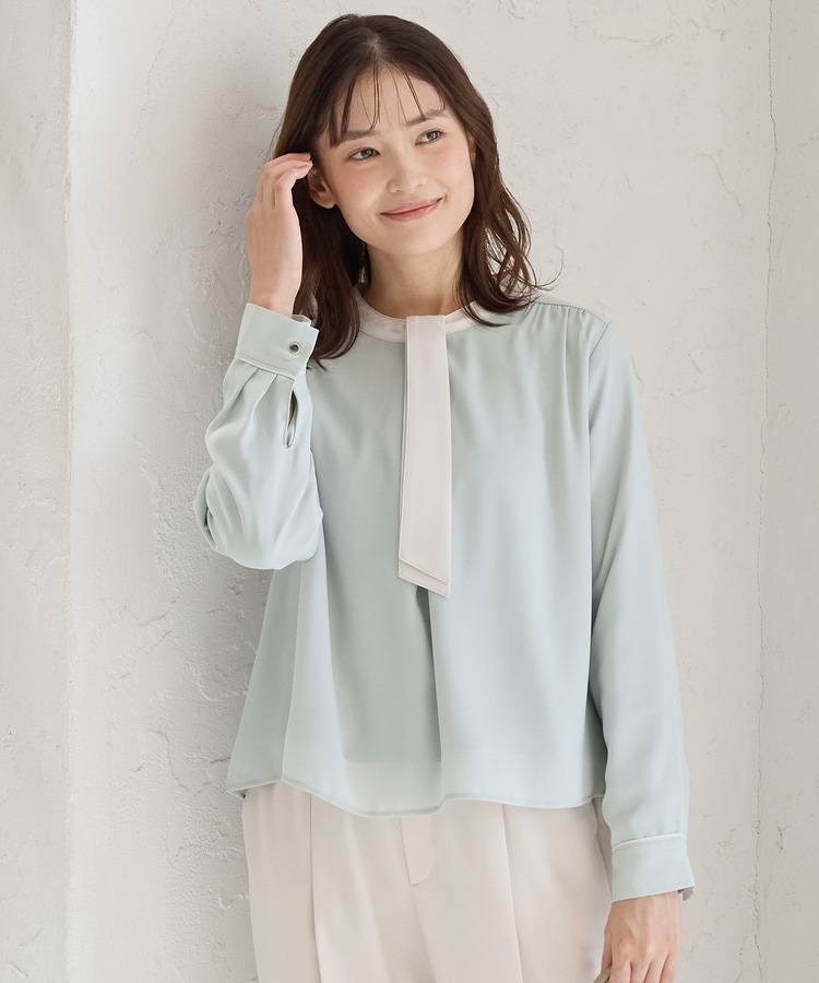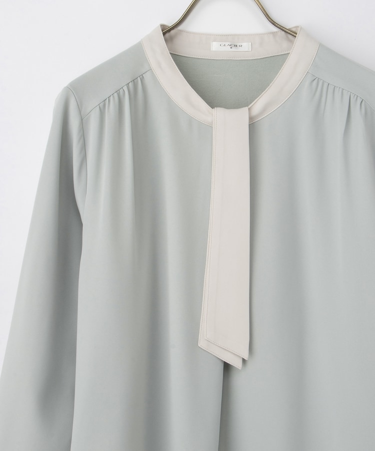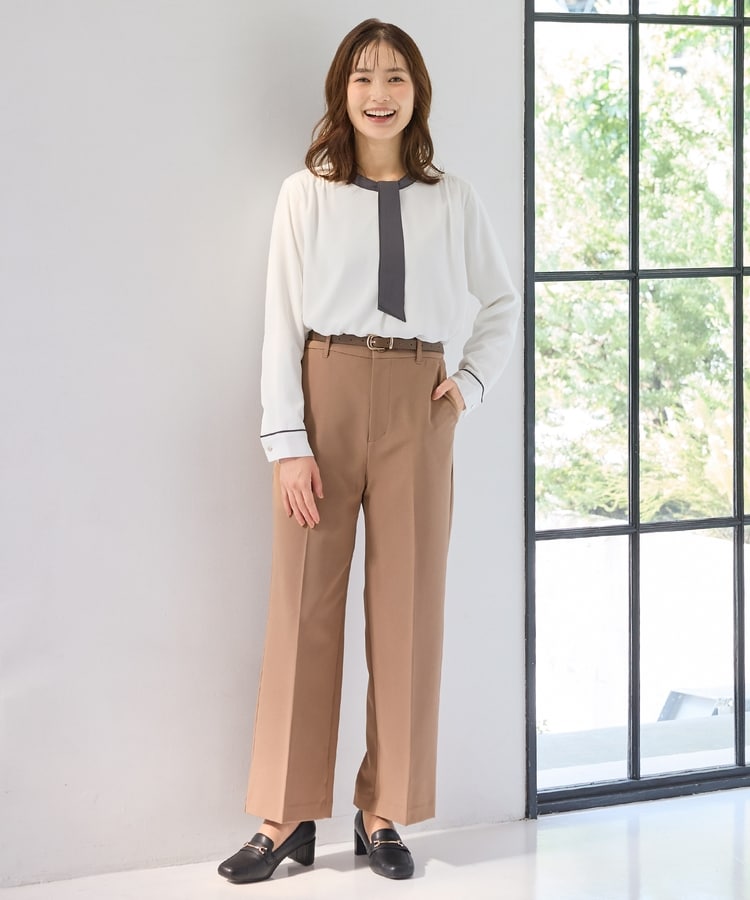 バンドカラーの衿と袖口も配色使いで、シンプルになりすぎないのも嬉しいポイント。