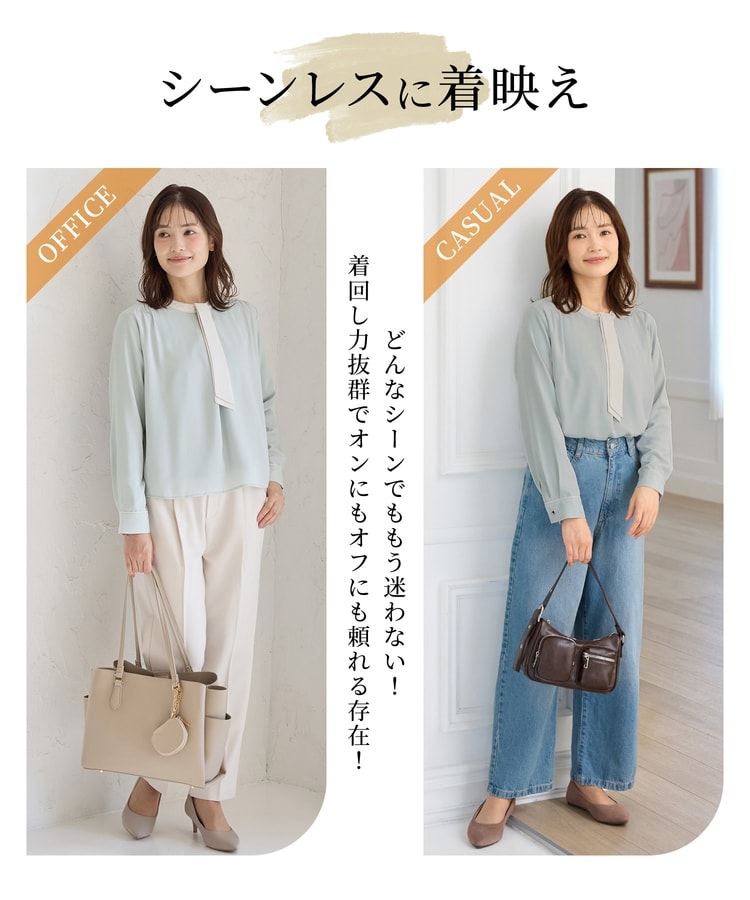 ジャケットにも合うサイズ感で、テーパードパンツ、ワイドパンツ、スカートと、どんなボトムスとも好相性。
