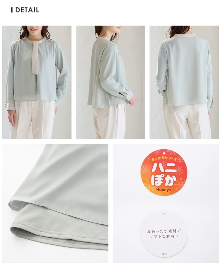 柔らかなジョーゼット素材に、裏起毛であたたかくソフトな肌触りの裏地が付いた『ハニぽか』アイテム。