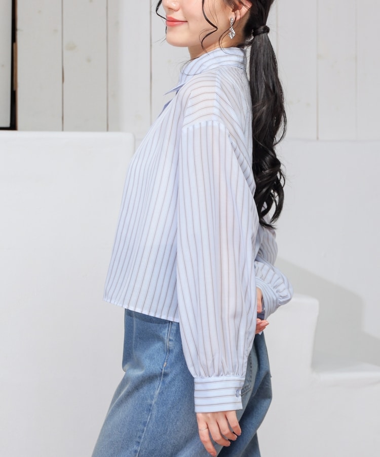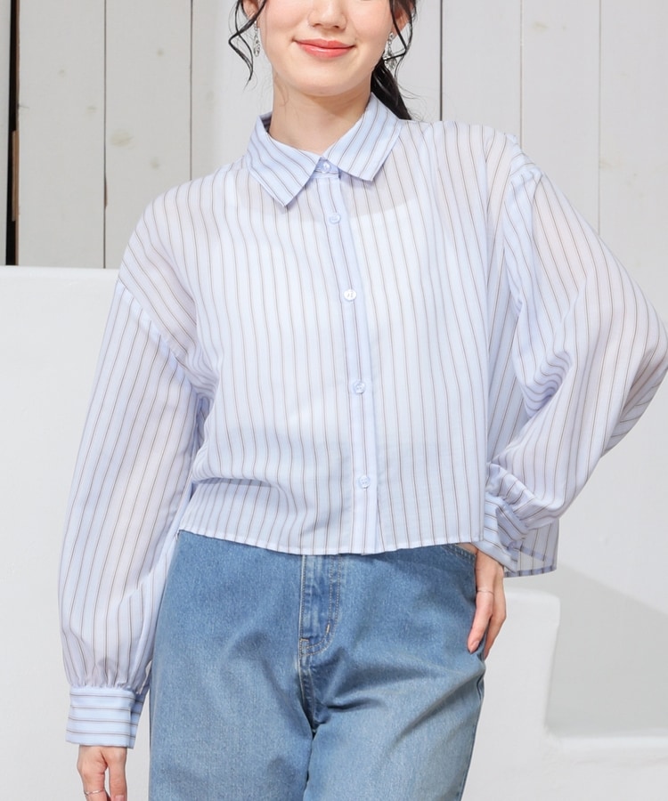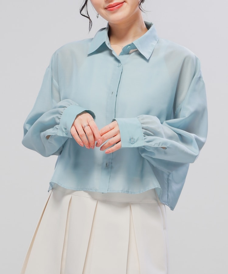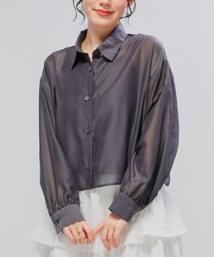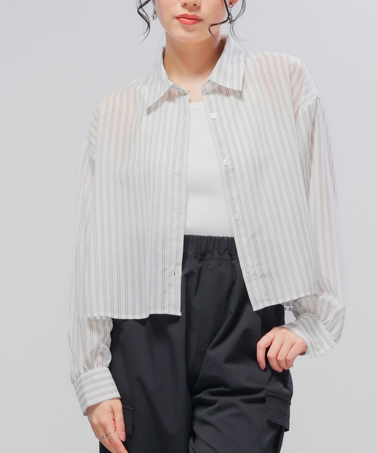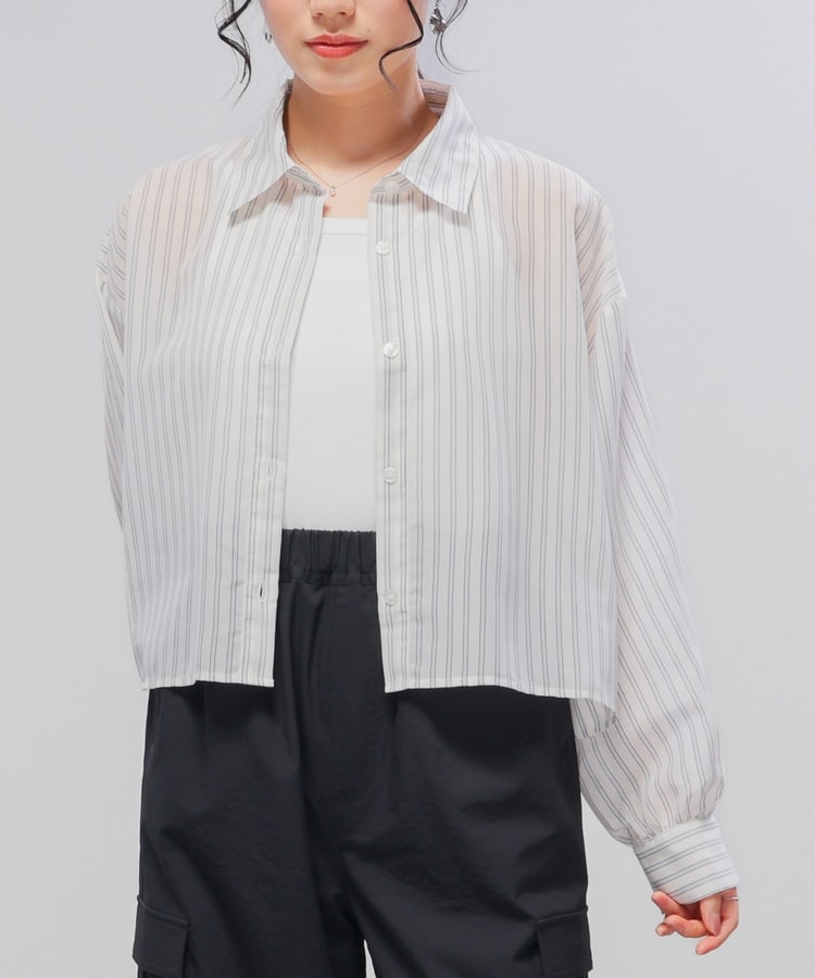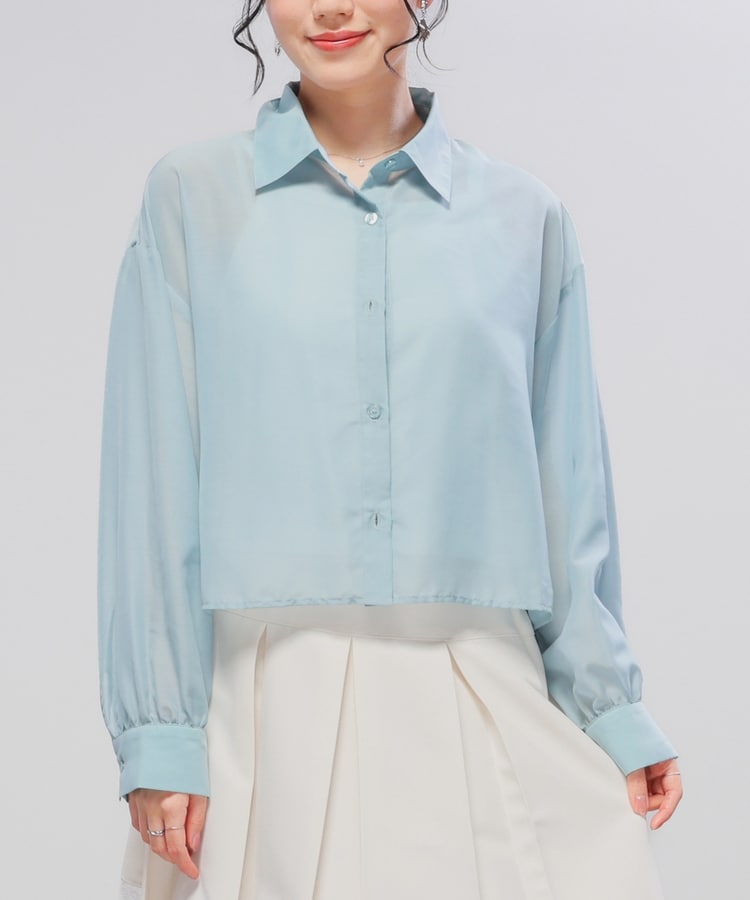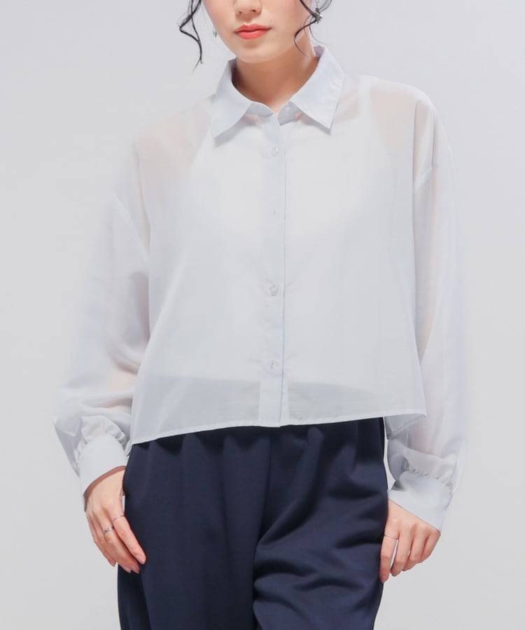 シアーシャツはゆったり幅×短め丈でスタイルアップ効果抜群。