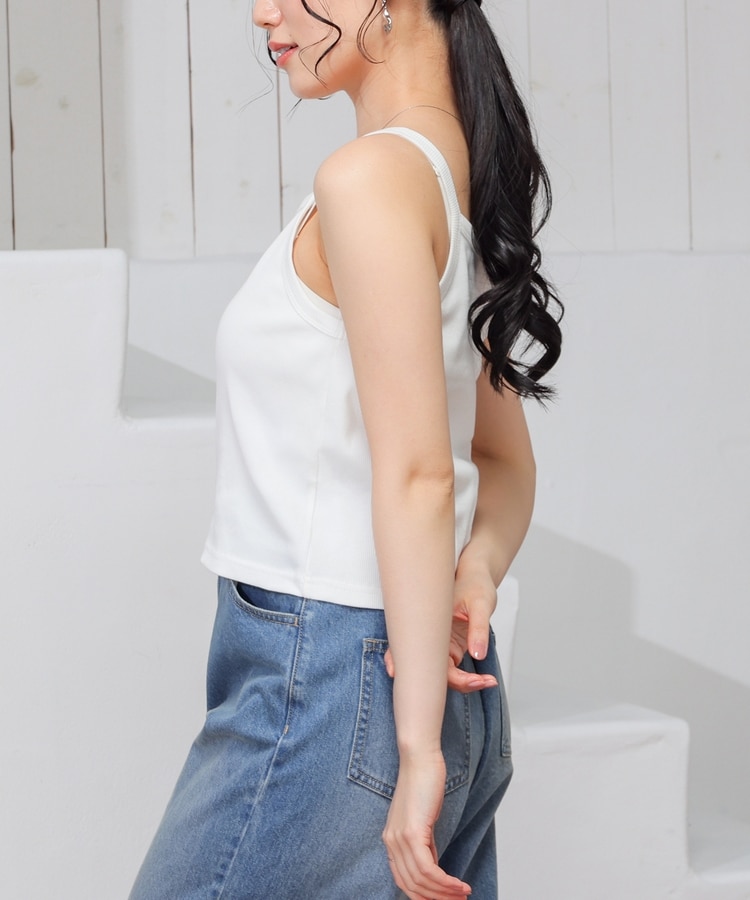 キャミソールもヘルシーに着こなせるショート丈。