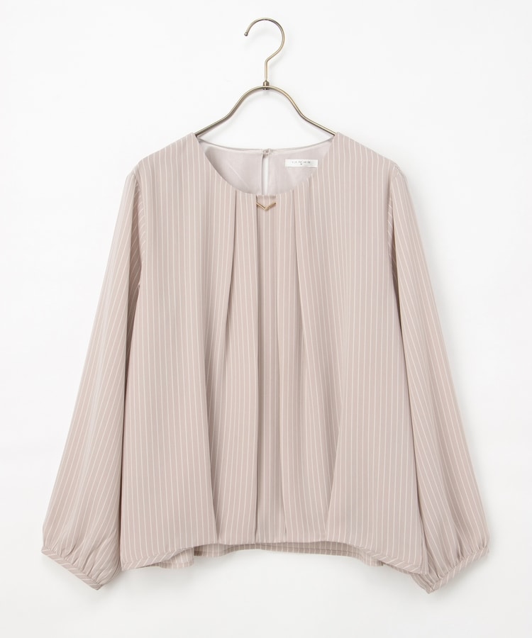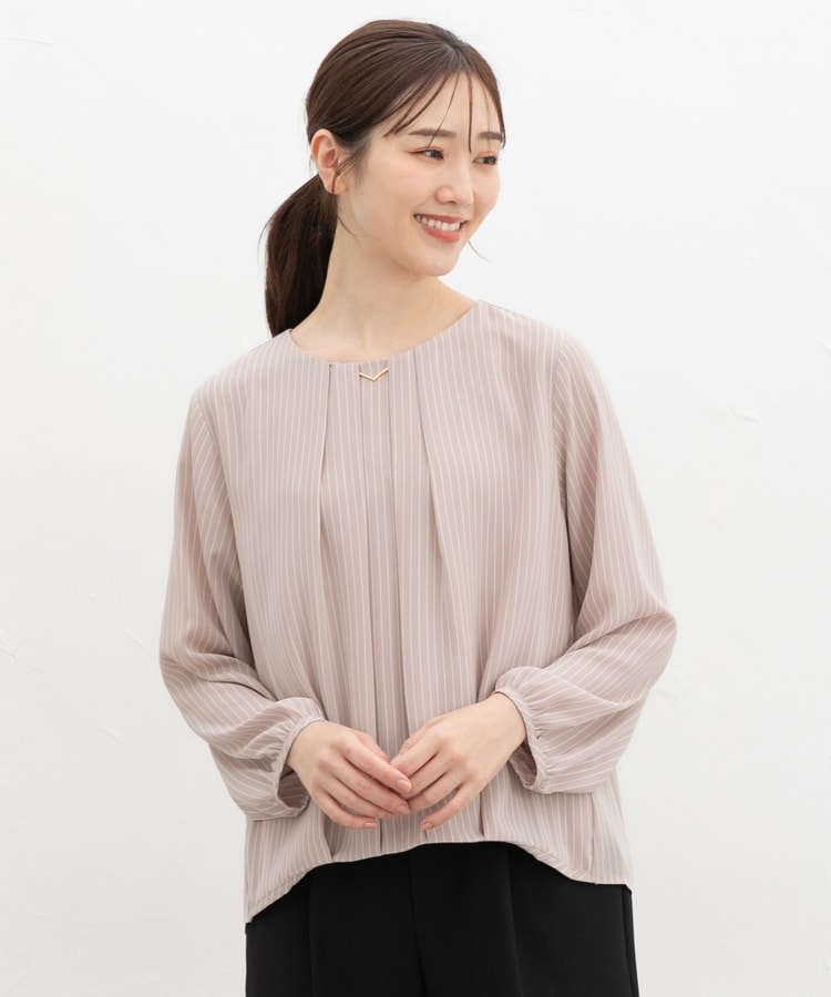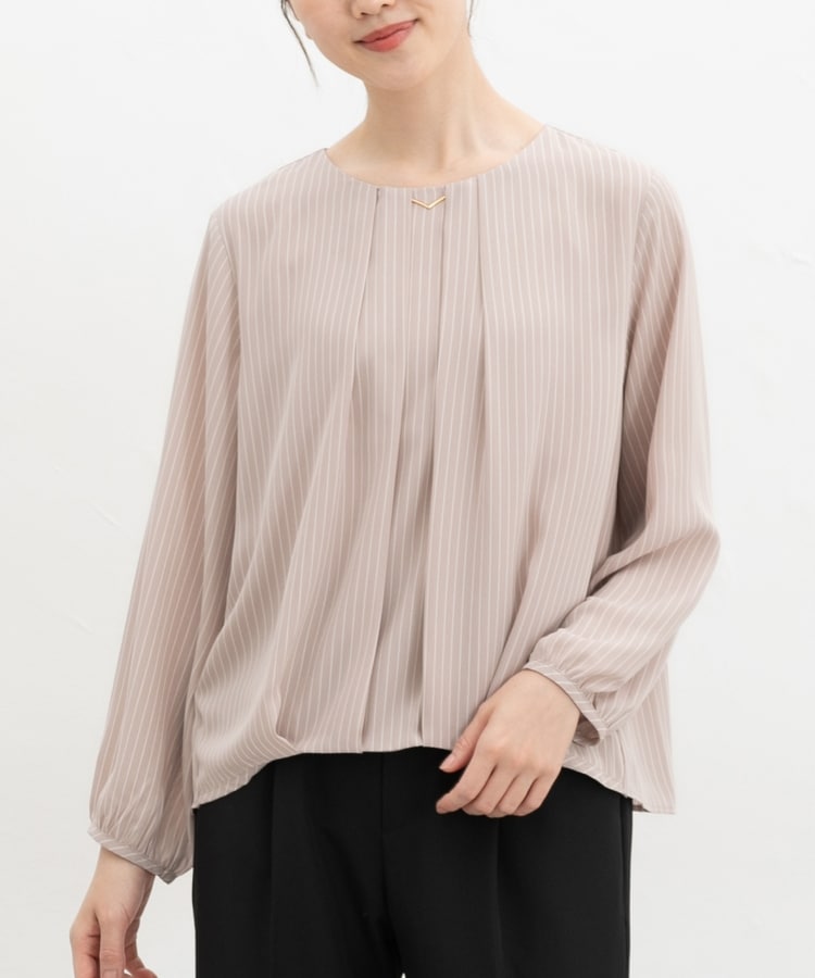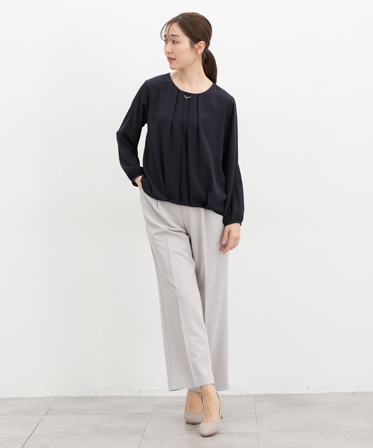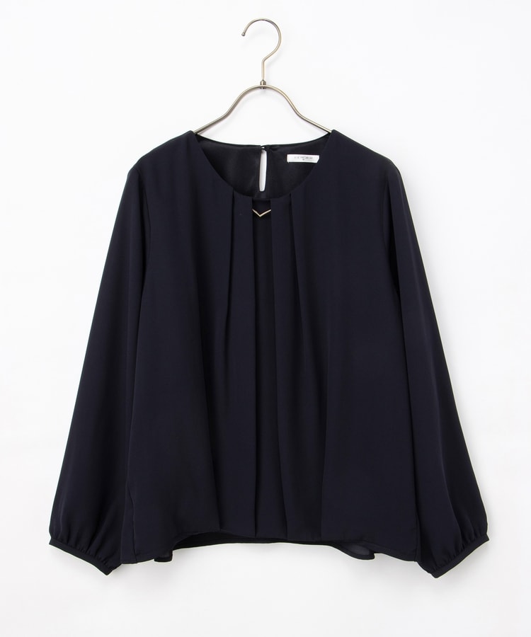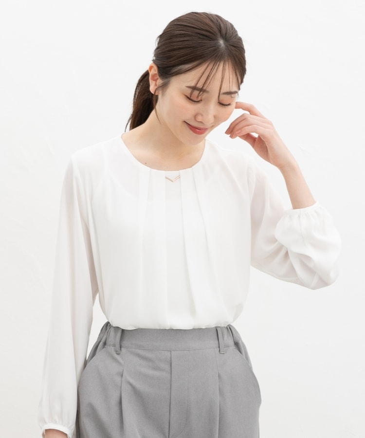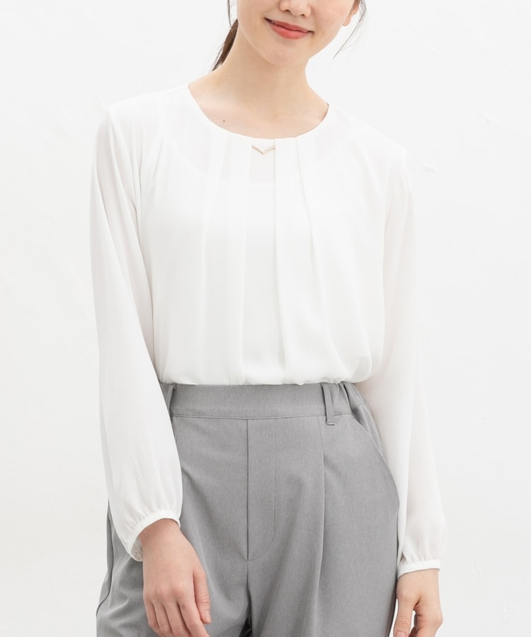 アクセ付裾タックブラウス