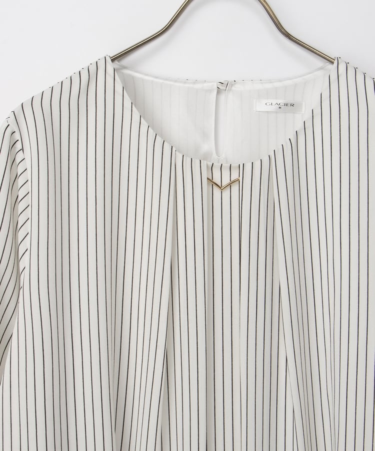 衿元にさりげない華やかさをプラスするメタルパーツのアクセサリーは、シーンやコーデに合わせて取り外し可能。