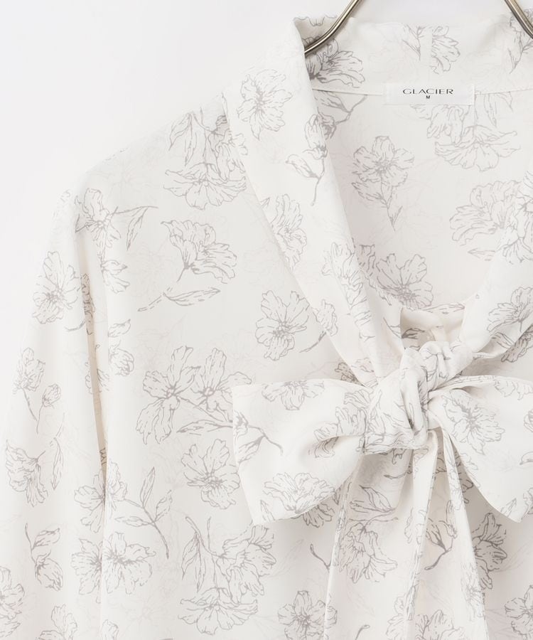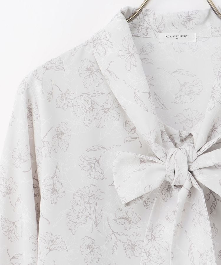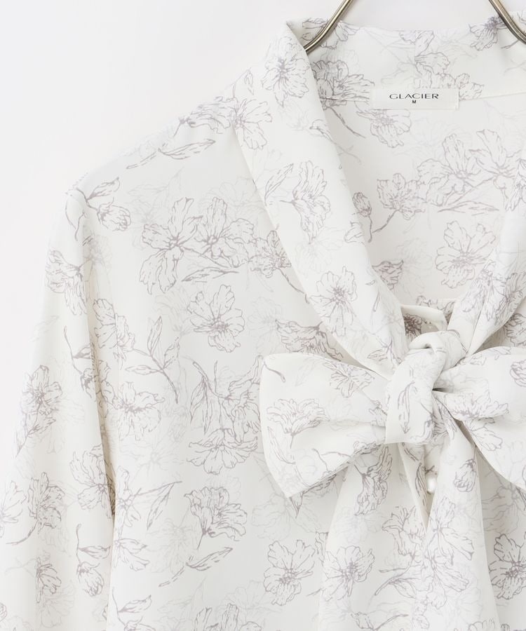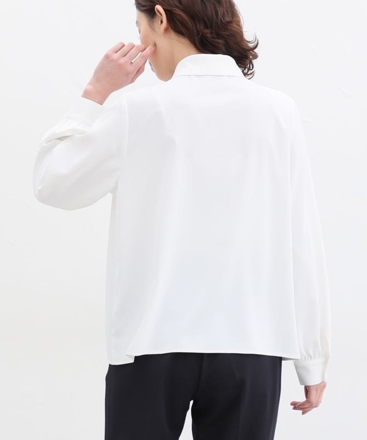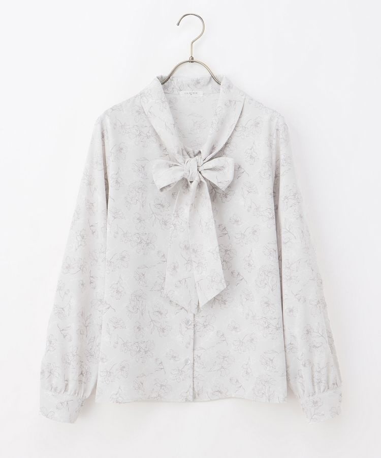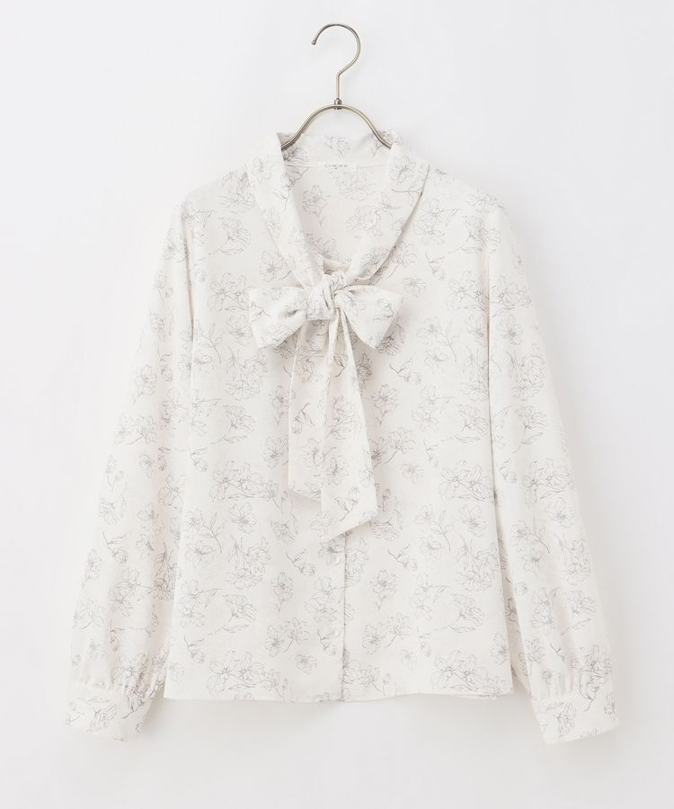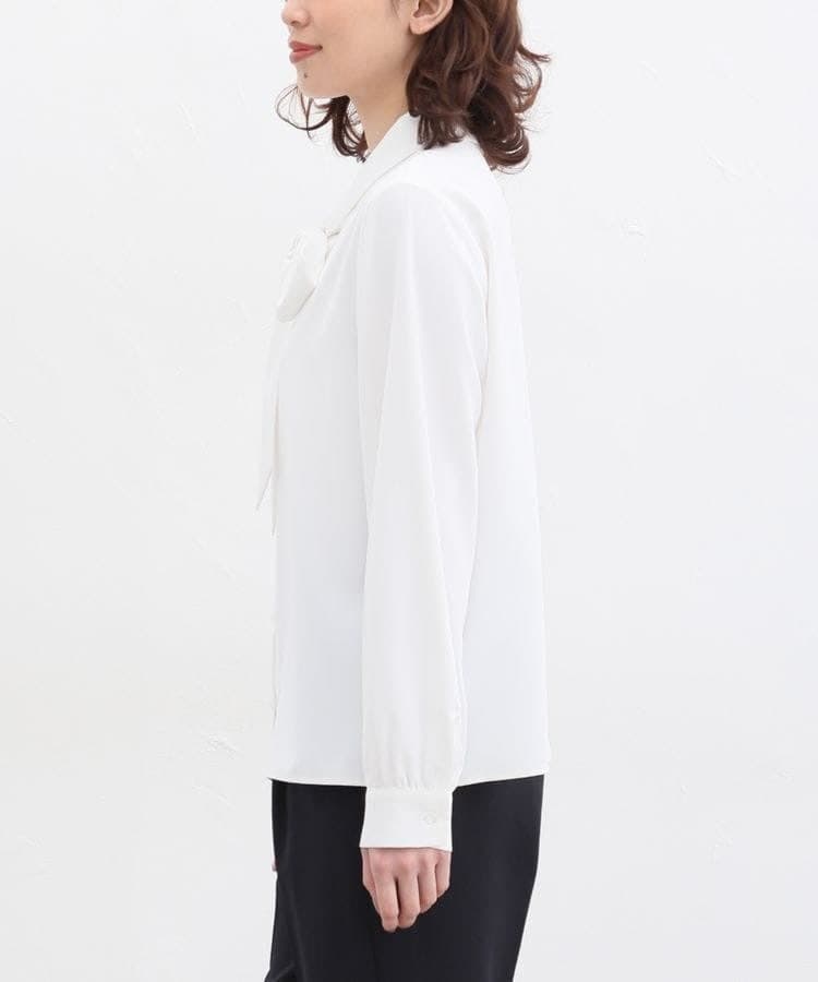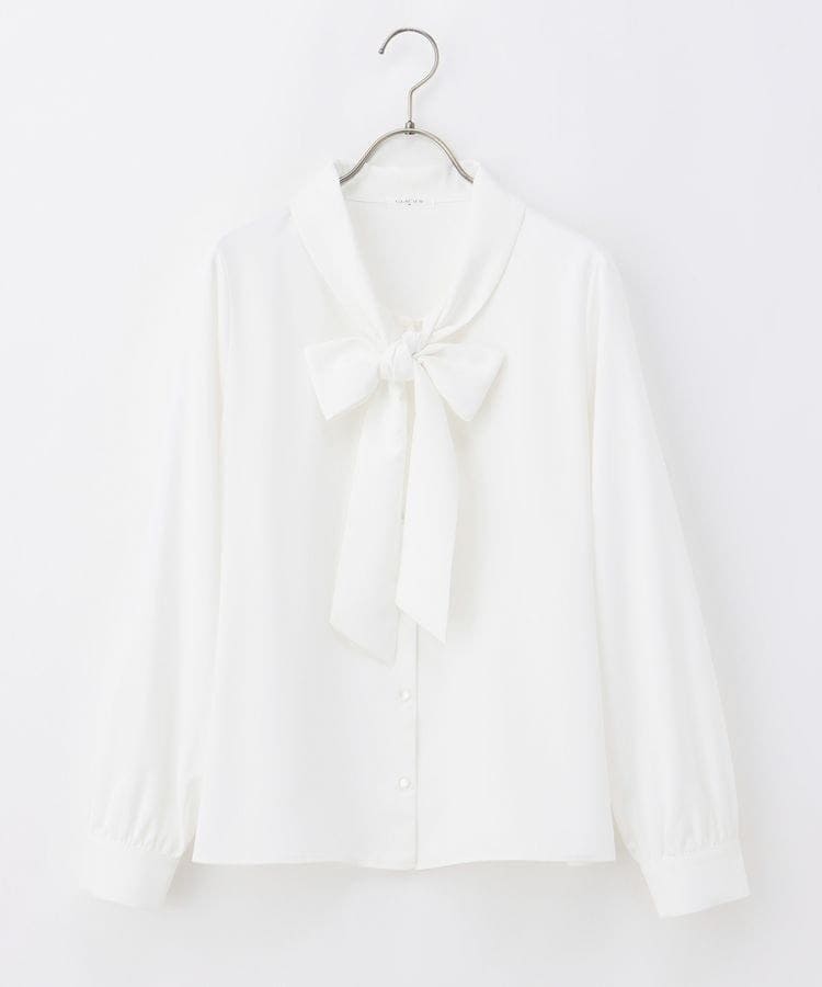 存在感があるボウタイリボンと、程よいボリューム袖がフェミニンなデザイン。