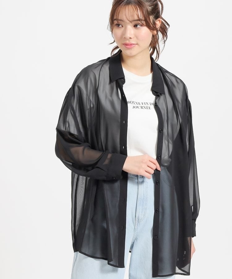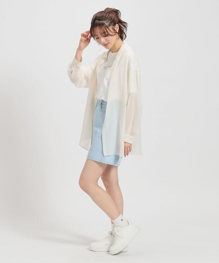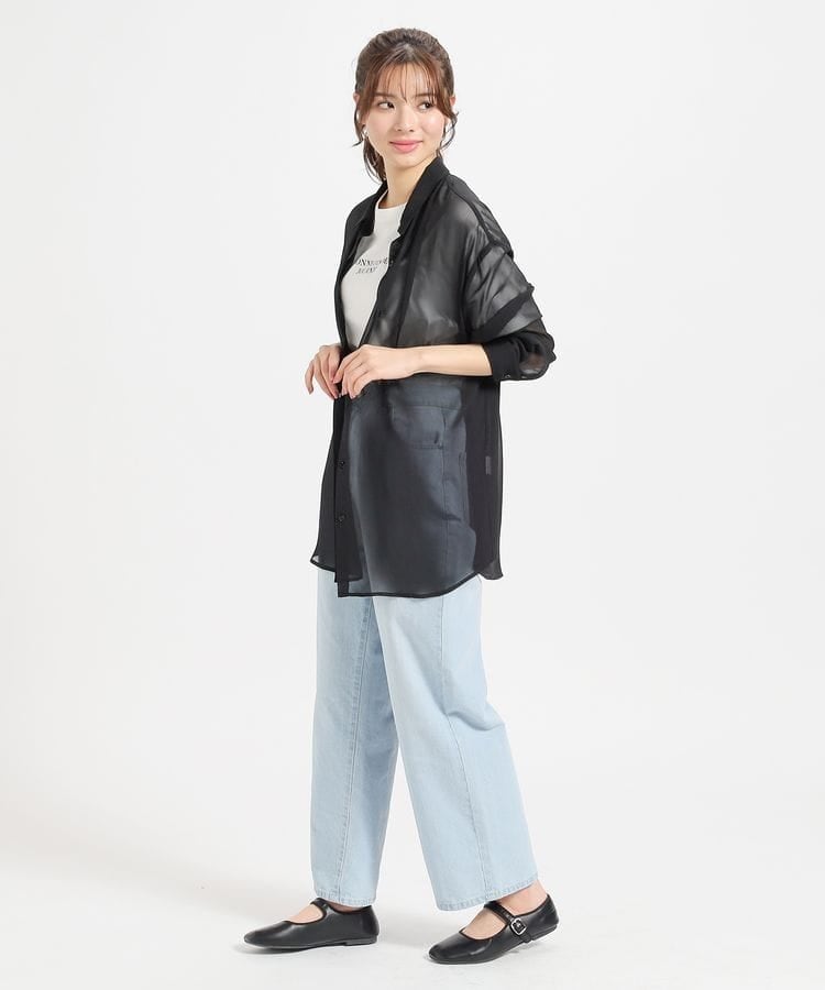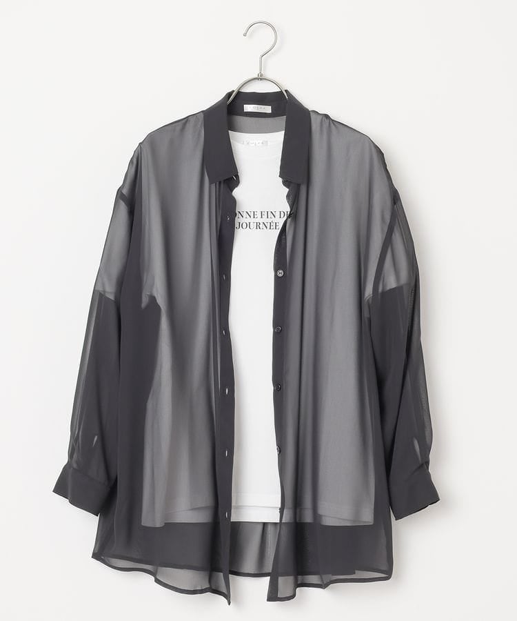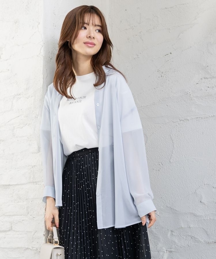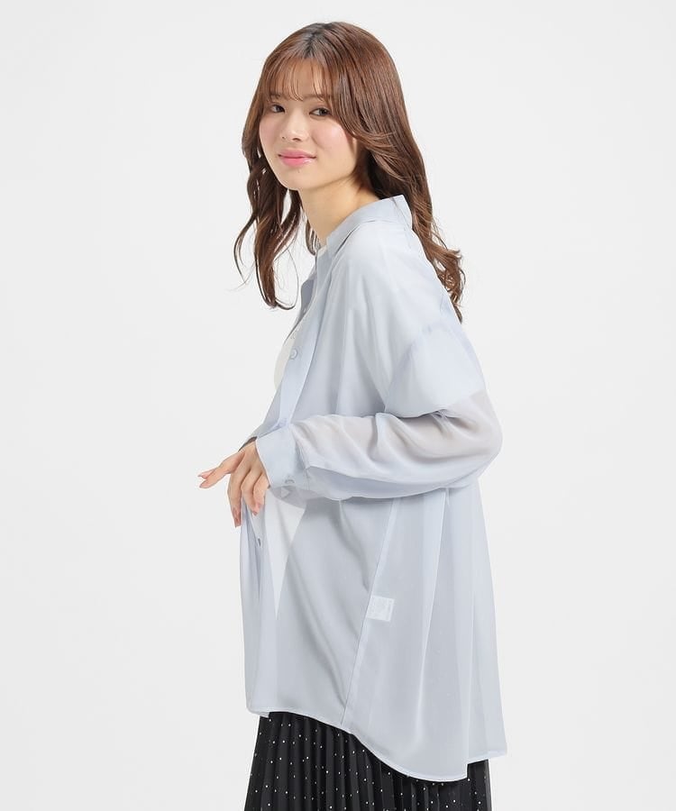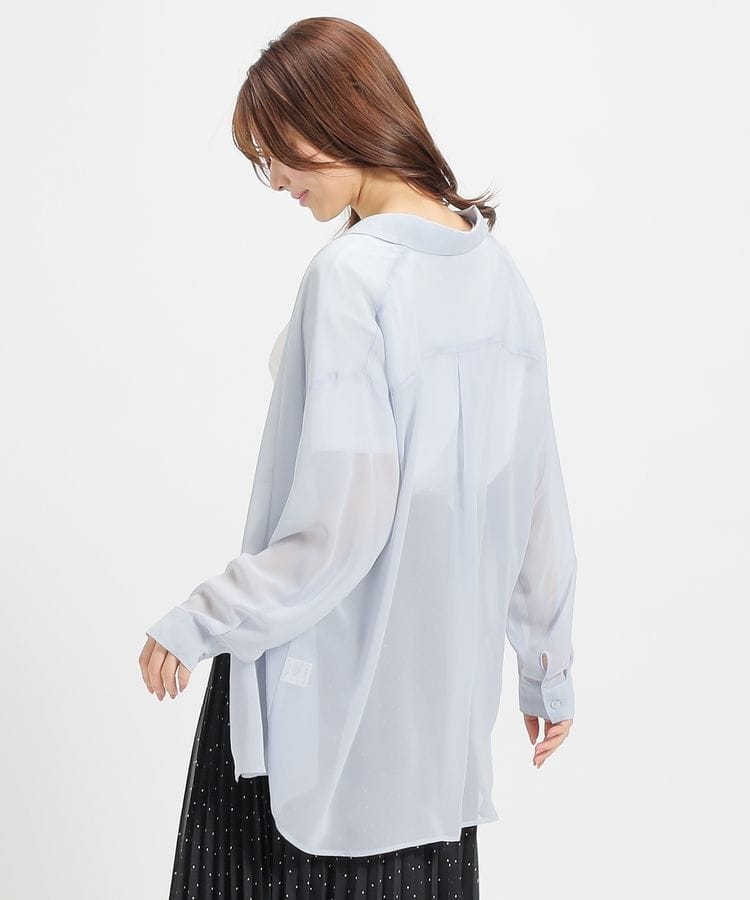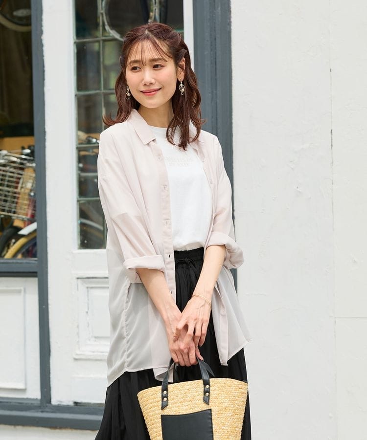 シアーシャツはバックにタックを入れたゆったり幅&ヒップがすっぽり隠れる丈感で、華奢見えも叶うシルエット。