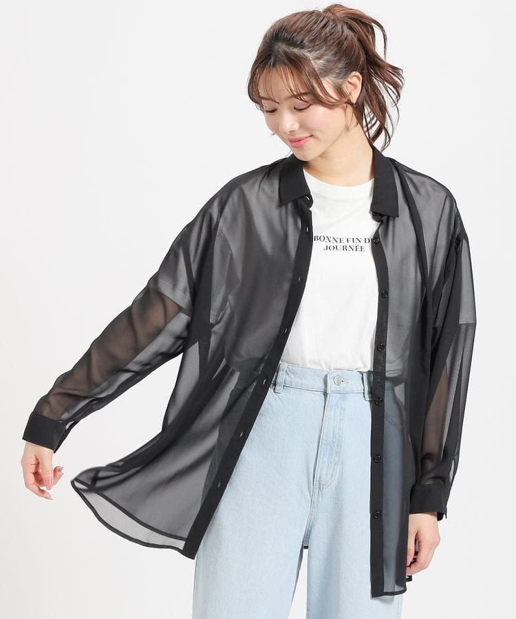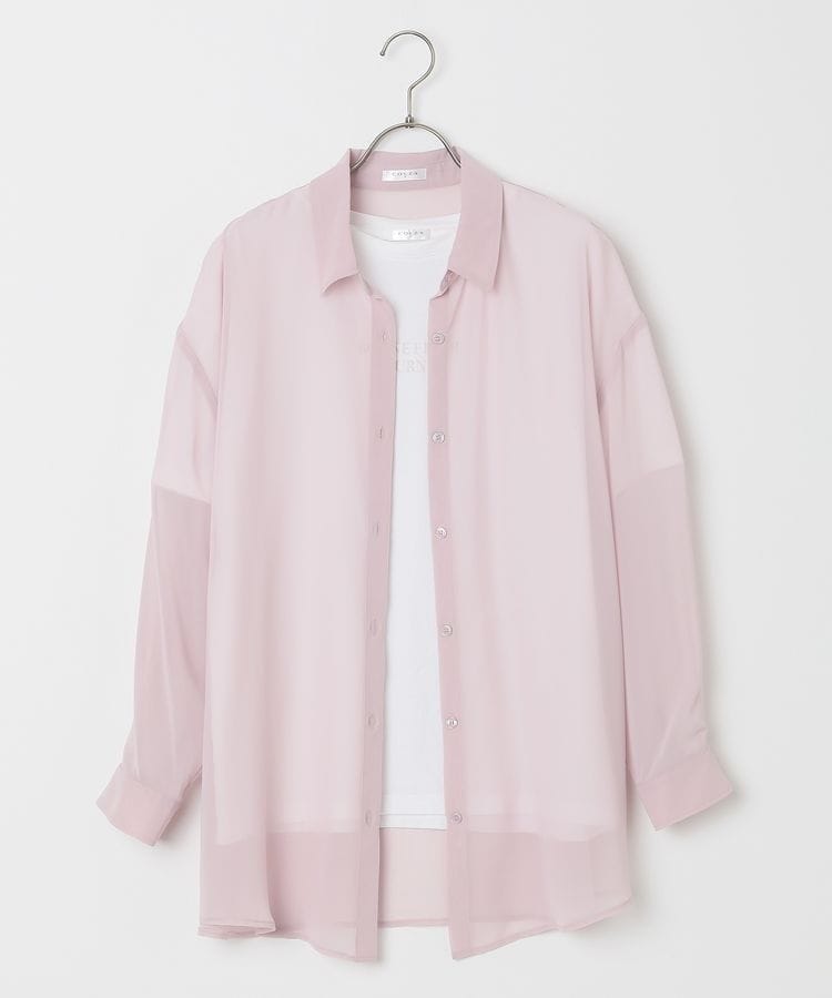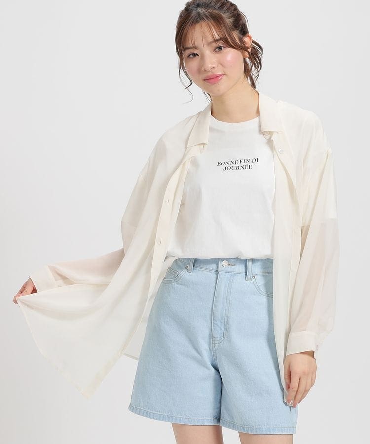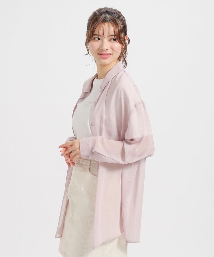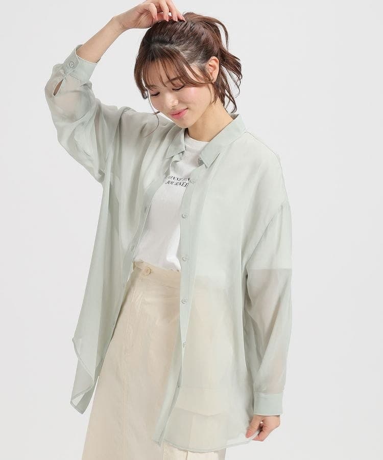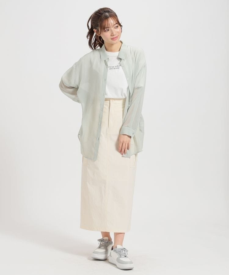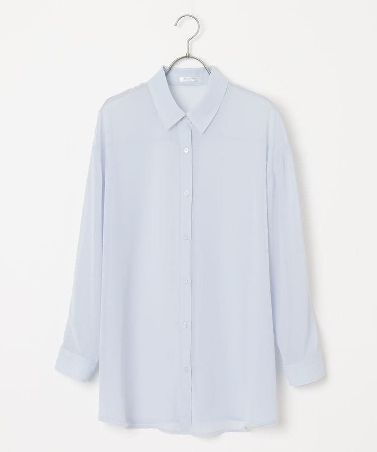 シアーシャツはバックにタックを入れたゆったり幅&ヒップがすっぽり隠れる丈感で、華奢見えも叶うシルエット。