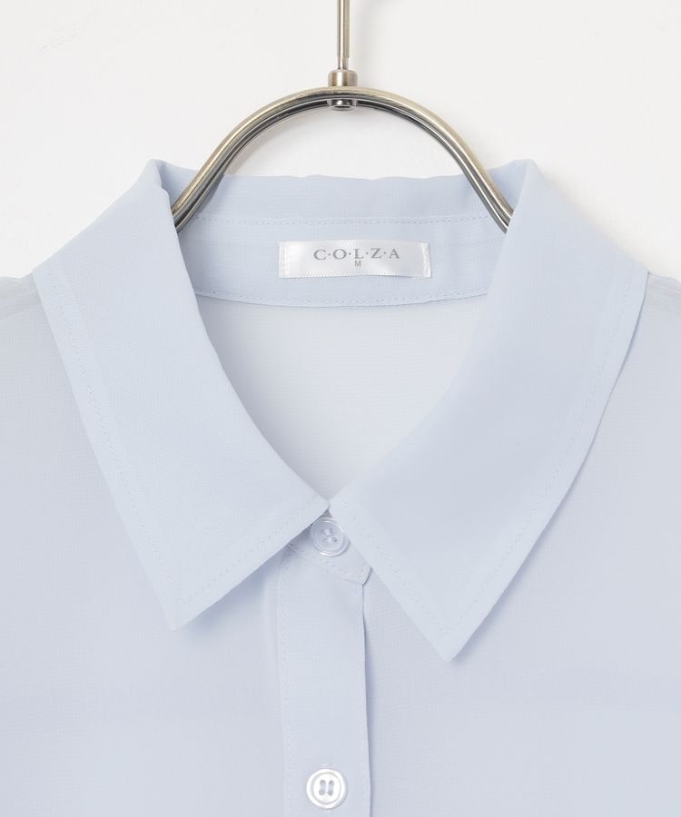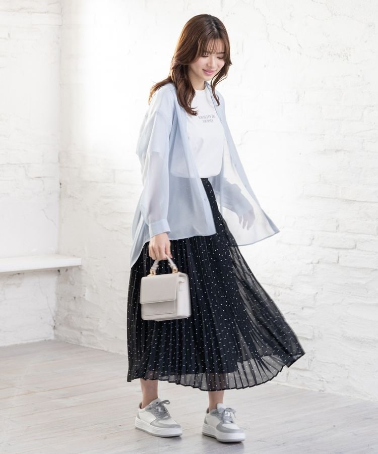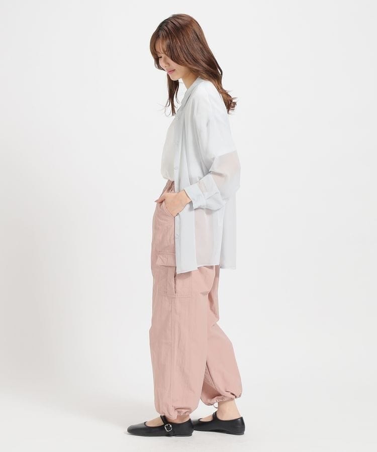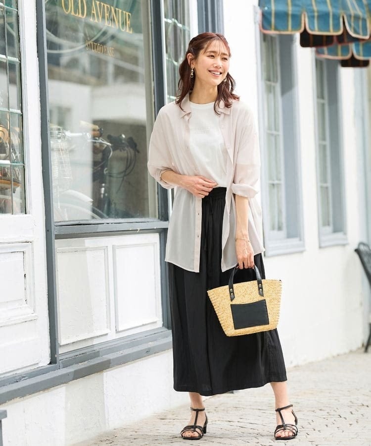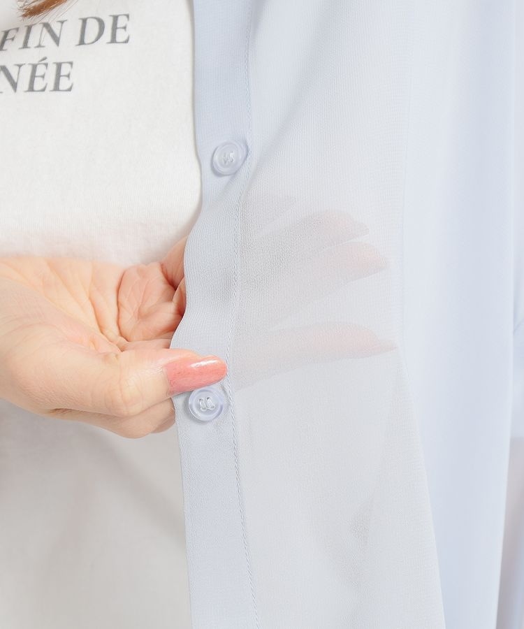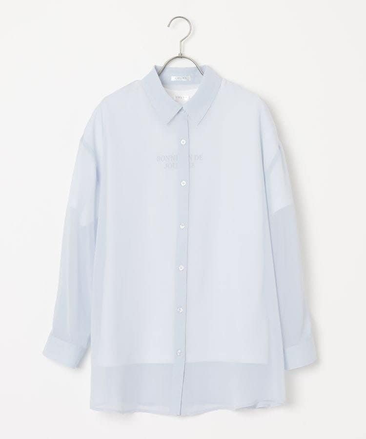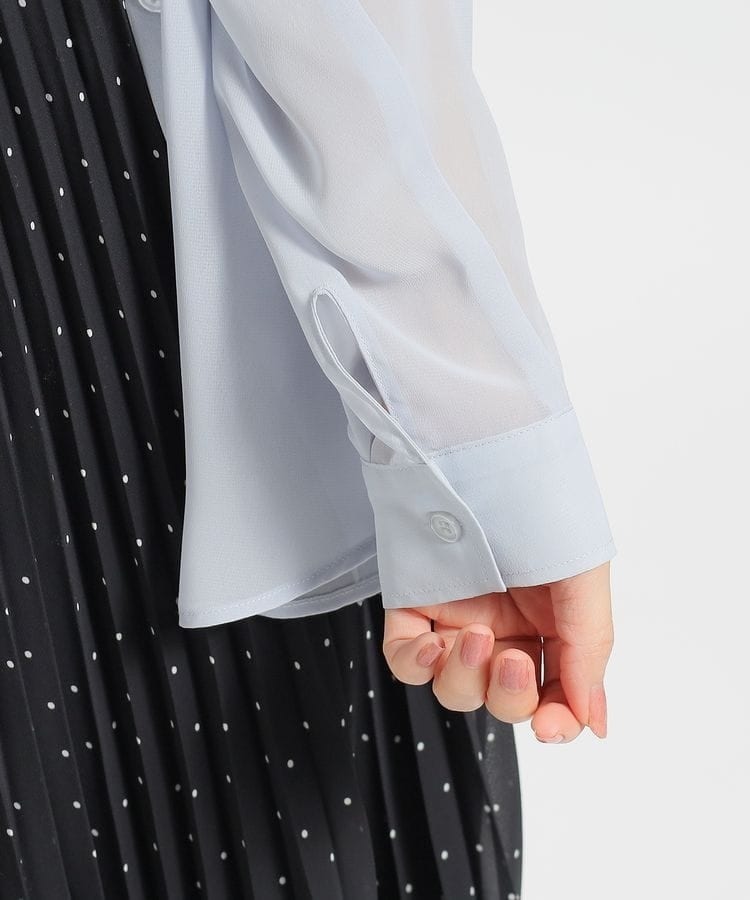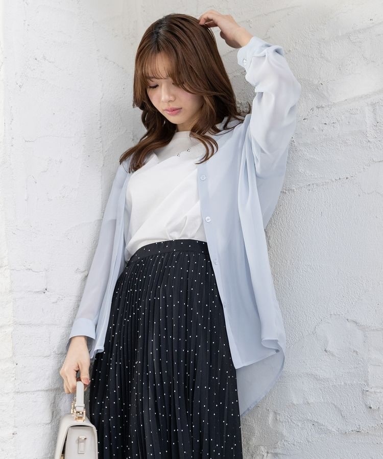 シアーシャツはバックにタックを入れたゆったり幅&ヒップがすっぽり隠れる丈感で、華奢見えも叶うシルエット。