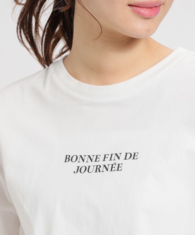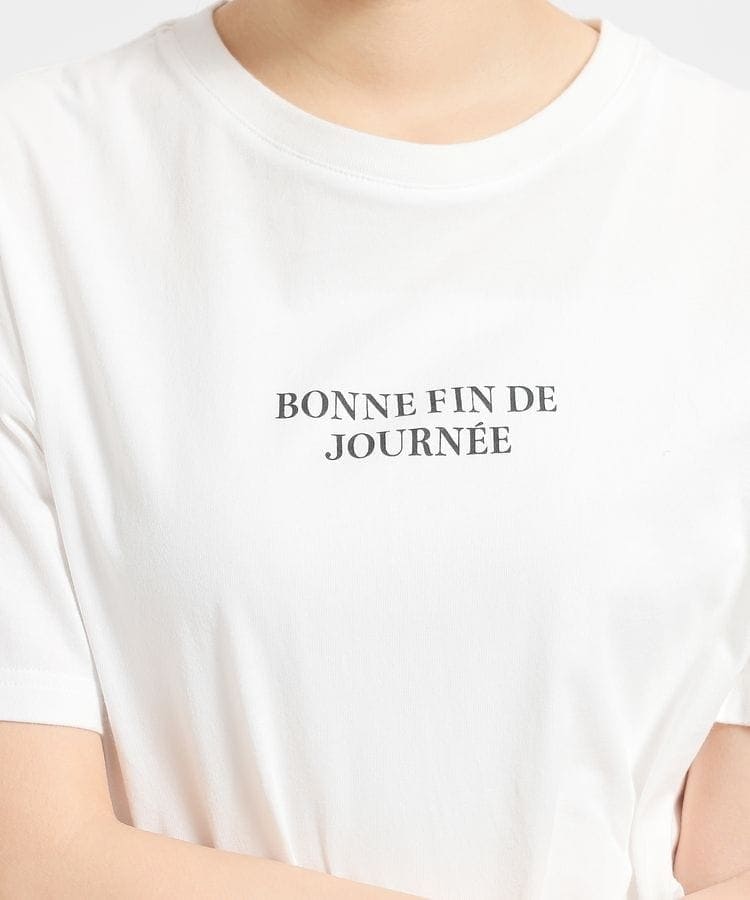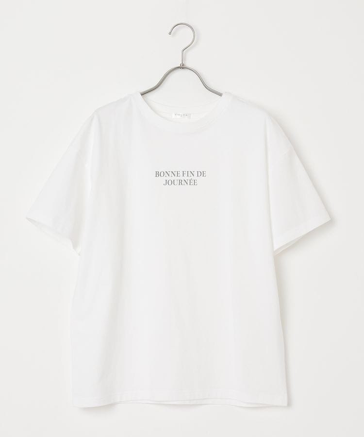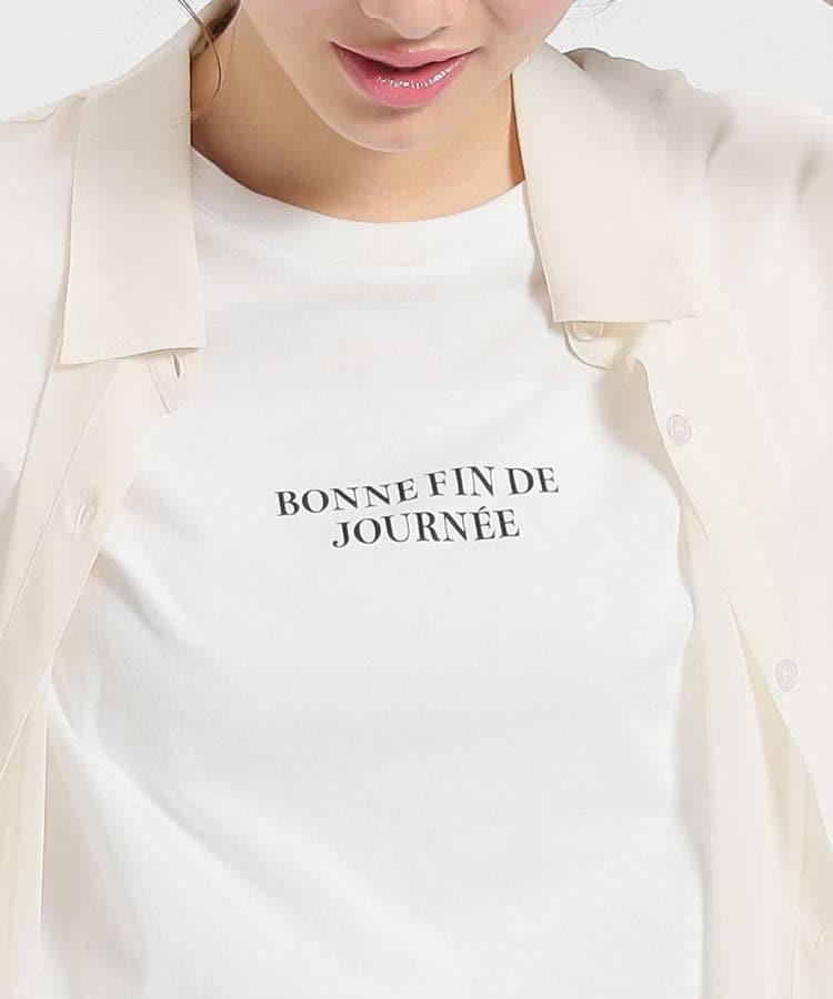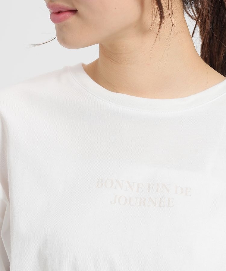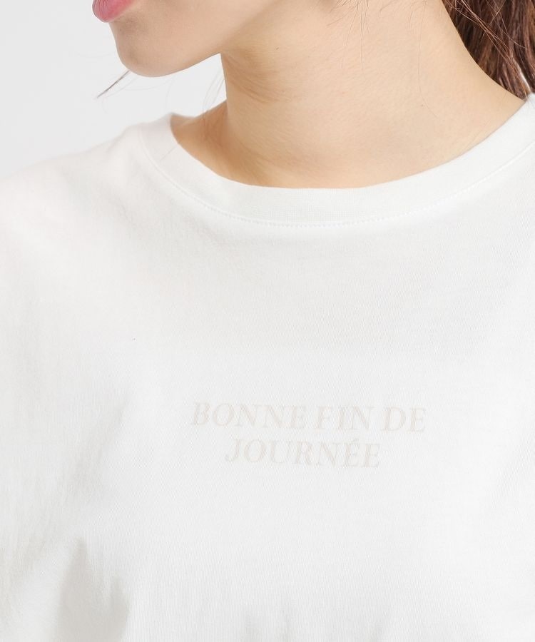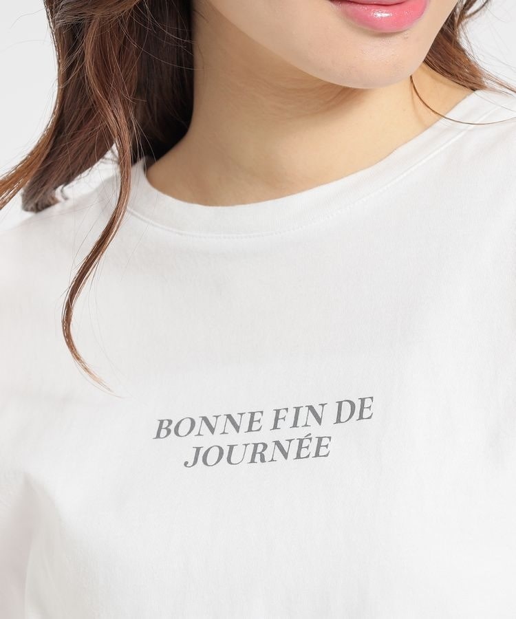 Tシャツもゆったりめで、おしゃれフォントの控えめロゴがこなれ感を演出。