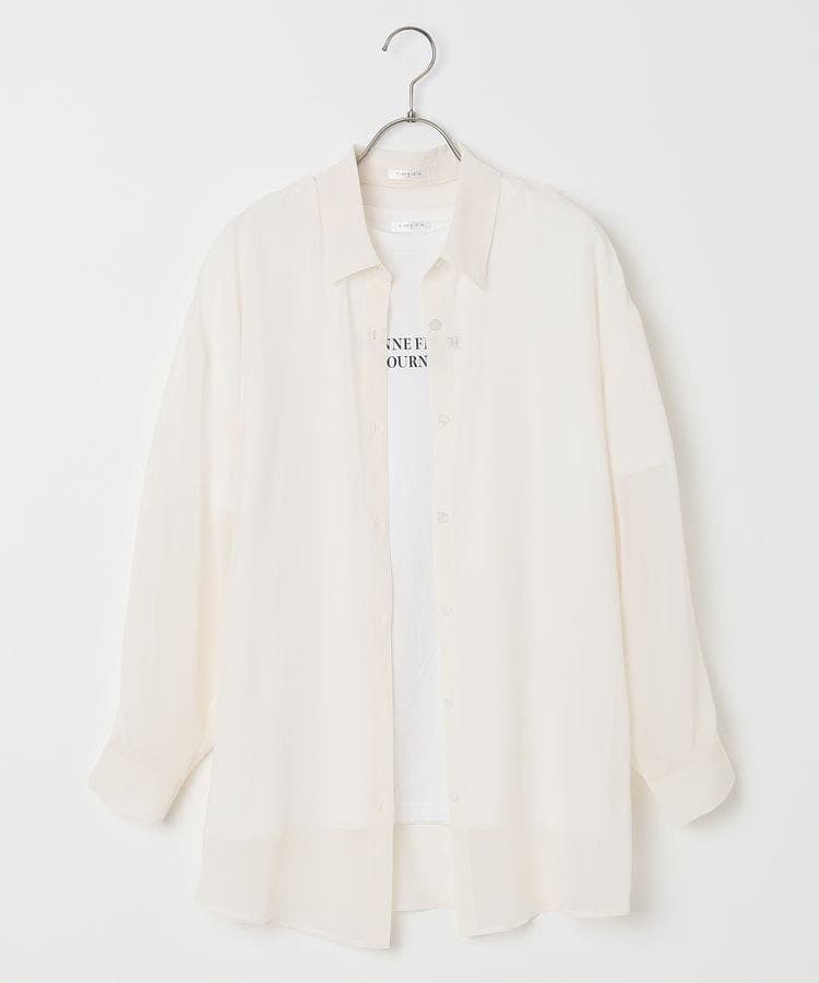 簡単にレイヤードコーデが完成する、シアーシャツ×Tシャツのセット。