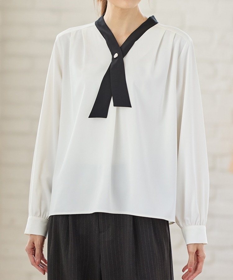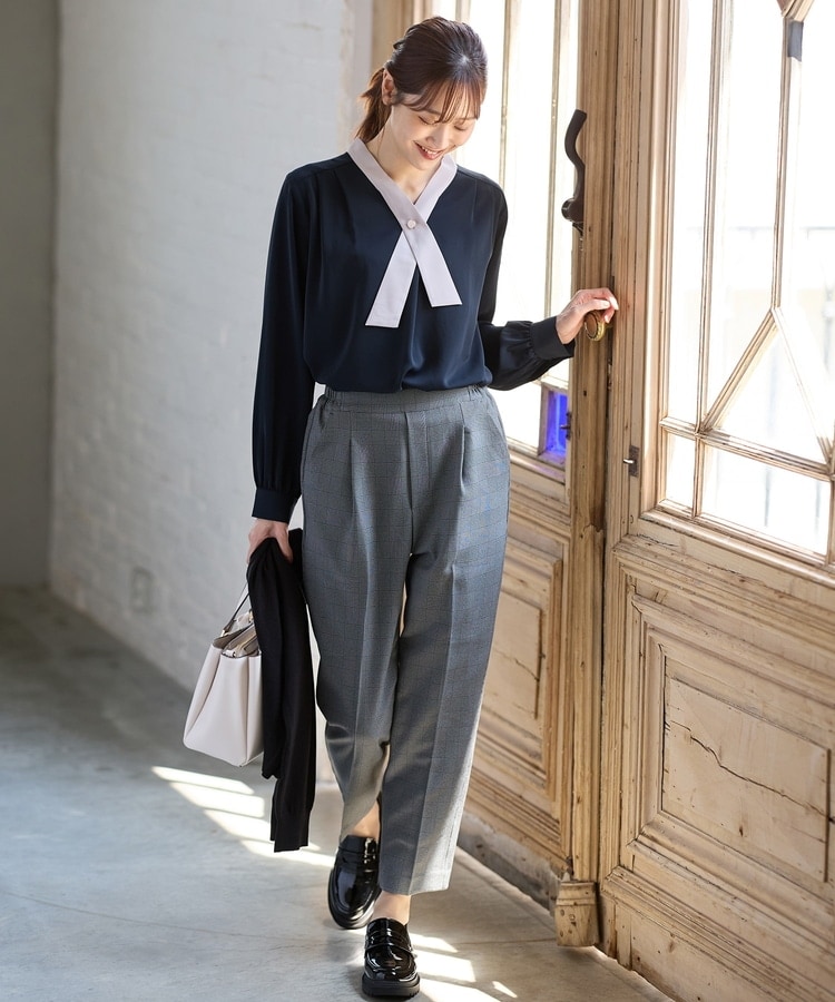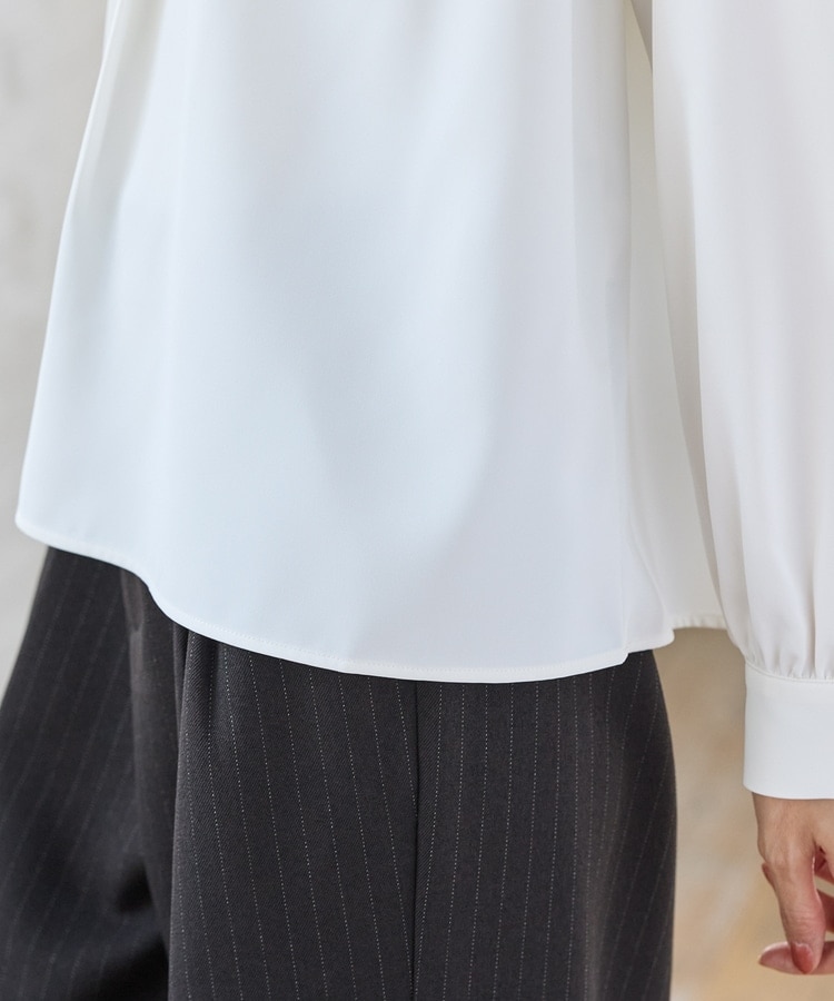 ジャケットにも合うサイズ感で、きれいめパンツと合わせたお仕事スタイルからジャンスカのインナーにしたフェミニンスタイルまで幅広く活躍。