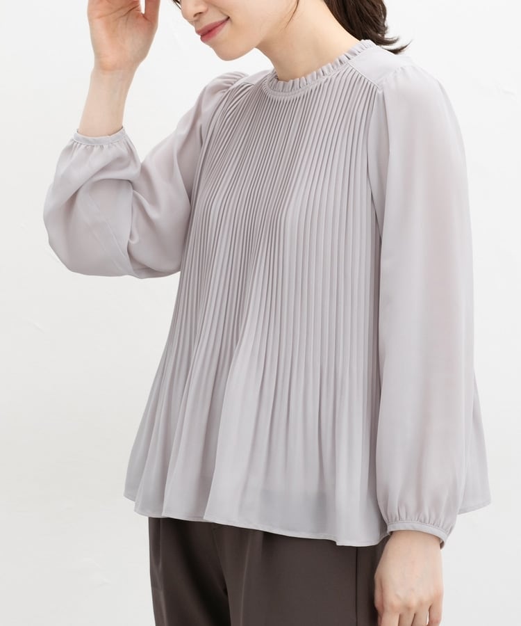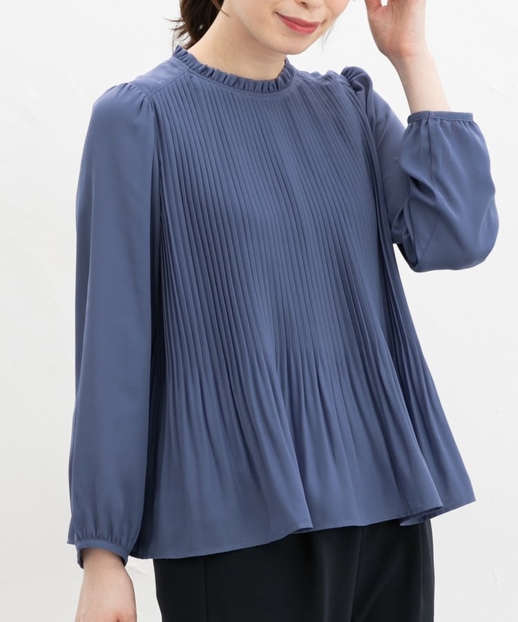 繊細なプリーツをたっぷりと使用した、1枚でスタイリングがぐっと華やかに着映えるデザイン。