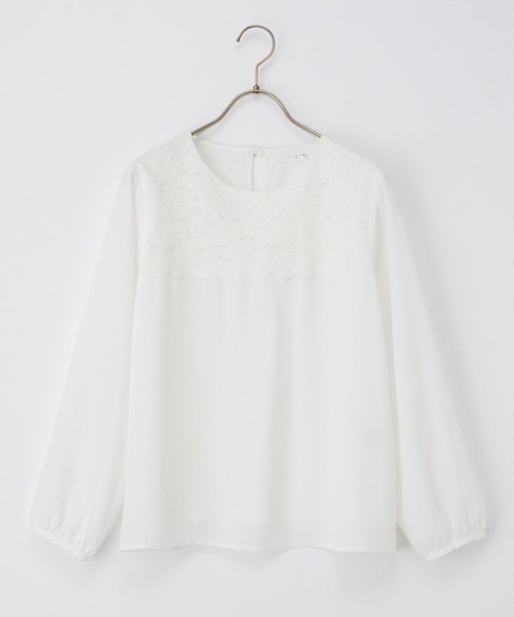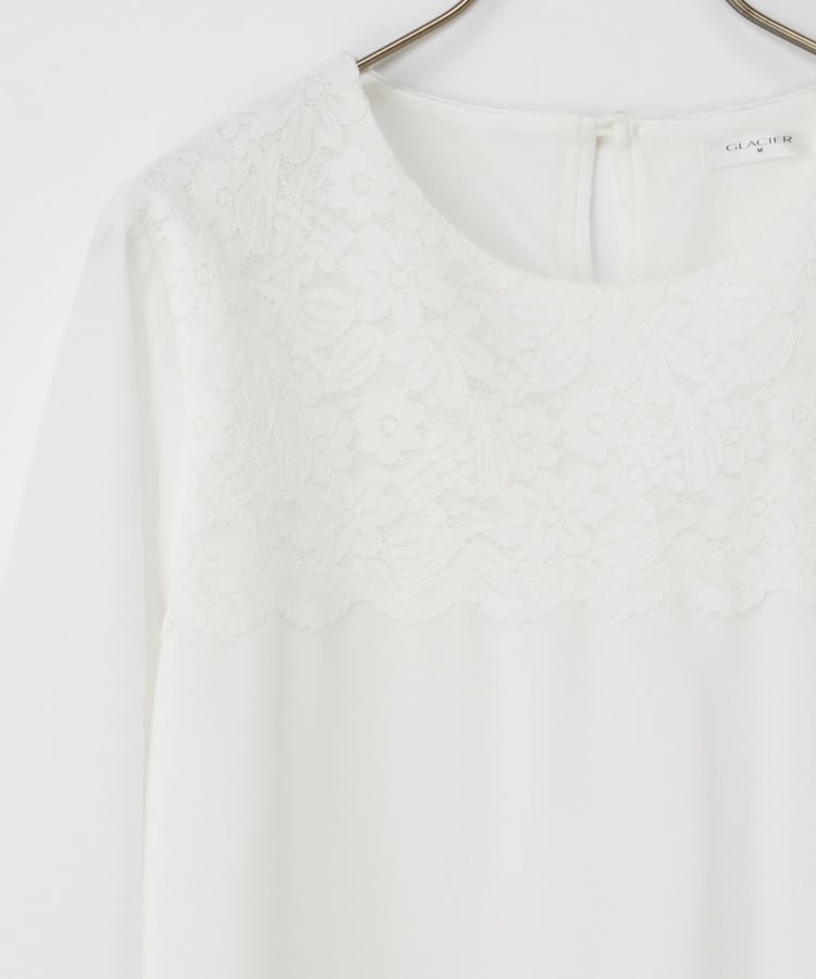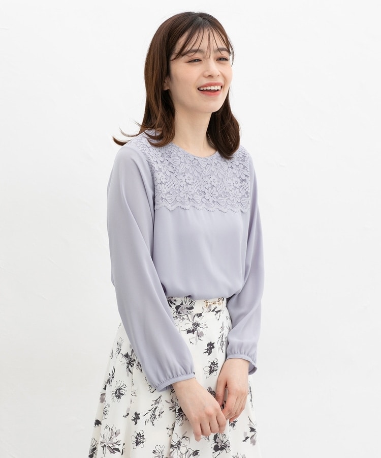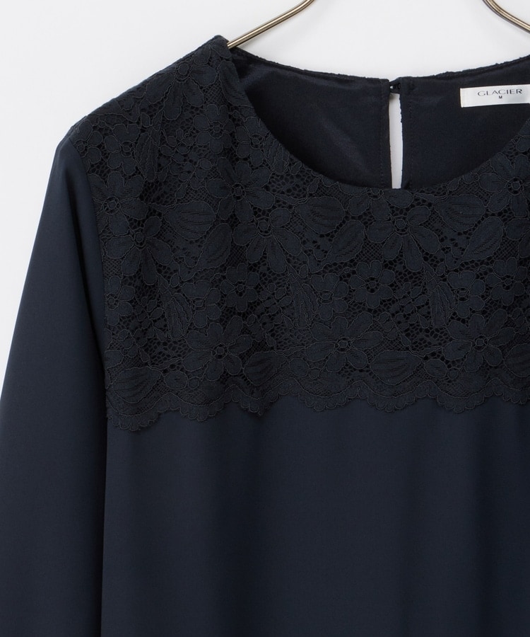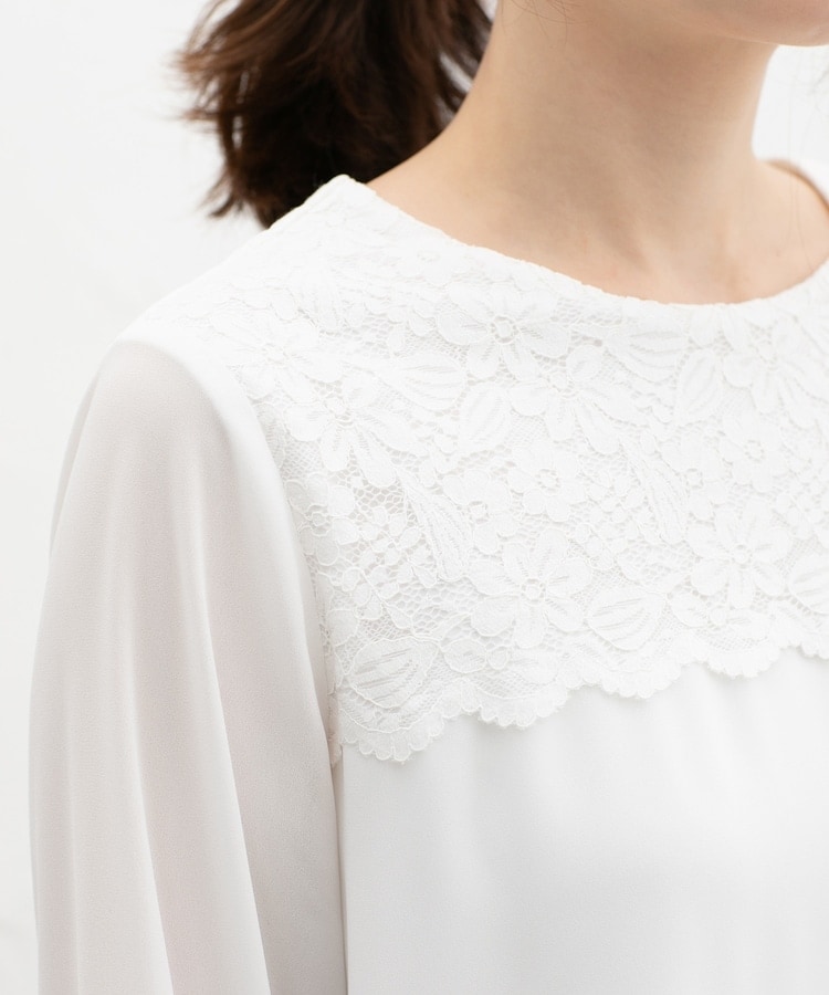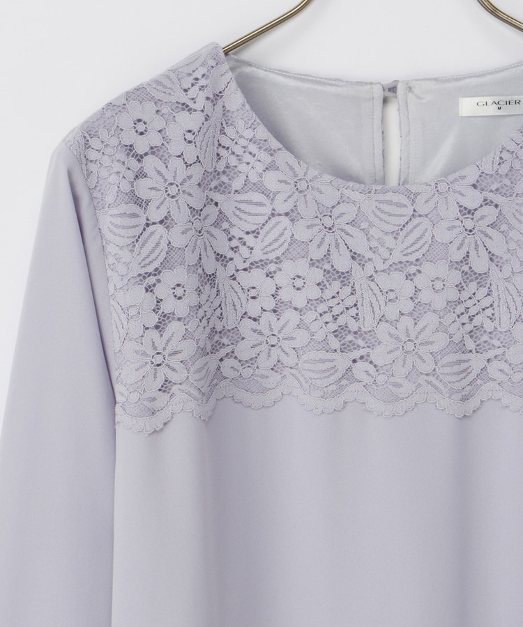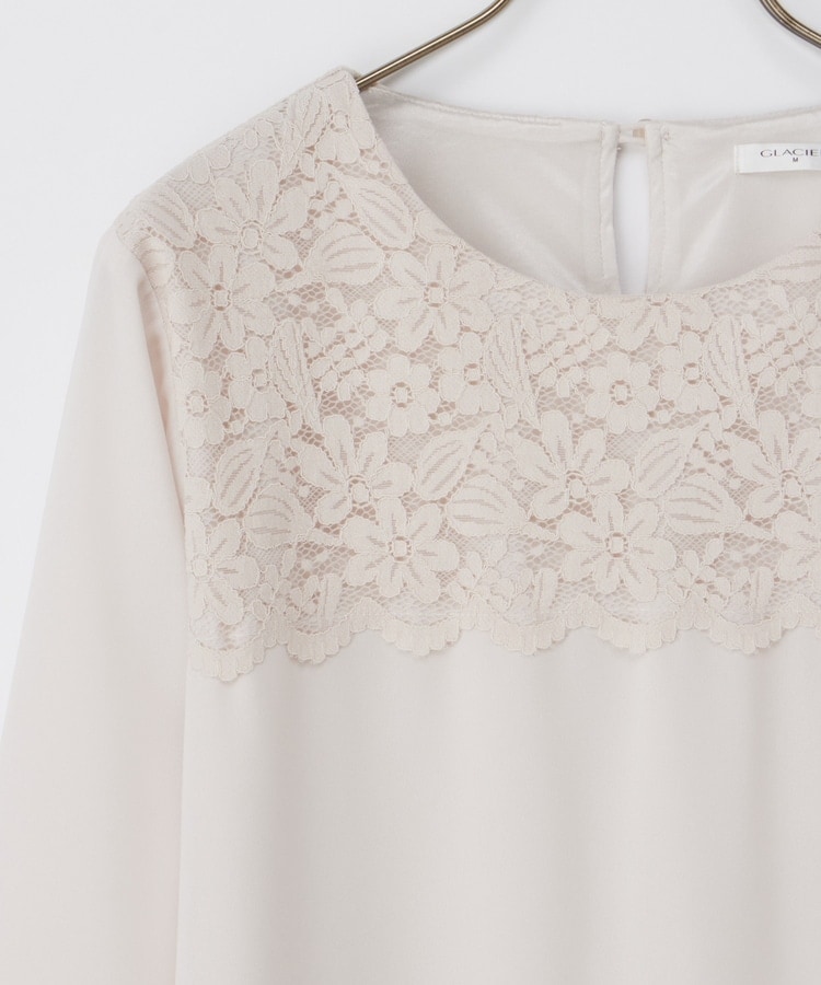 胸元をレースで切り替えた、1枚でスタイリングがぐっと華やかに着映えるデザイン。