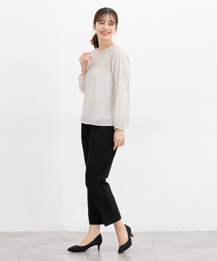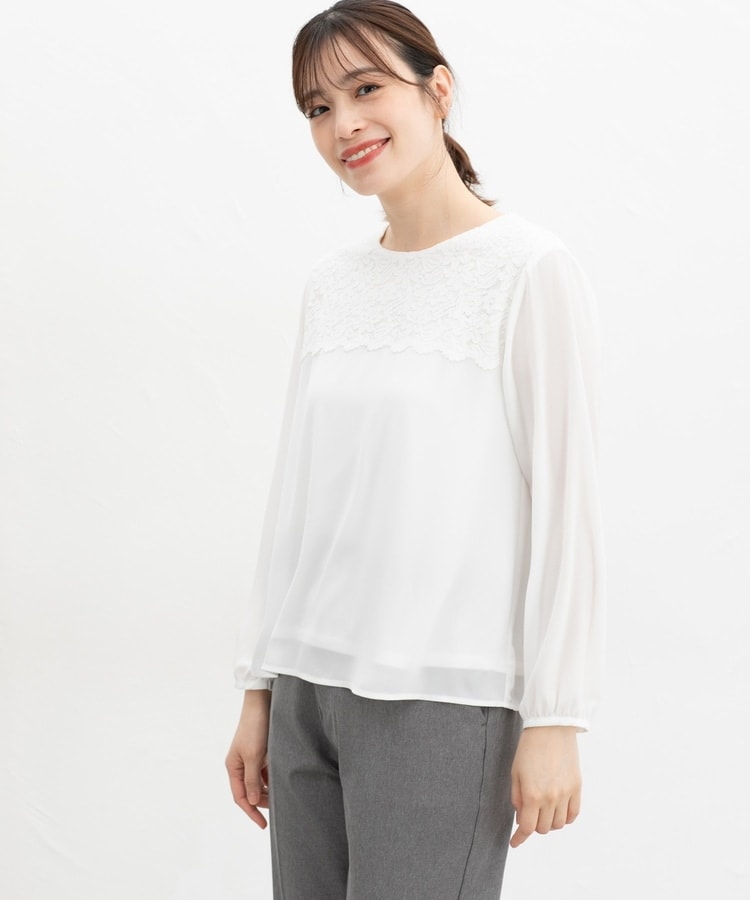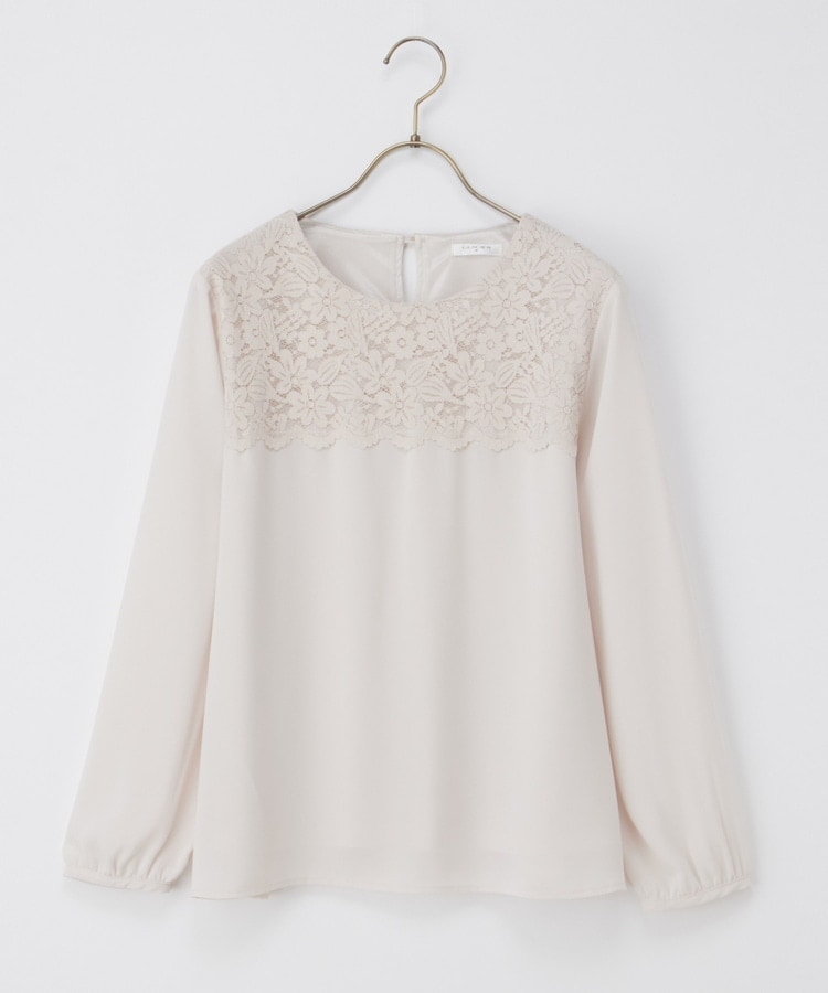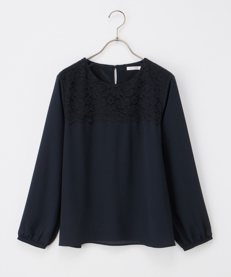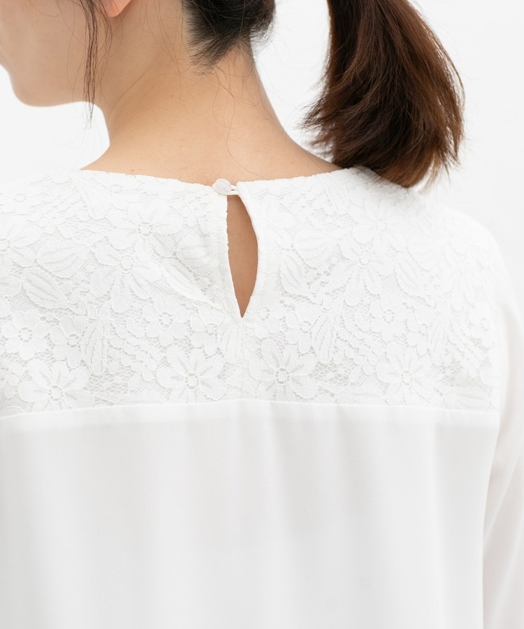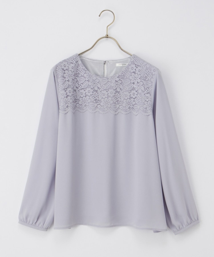 胸元をレースで切り替えた、1枚でスタイリングがぐっと華やかに着映えるデザイン。