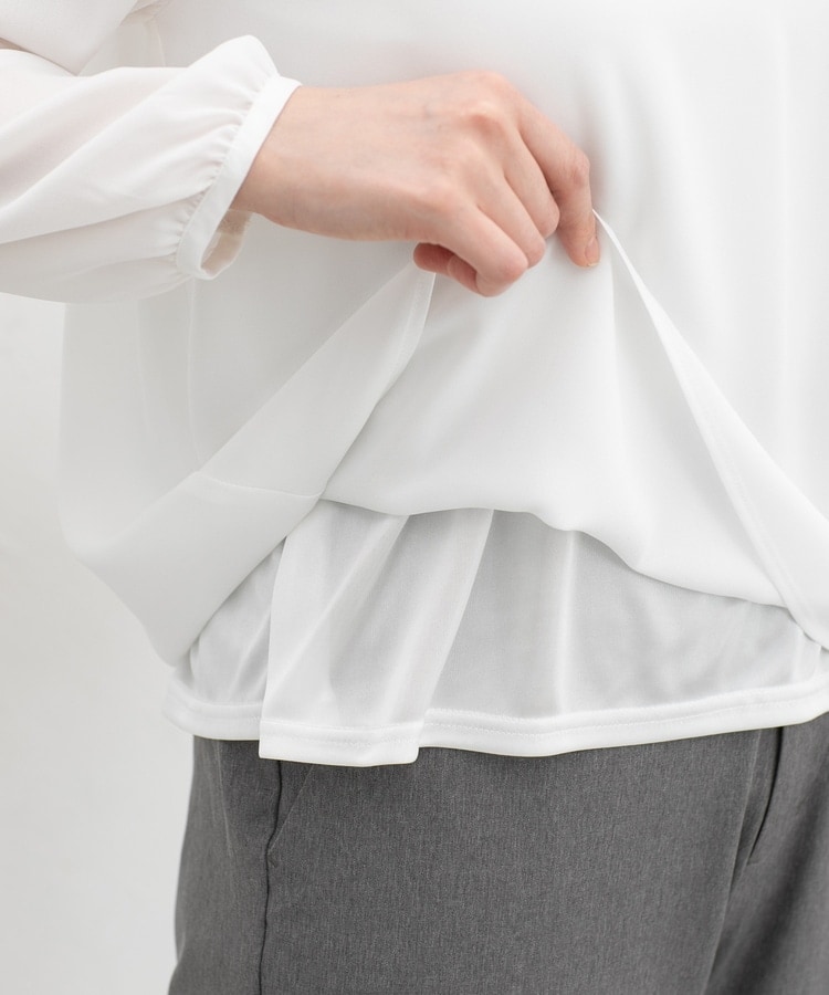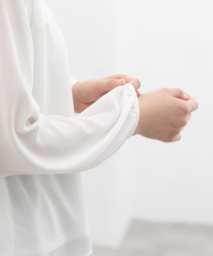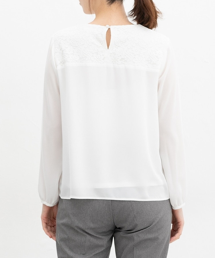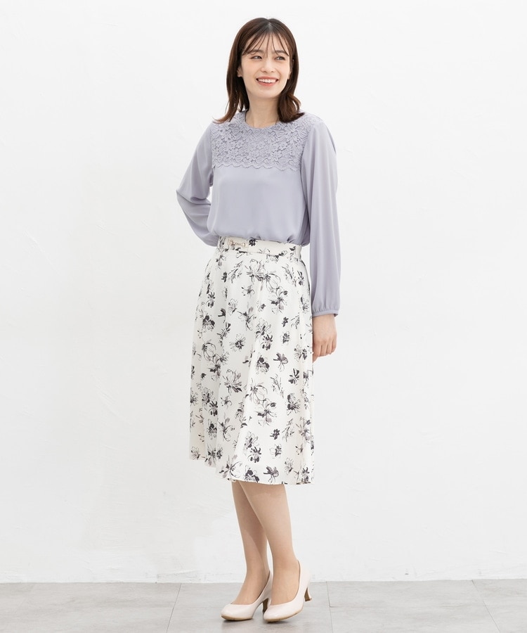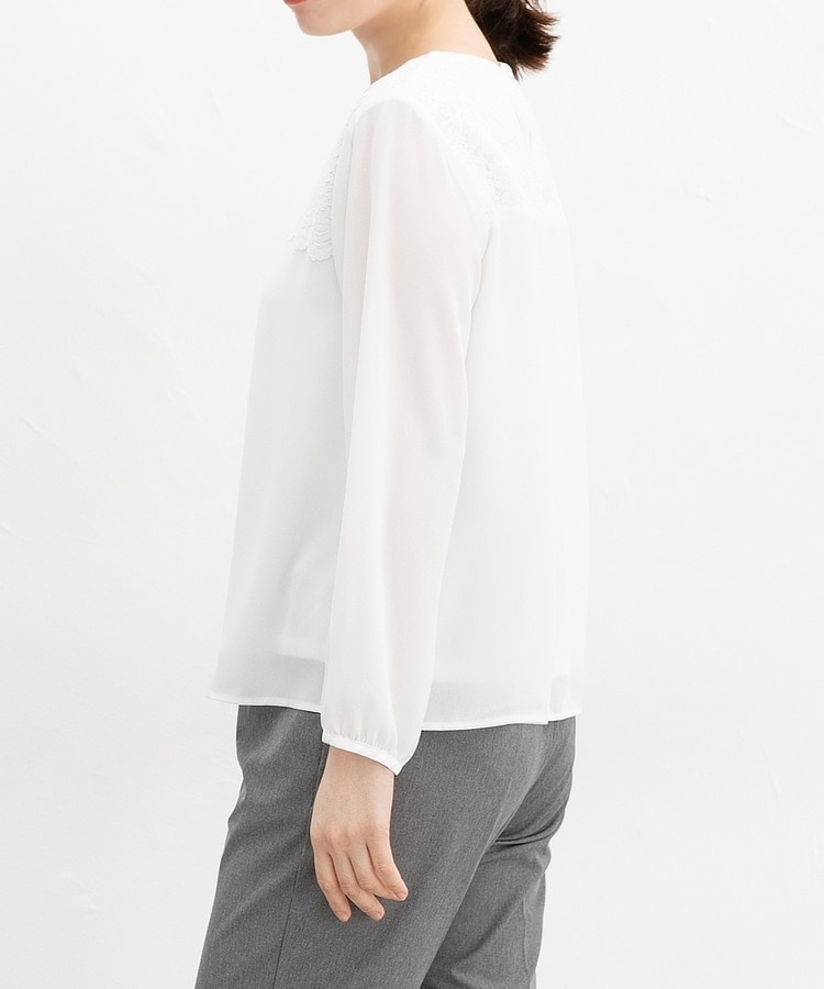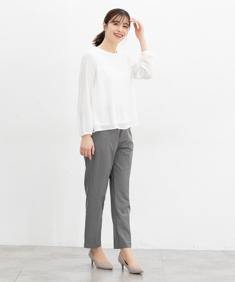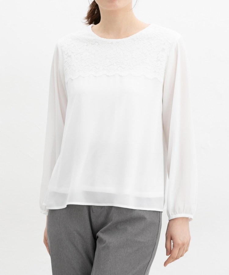 胸元をレースで切り替えた、1枚でスタイリングがぐっと華やかに着映えるデザイン。