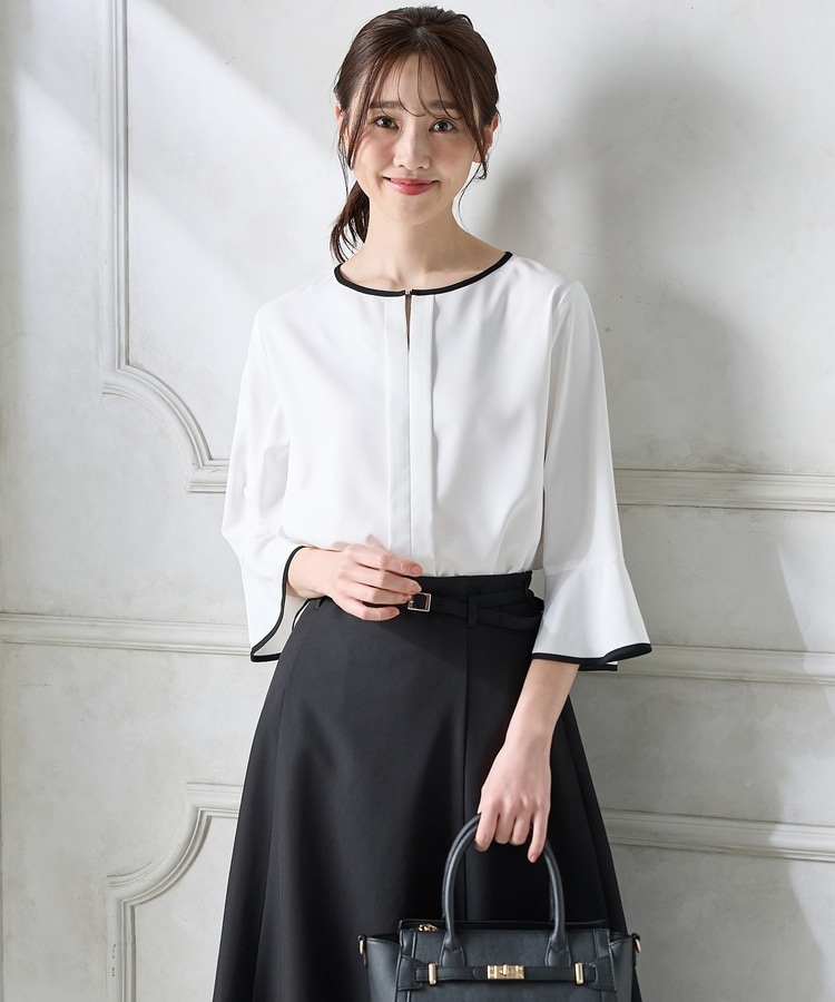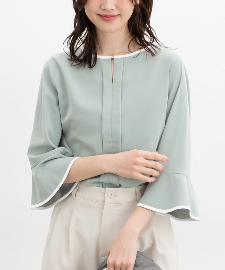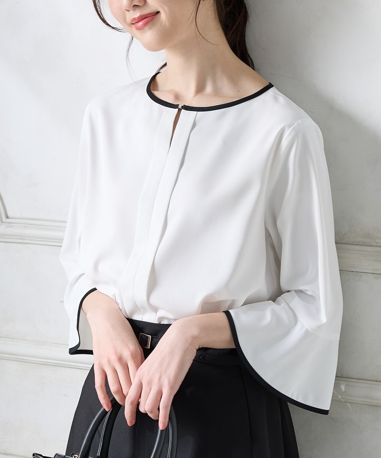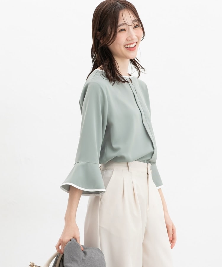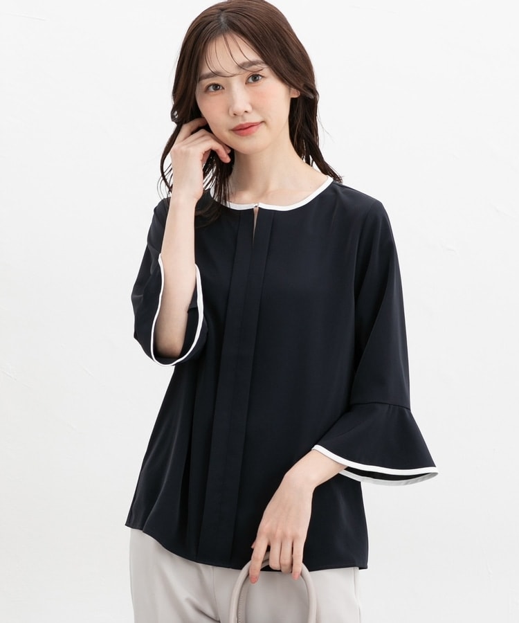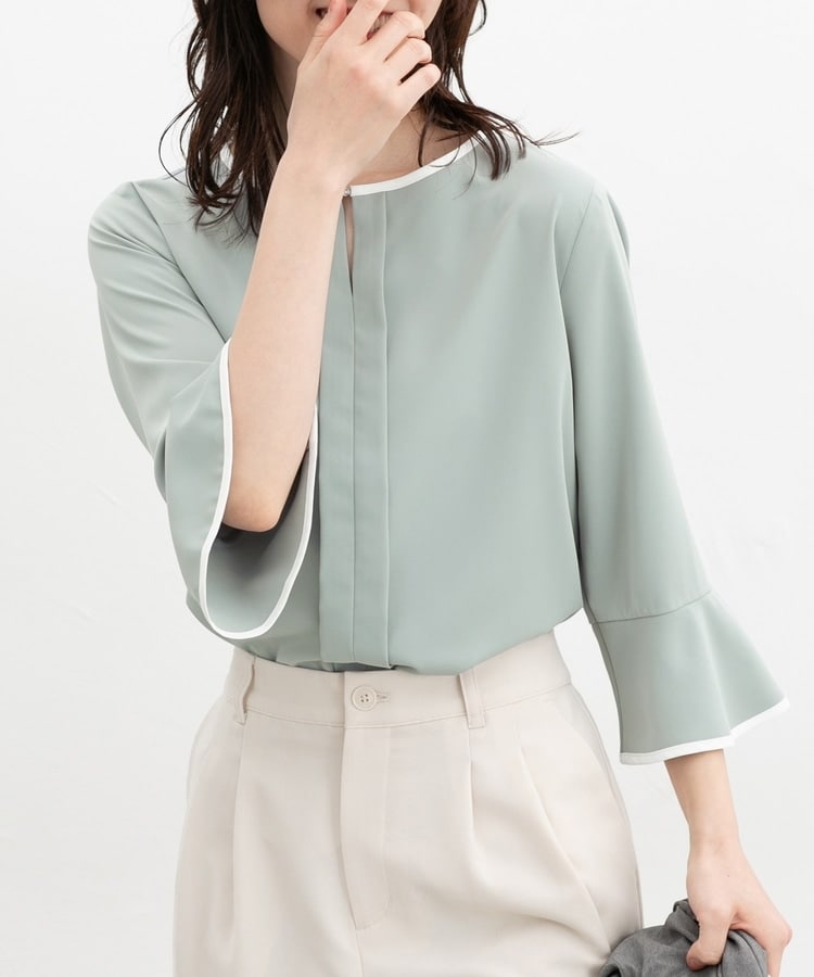 7分袖配色ブラウス