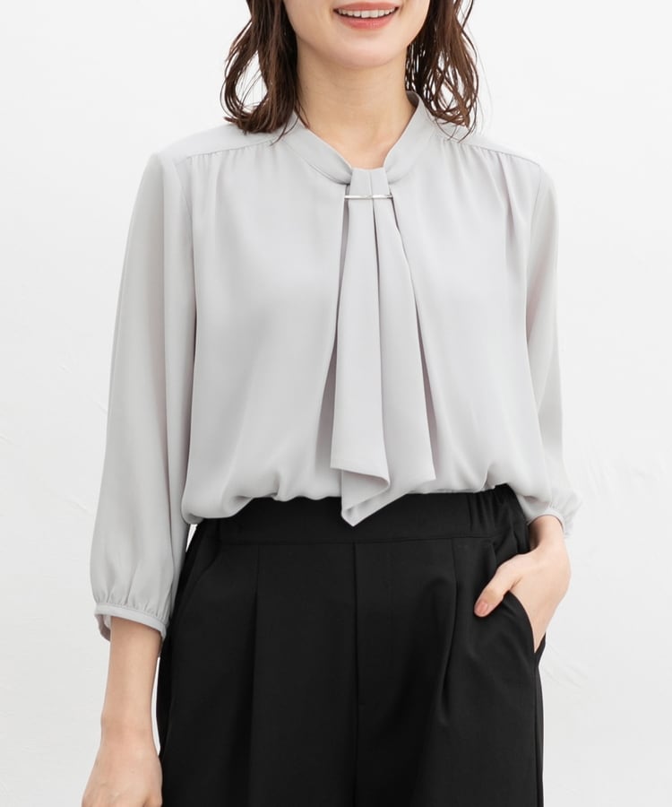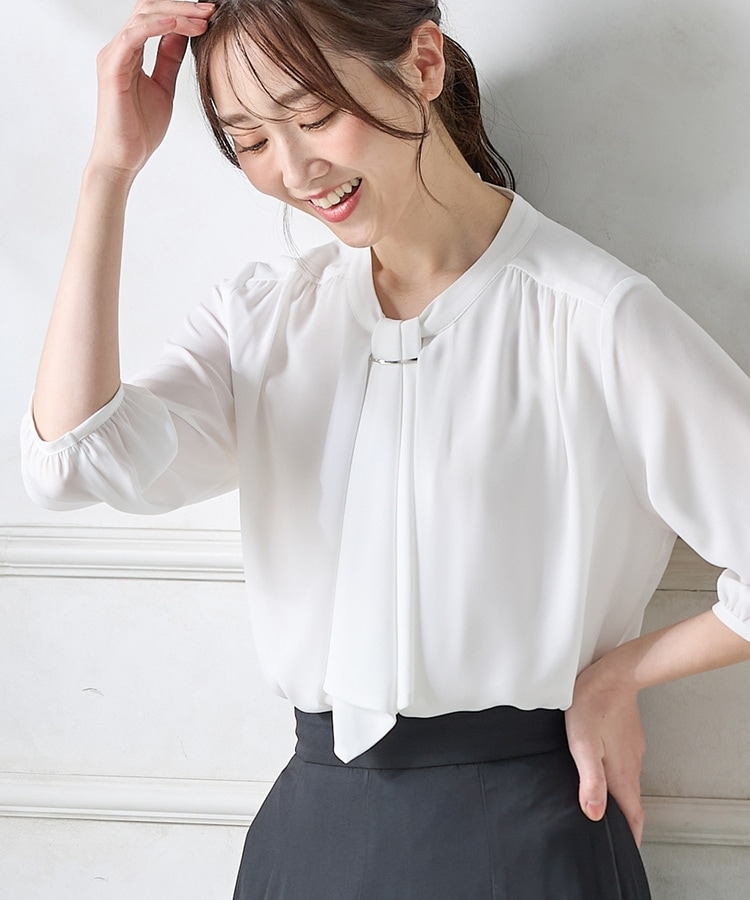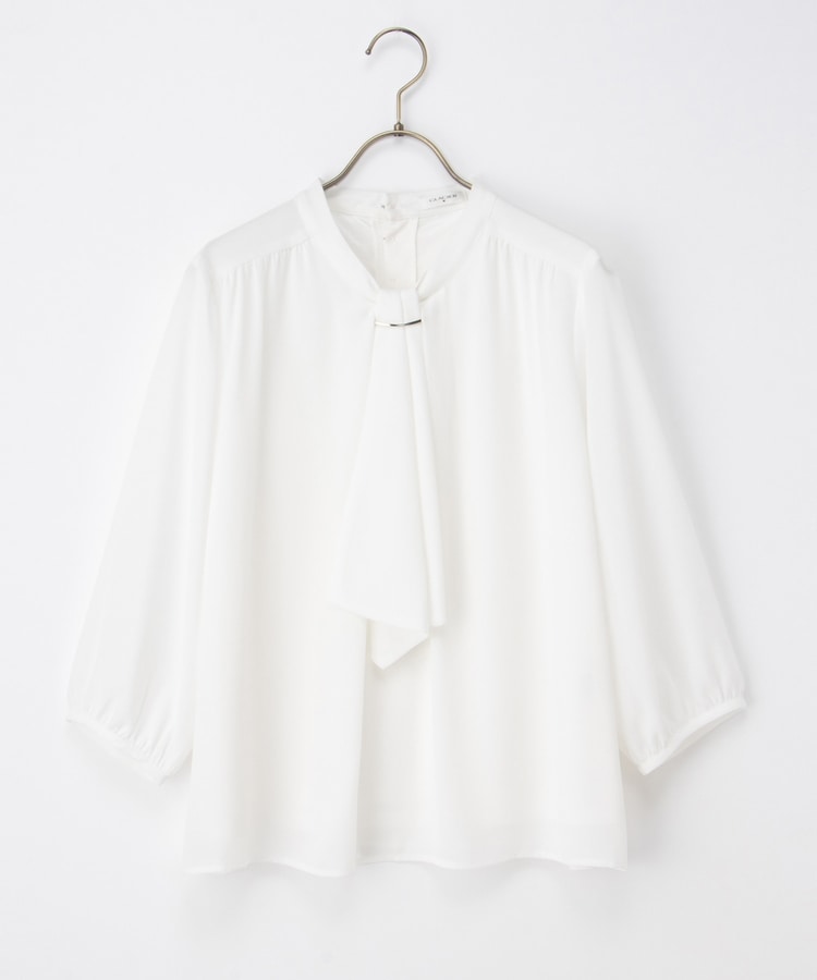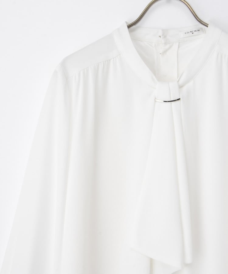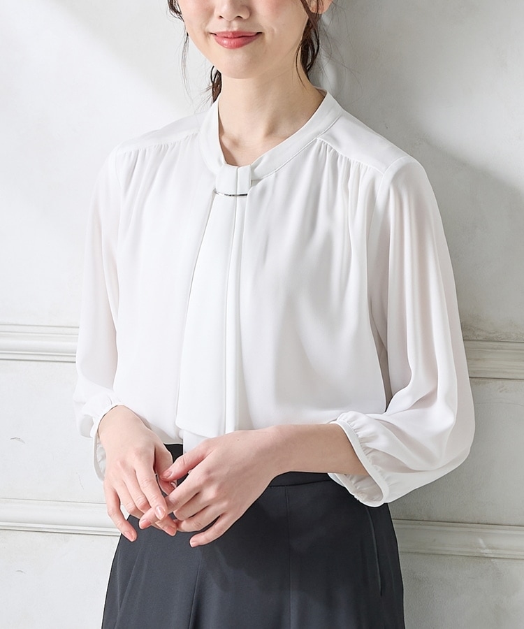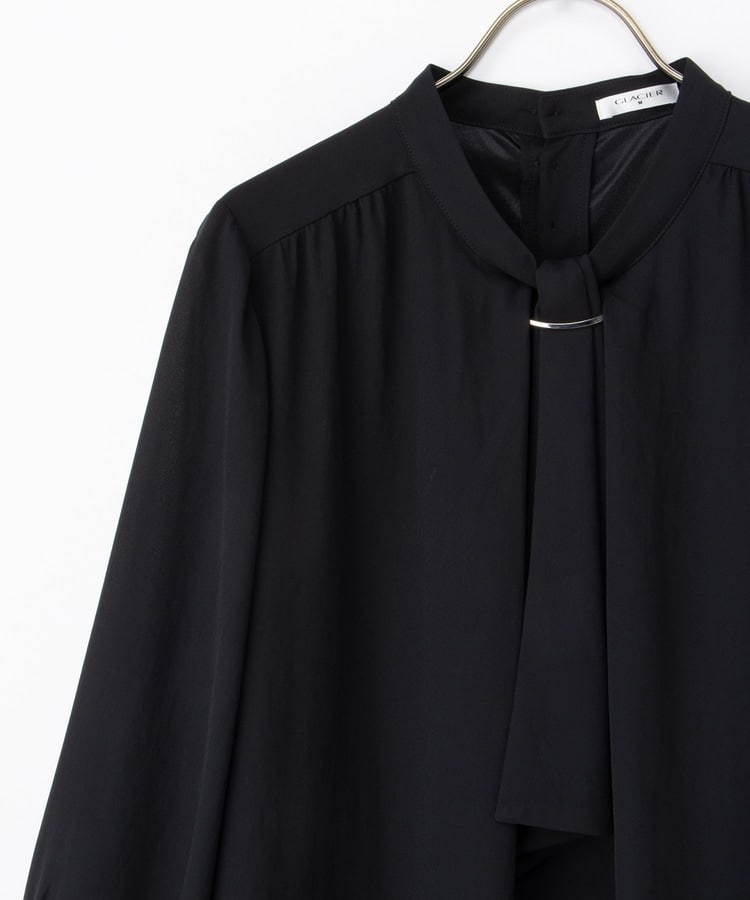 ボウタイを内側に隠してスタンドカラーにもできる2way仕様。