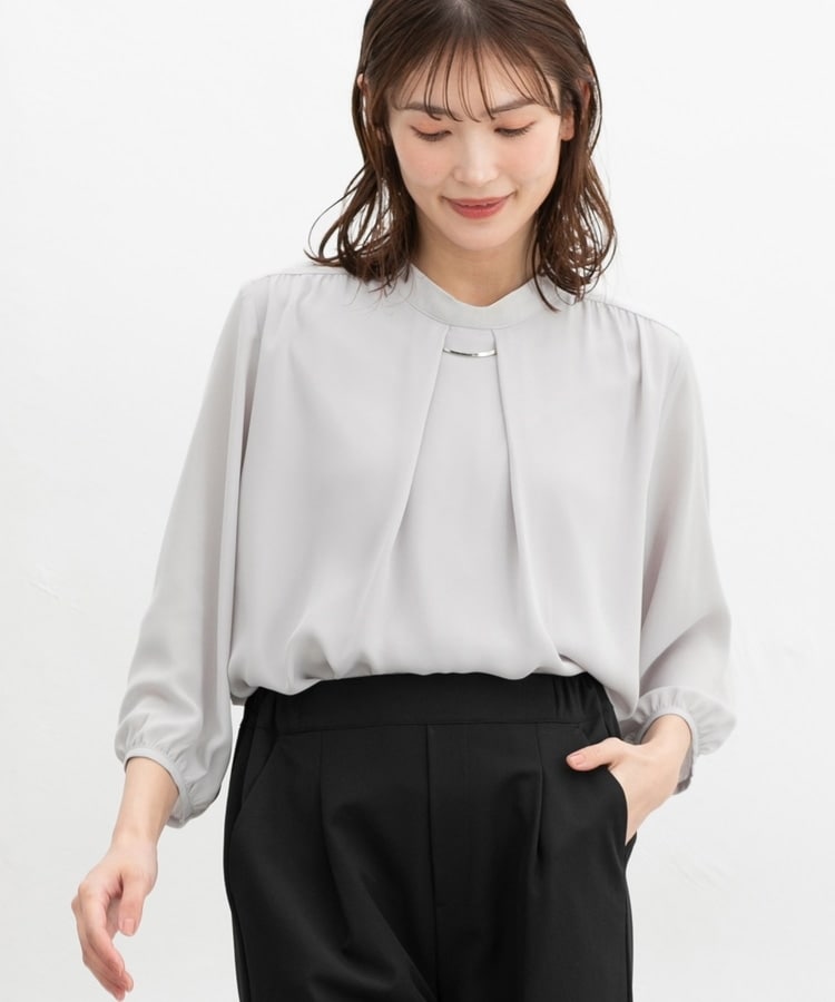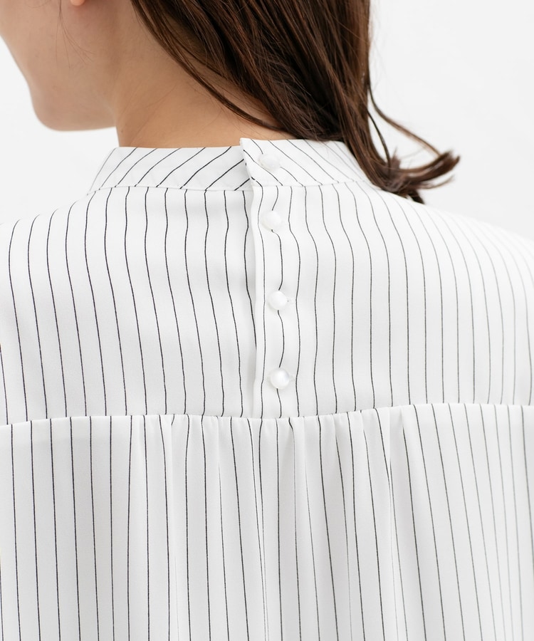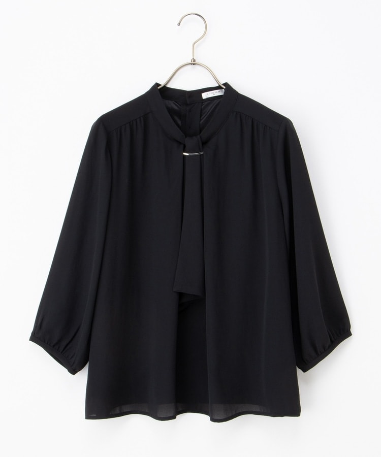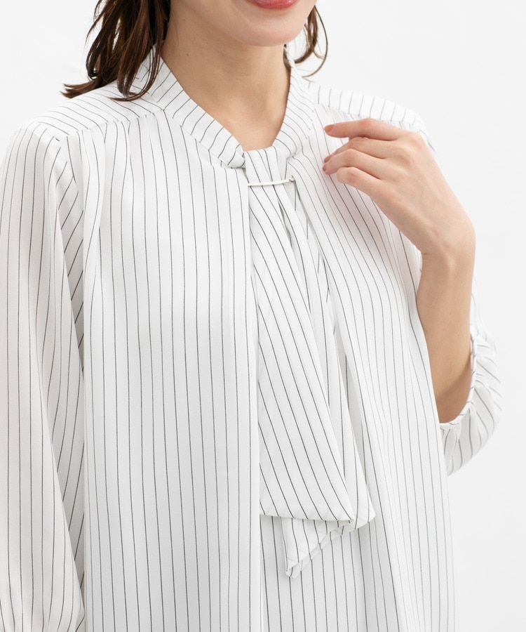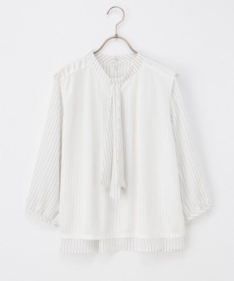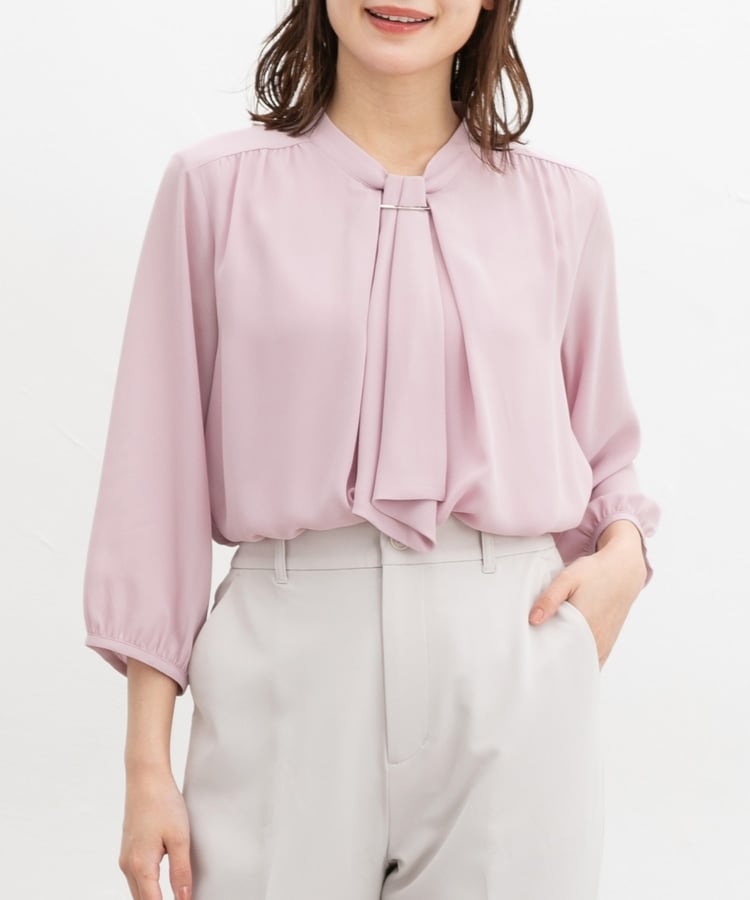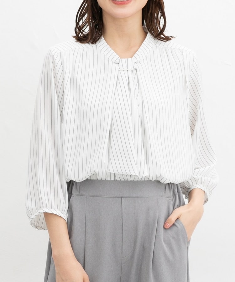 ボウタイを内側に隠してスタンドカラーにもできる2way仕様。