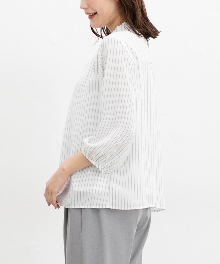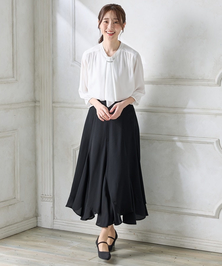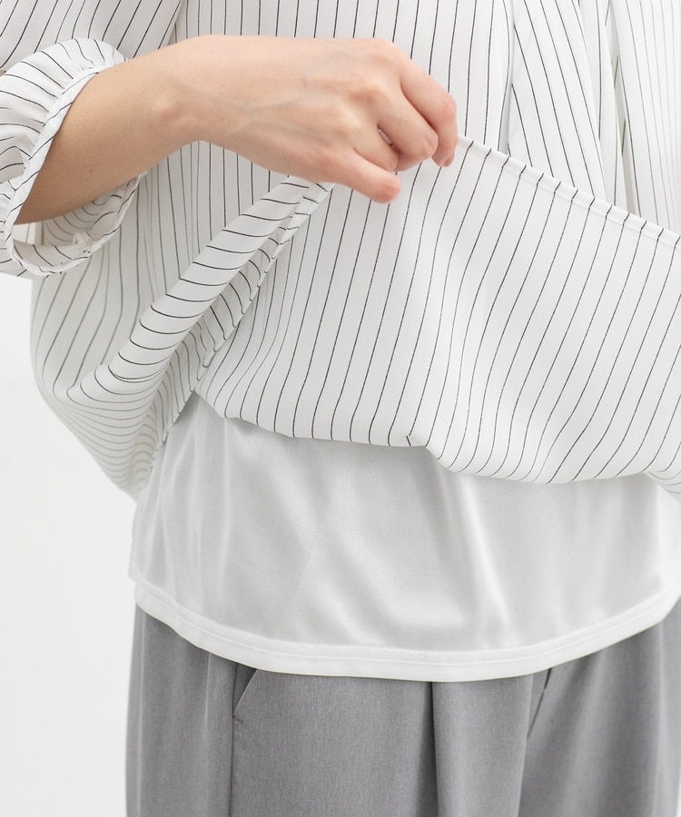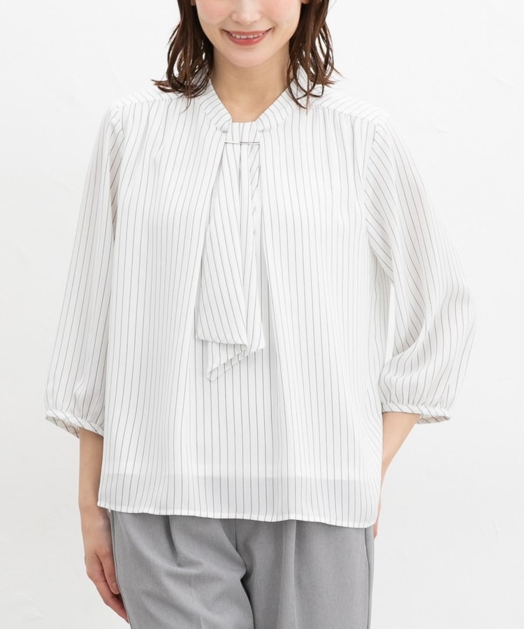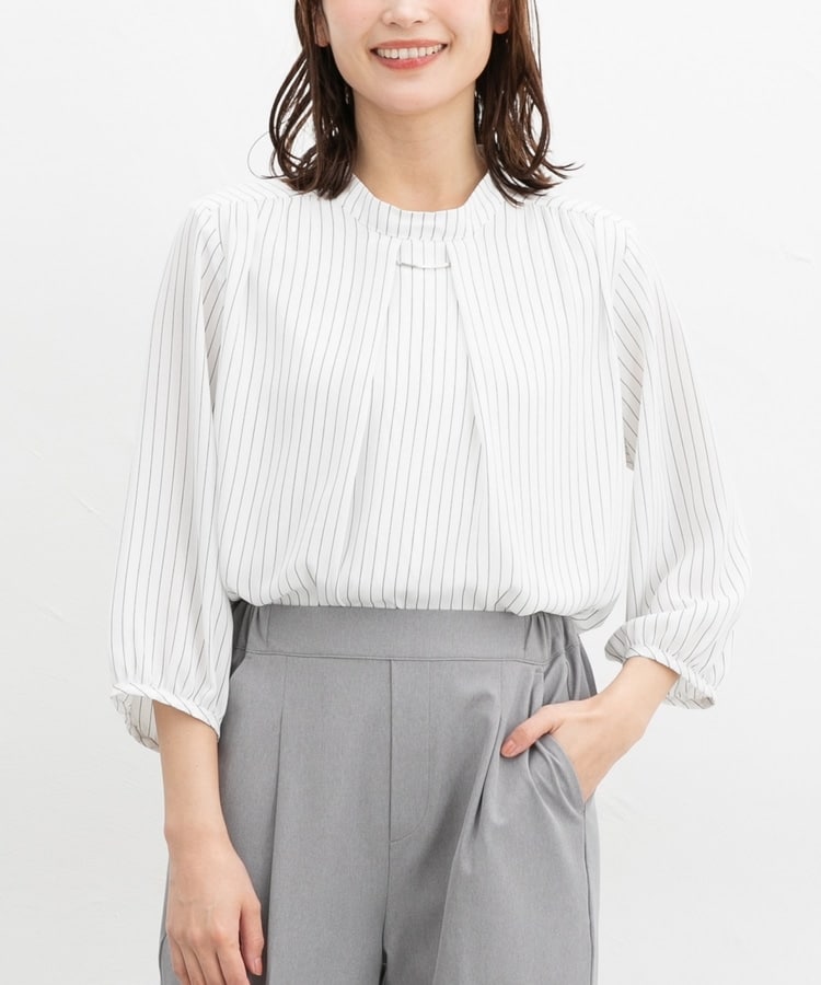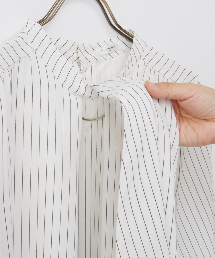 ボウタイを内側に隠してスタンドカラーにもできる2way仕様。